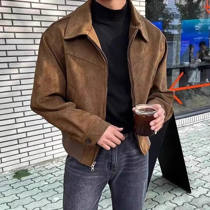Chaqueta Corta Vintage de Calle para Hombre 2025 Primavera y Otoño Nueva Holgada Versátil Solapa Motociclista Chaqueta Casual de Aviador