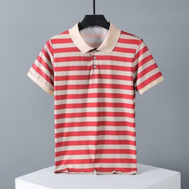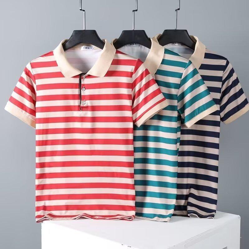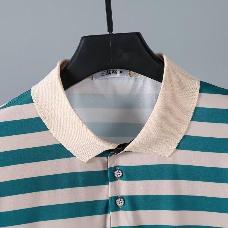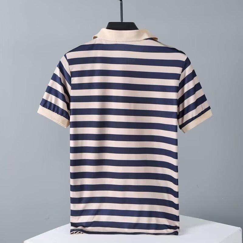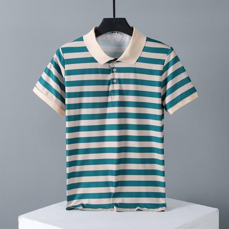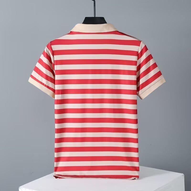 2025 Nueva Camiseta de Manga Corta a Rayas para Hombre Verano Delgada Camisa Polo Ajustada Casual Suelta de Media Manga para Hombre