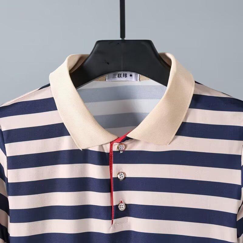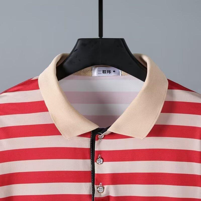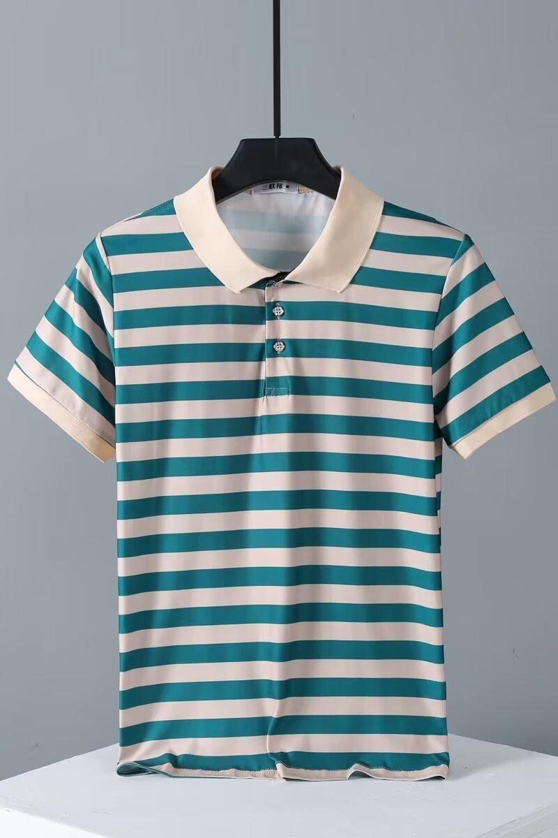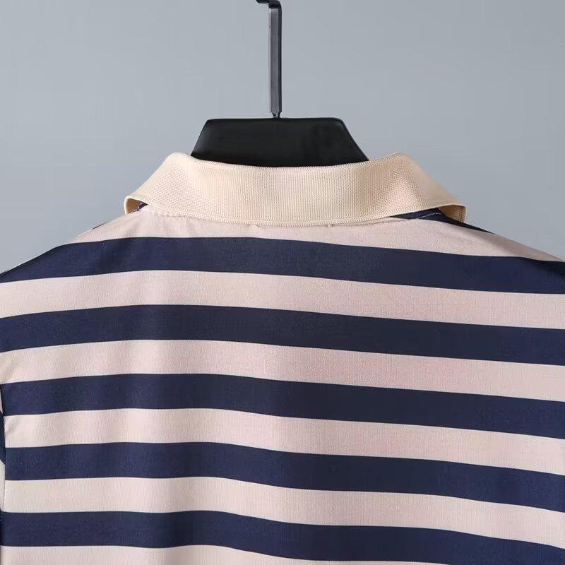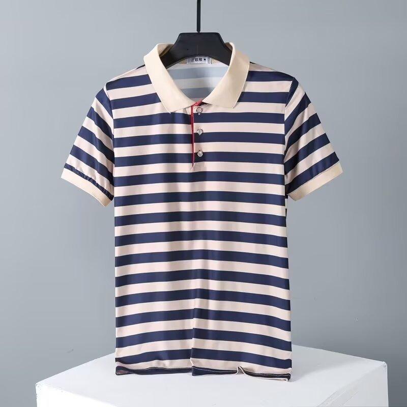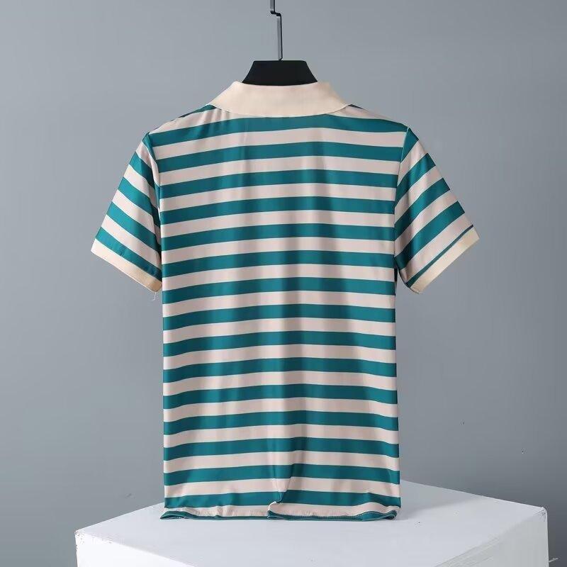 2025 Nueva Camiseta de Manga Corta a Rayas para Hombre Verano Delgada Camisa Polo Ajustada Casual Suelta de Media Manga para Hombre