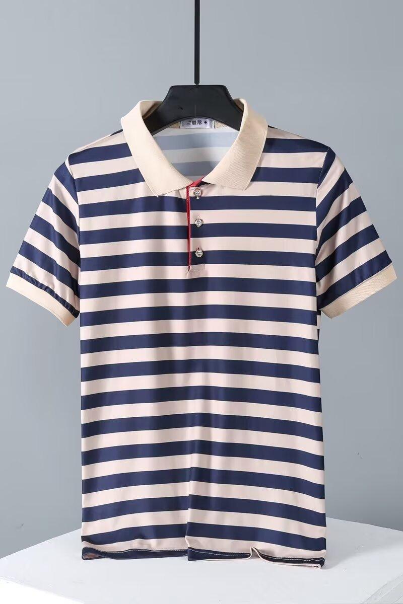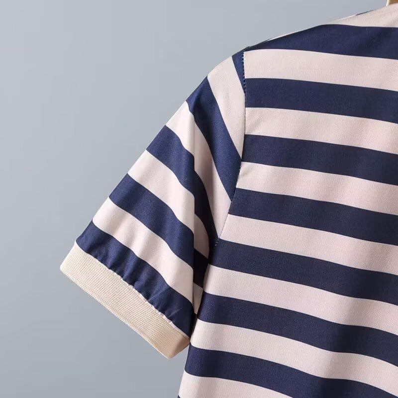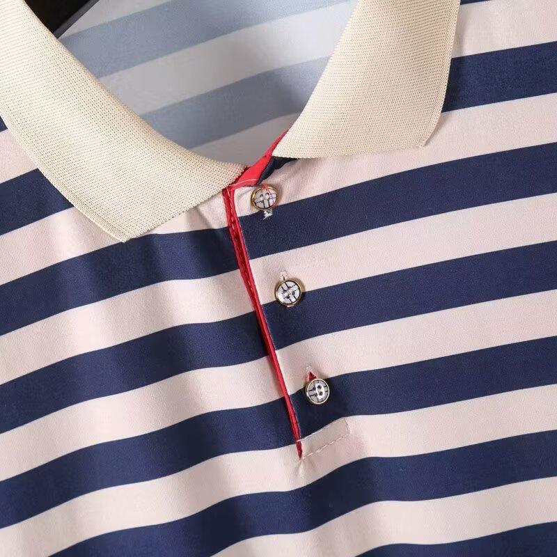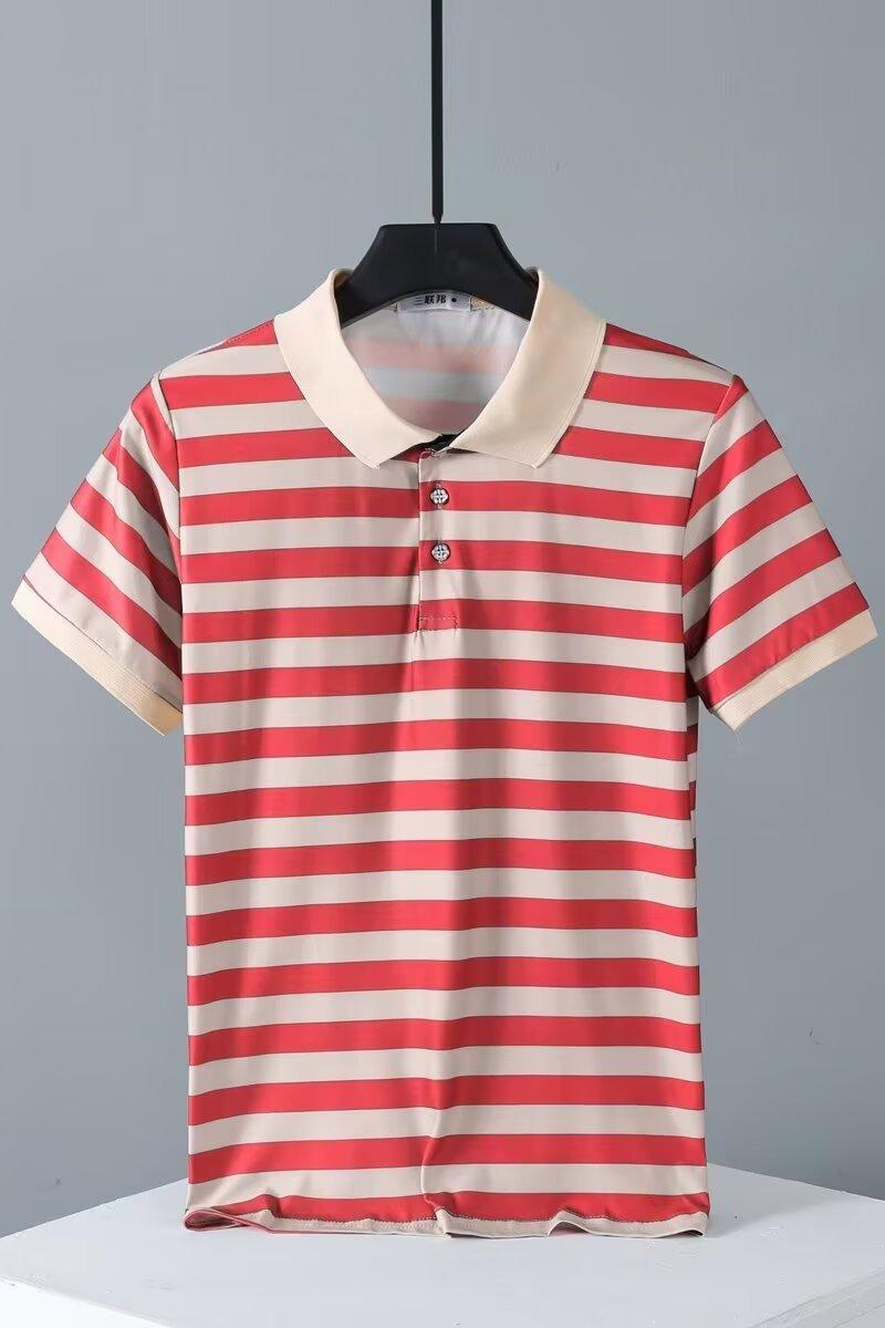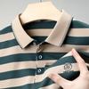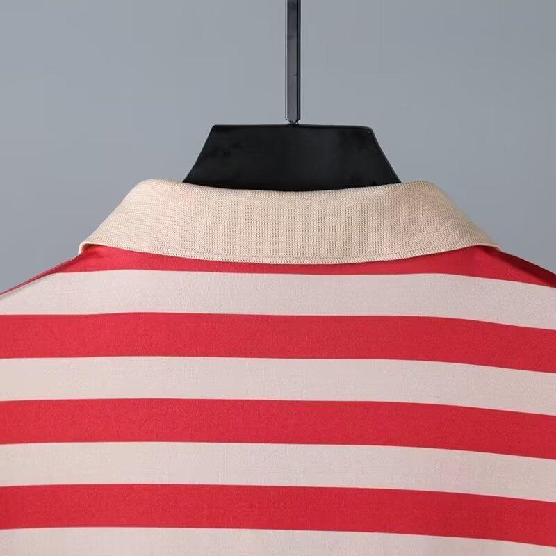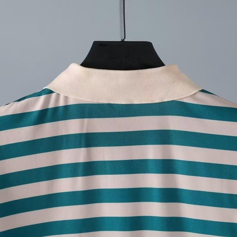 2025 Nueva Camiseta de Manga Corta a Rayas para Hombre Verano Delgada Camisa Polo Ajustada Casual Suelta de Media Manga para Hombre