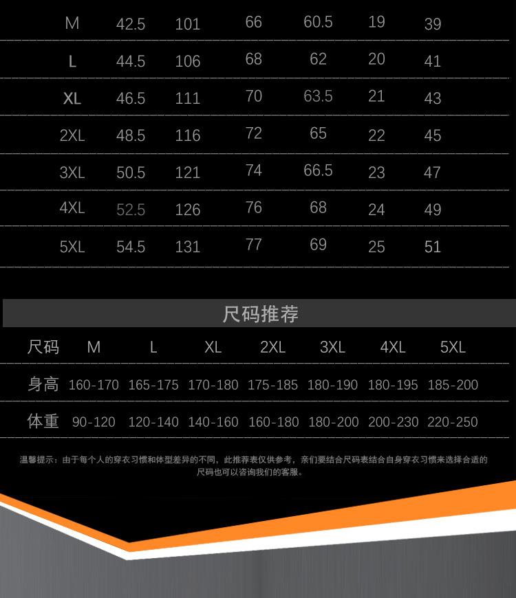 M- 45-60kg, L- 60-70kg, Xl- 70-80kg, 2xl- 80-90kg, 3xl- 90-100kg, 4xl- 100-115kg, 5xl- 115-125kg