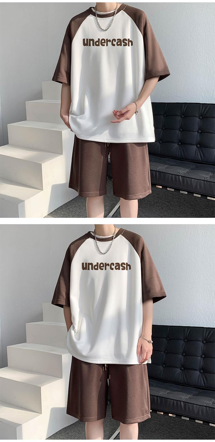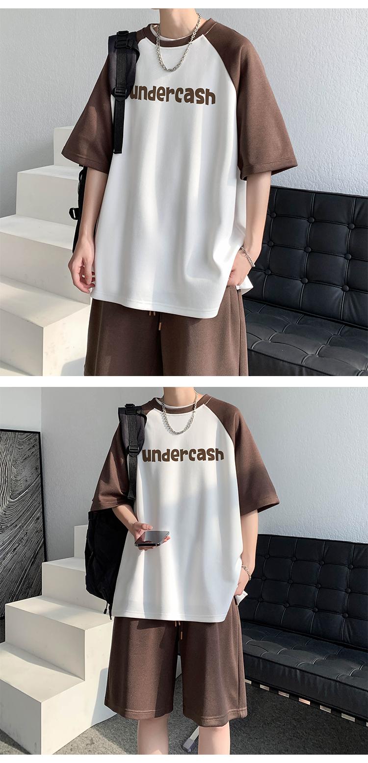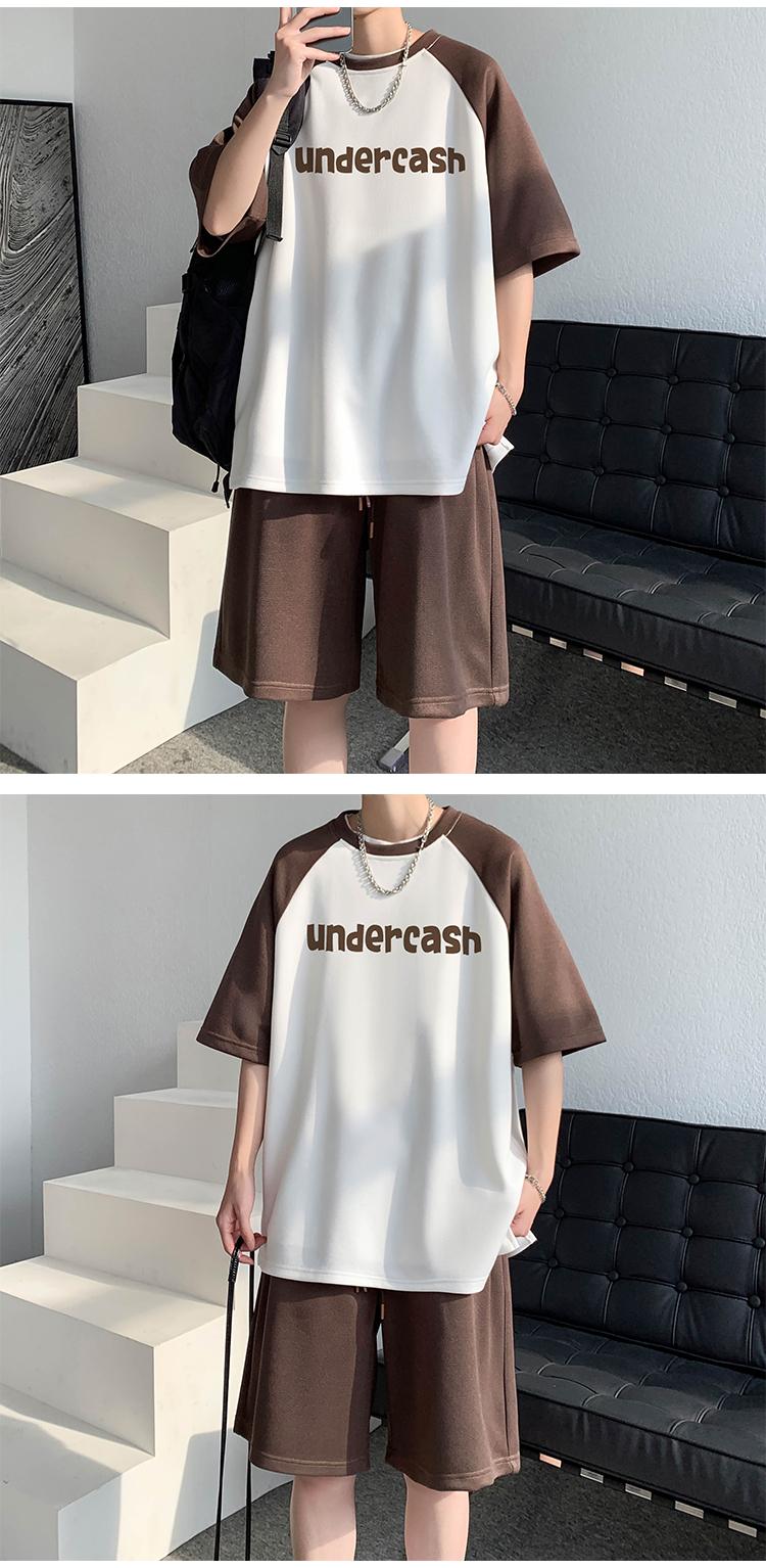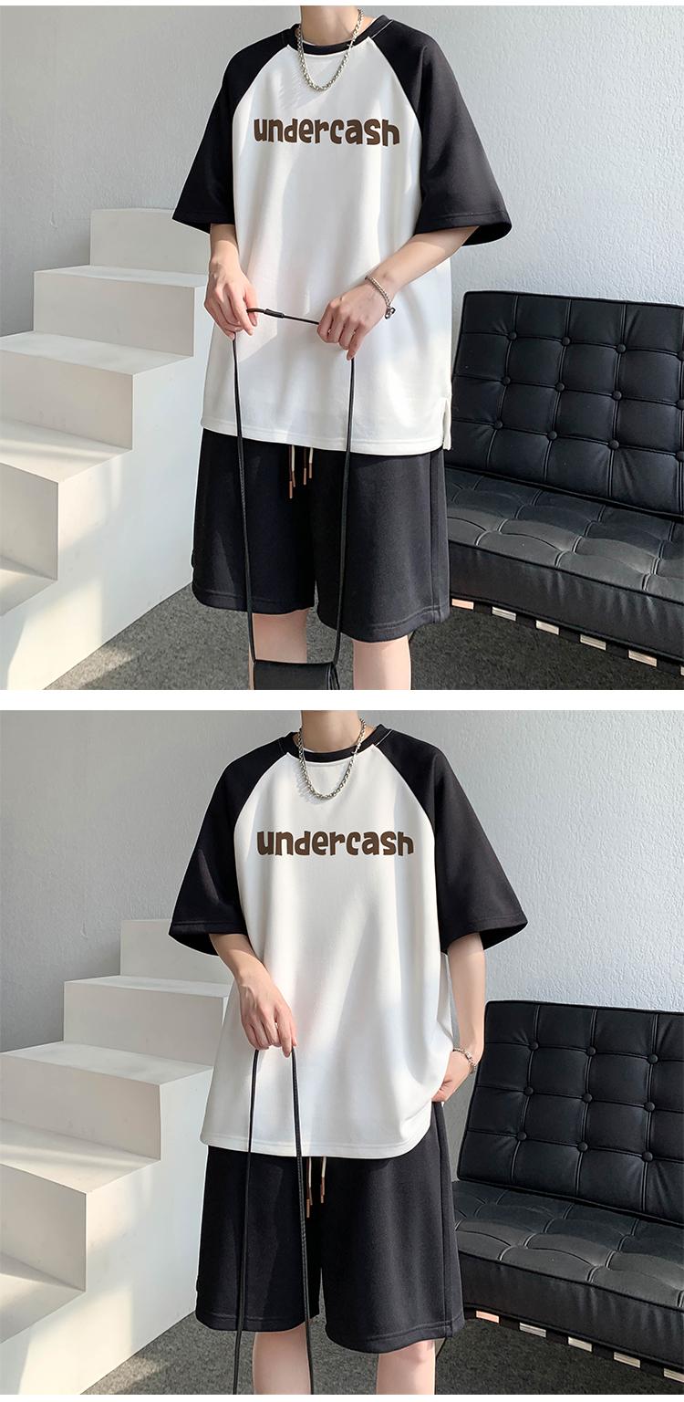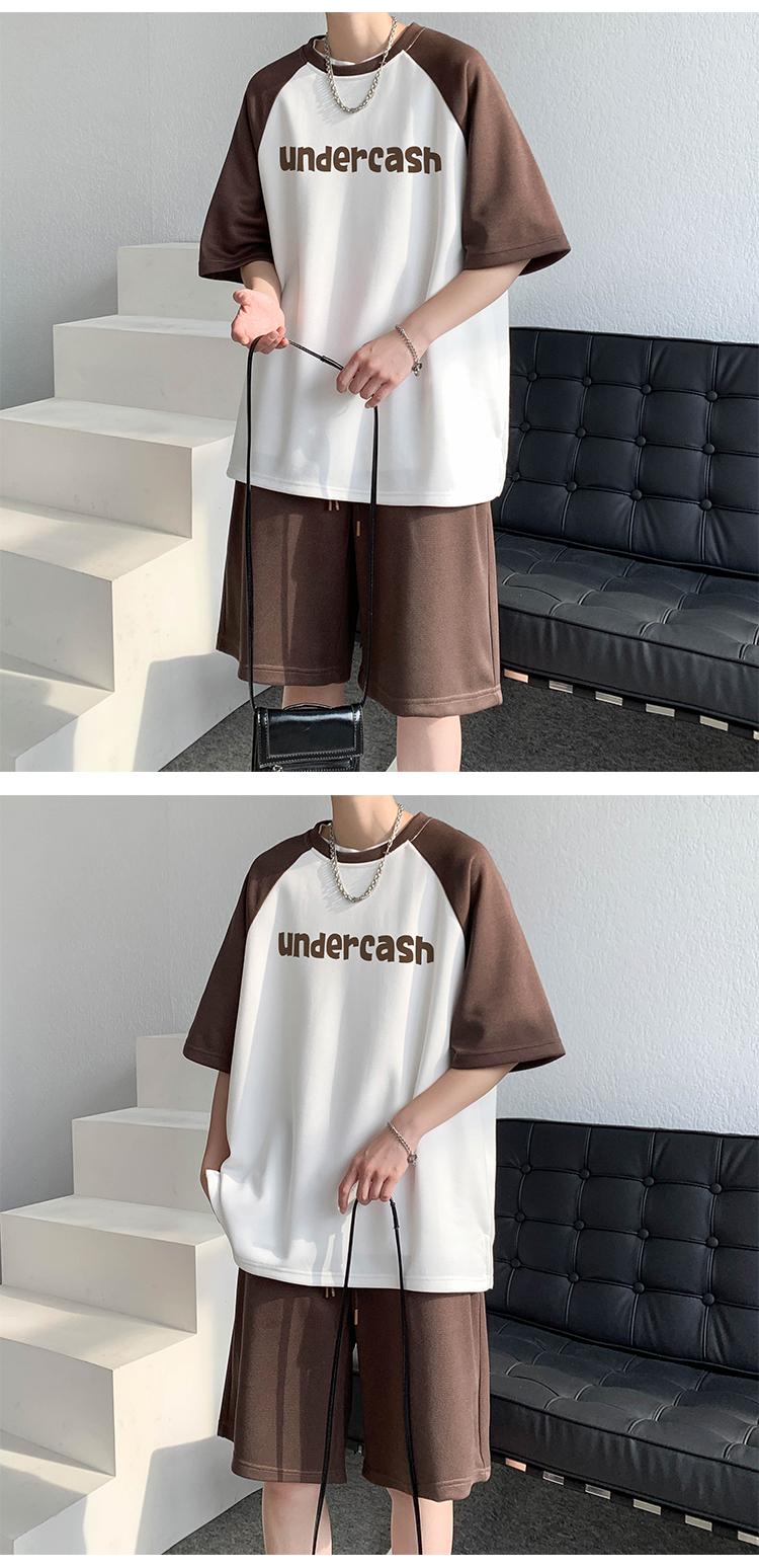 Traje de pantalones cortos de manga corta para hombre, verano, juventud, ropa para hombre con un conjunto de camiseta deportiva casual holgada de moda guapa