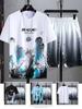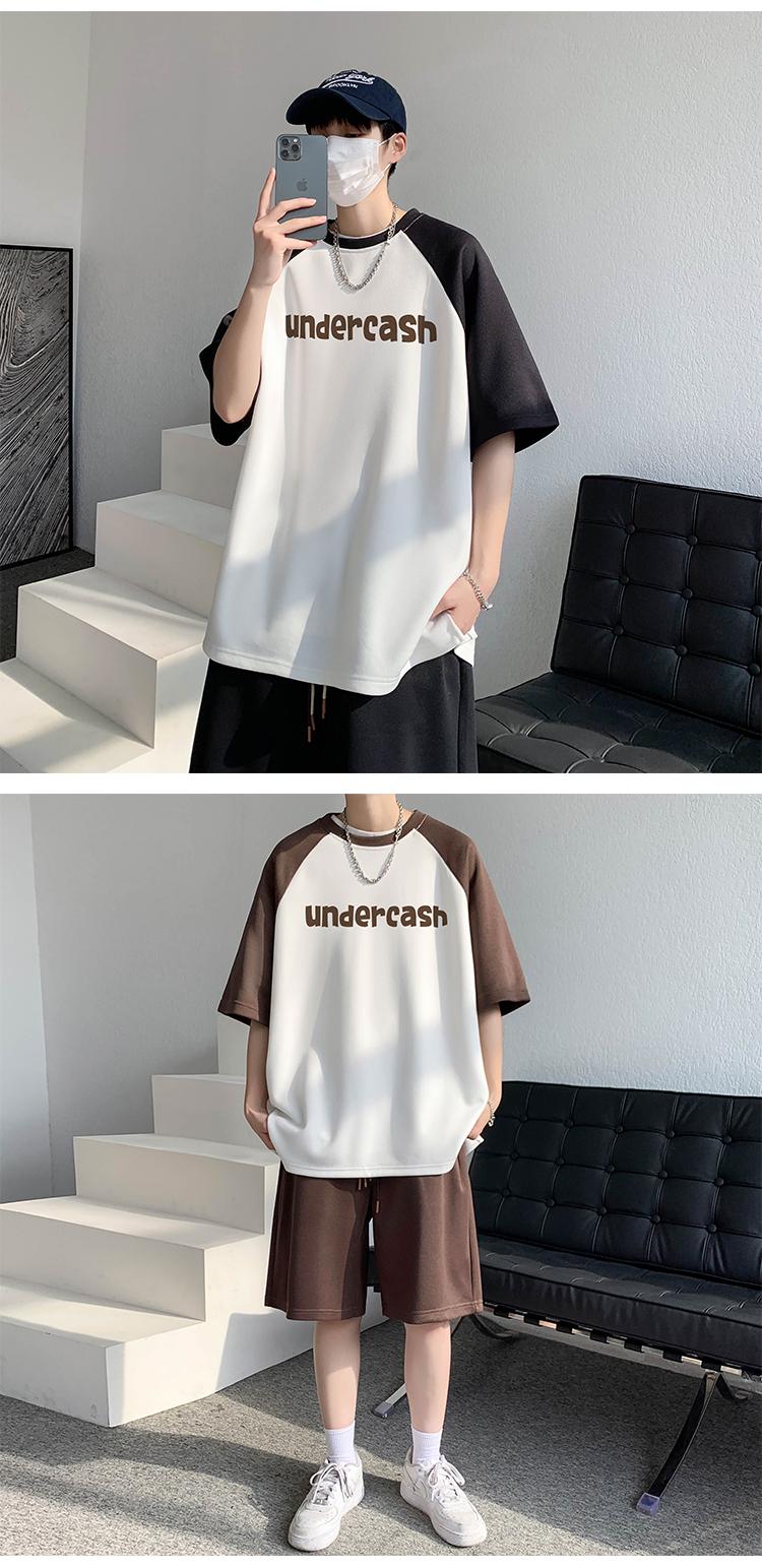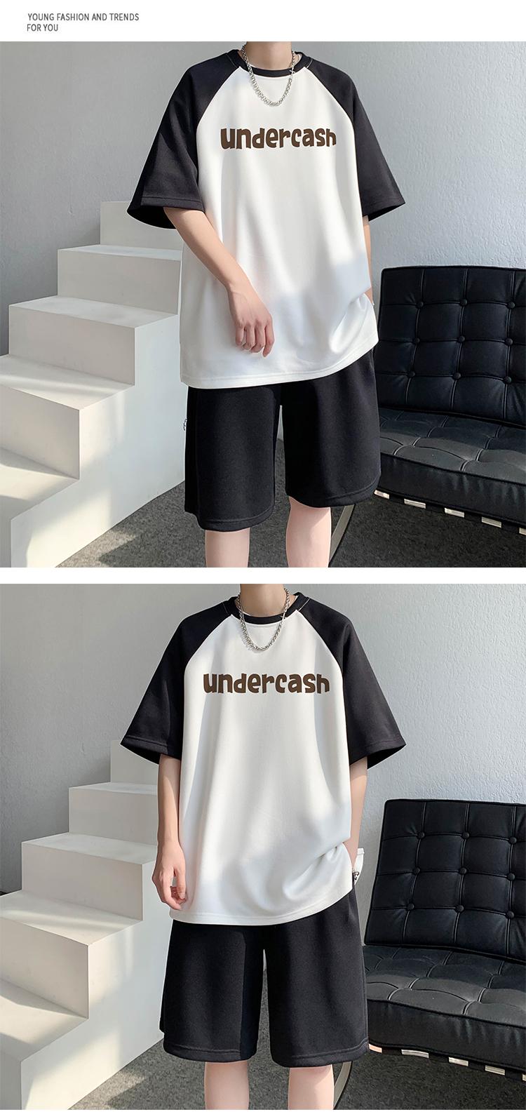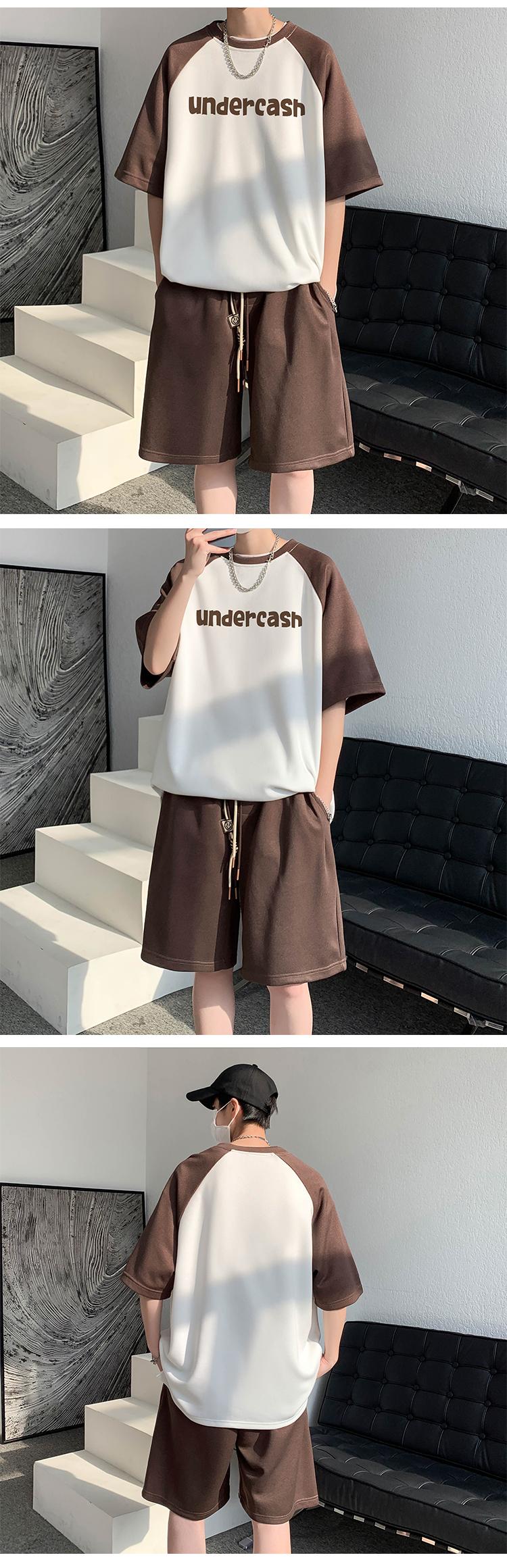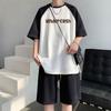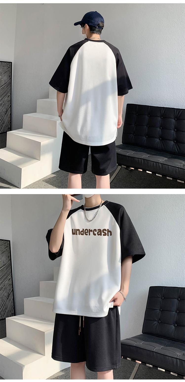 Traje de pantalones cortos de manga corta para hombre, verano, juventud, ropa para hombre con un conjunto de camiseta deportiva casual holgada de moda guapa