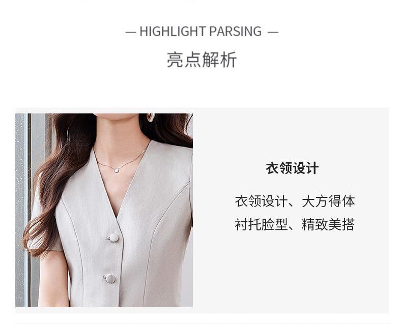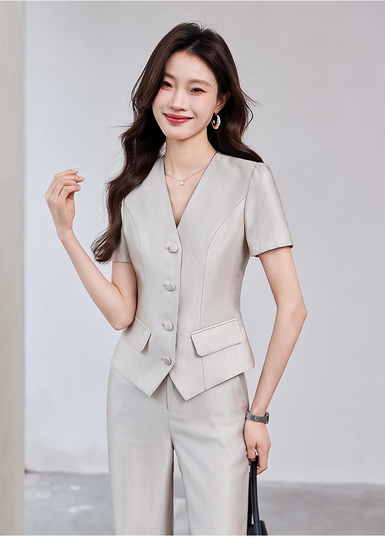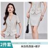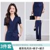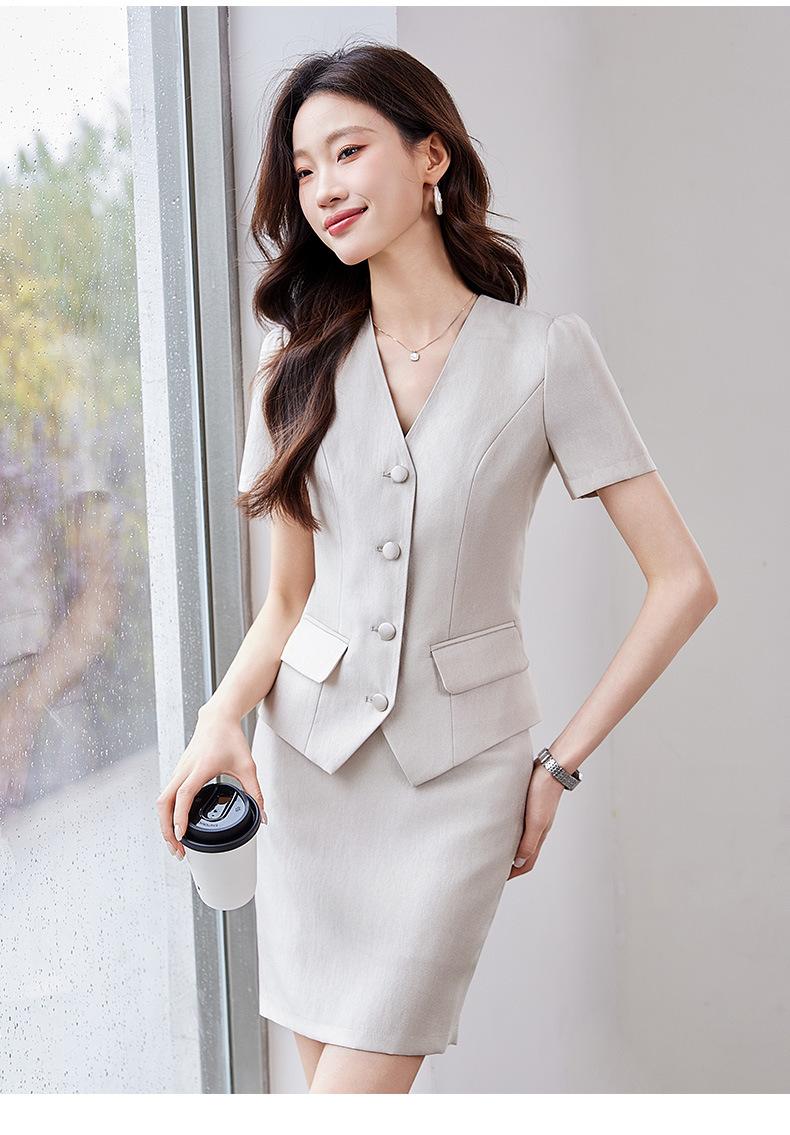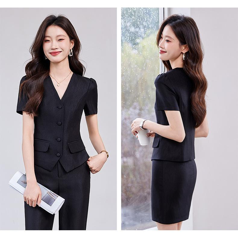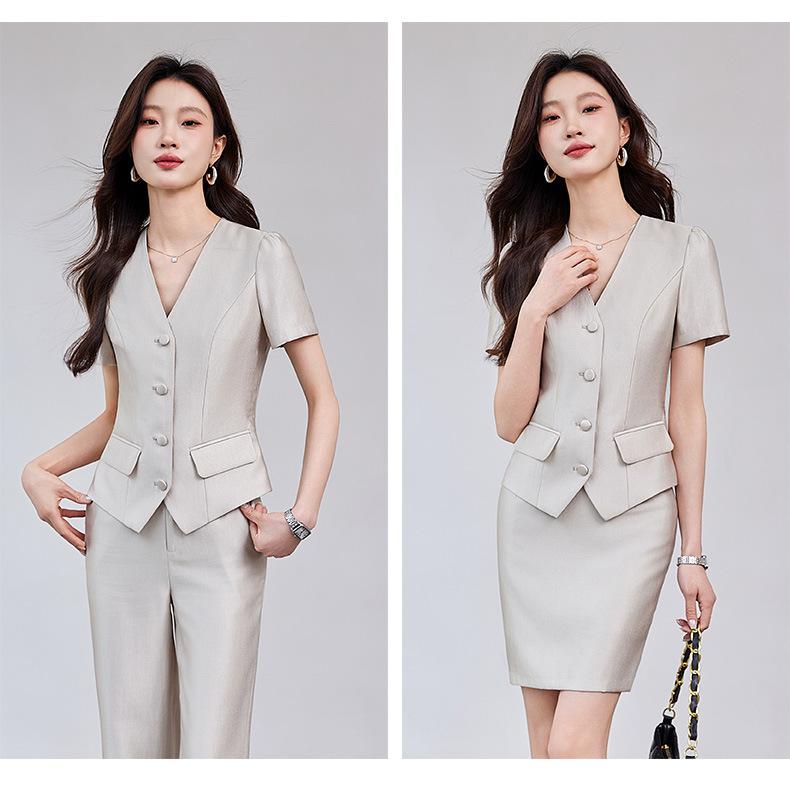 Traje de verano de manga corta blanco crema con cuello en V, chaqueta, pantalón y falda para mujer, traje de tres piezas, profesional, informal, para uso diario.