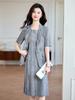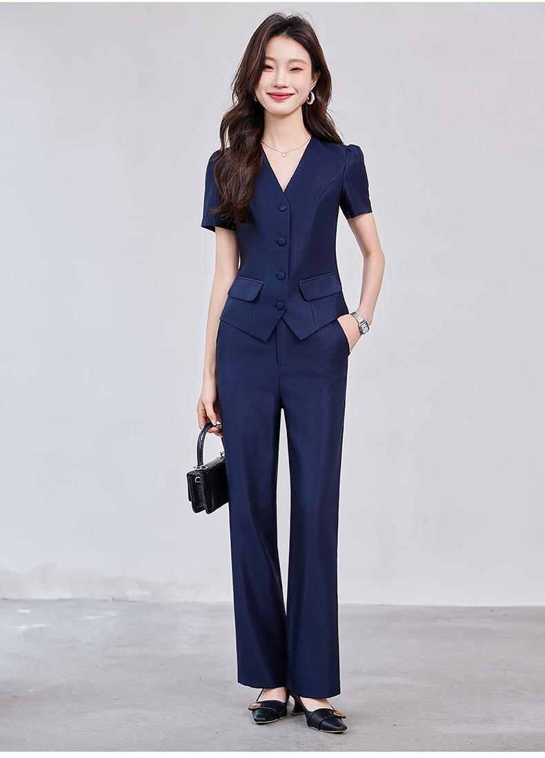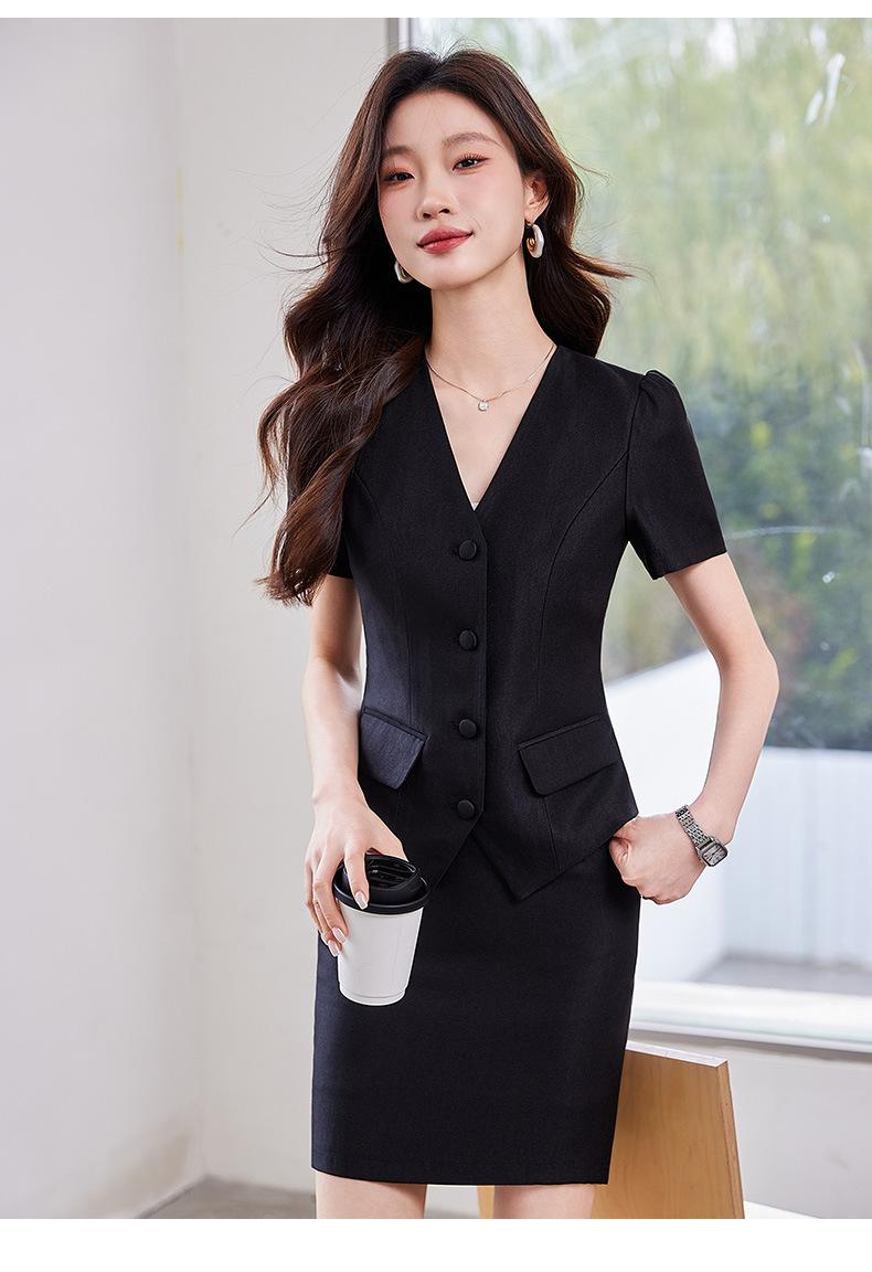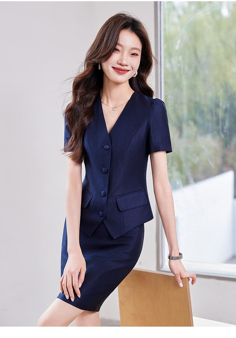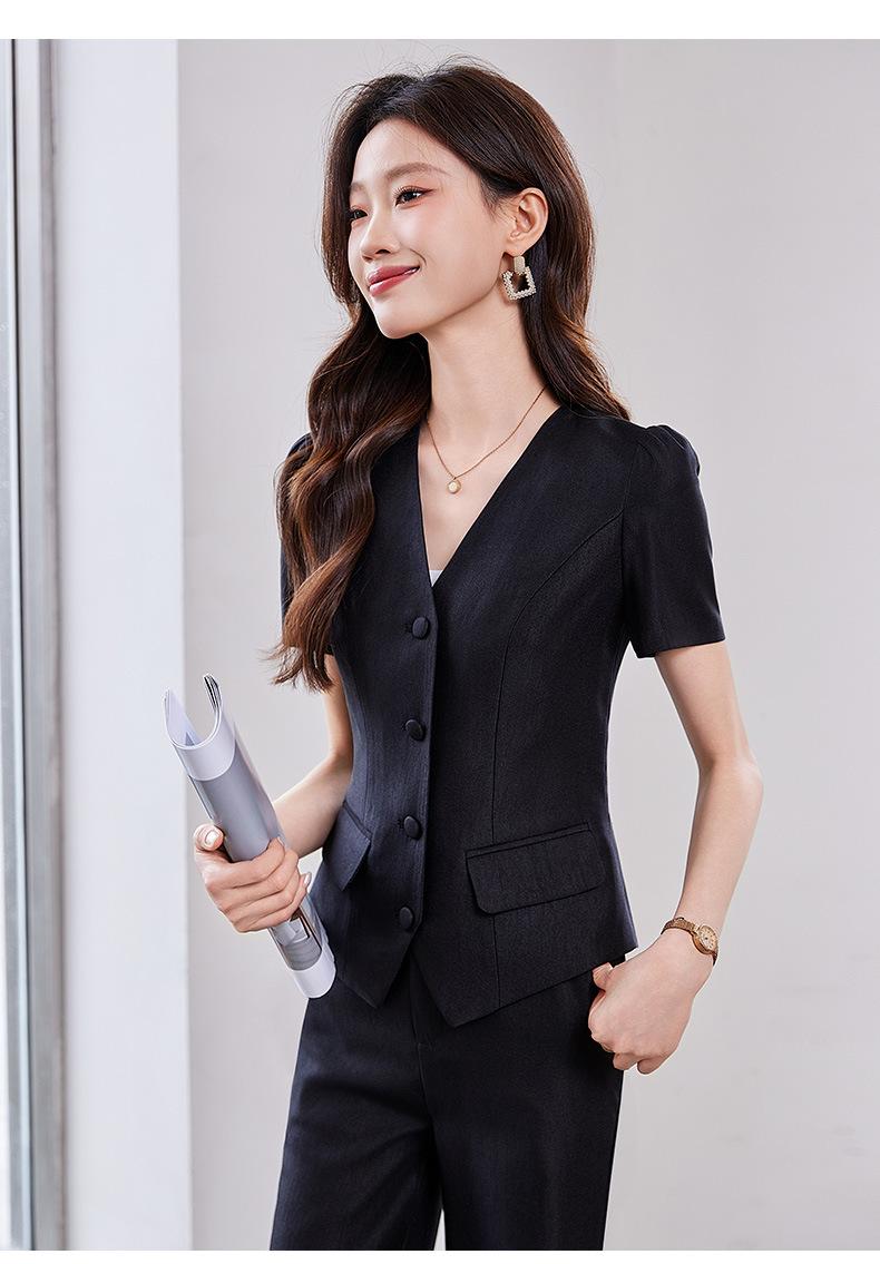 Traje de verano de manga corta blanco crema con cuello en V, chaqueta, pantalón y falda para mujer, traje de tres piezas, profesional, informal, para uso diario.