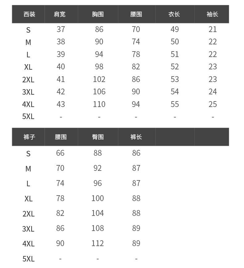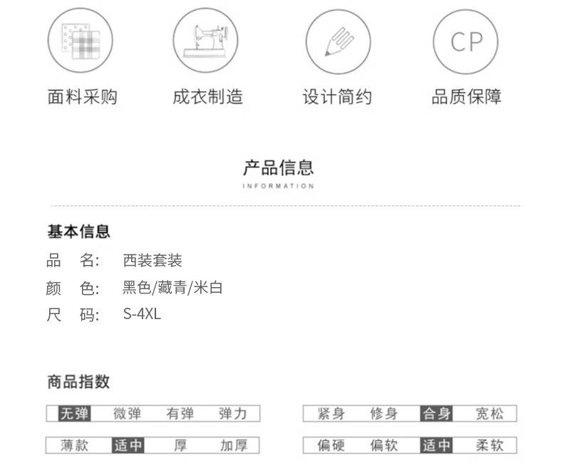 Black one piece suit, Navy blue one piece suit, Off-white single suit, Black suit + skirt, Navy blue suit + sk...