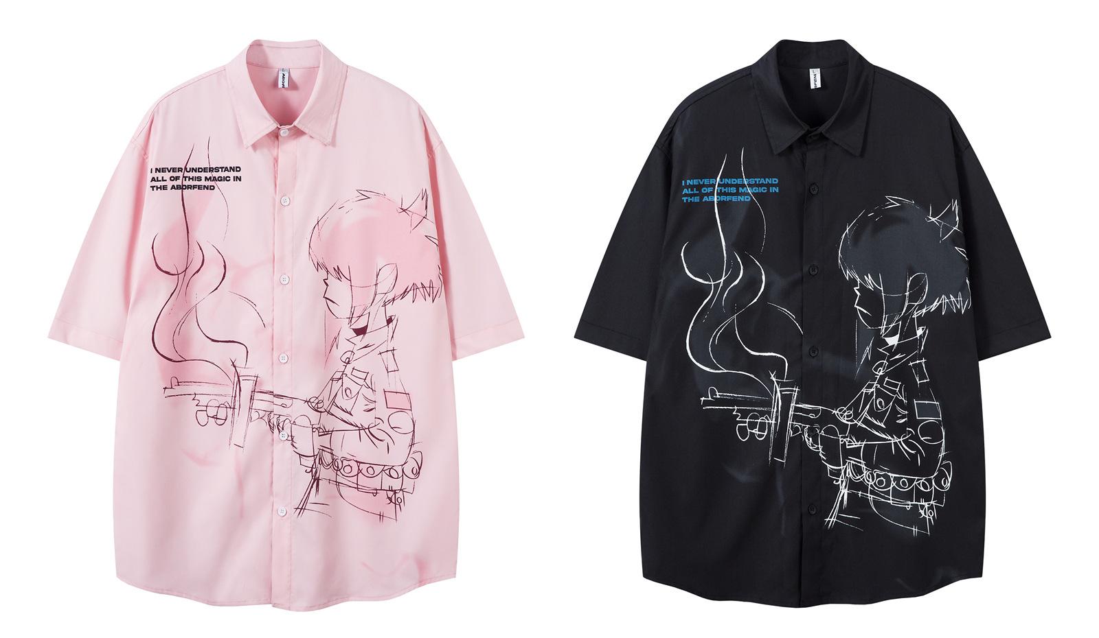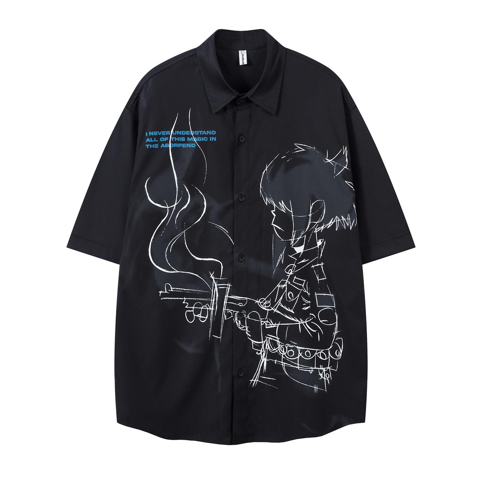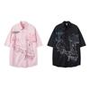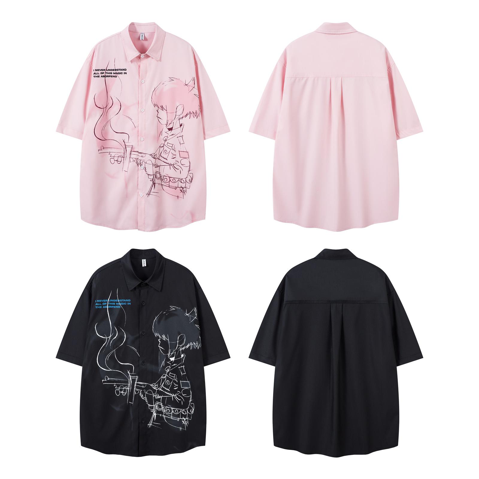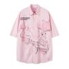 Camisa de manga corta con solapa y estampado de dibujos animados retro estilo americano para hombre y mujer, nueva camisa holgada de verano para parejas.