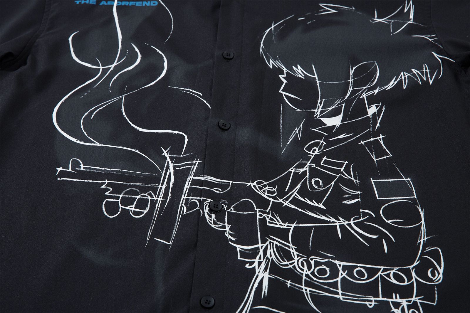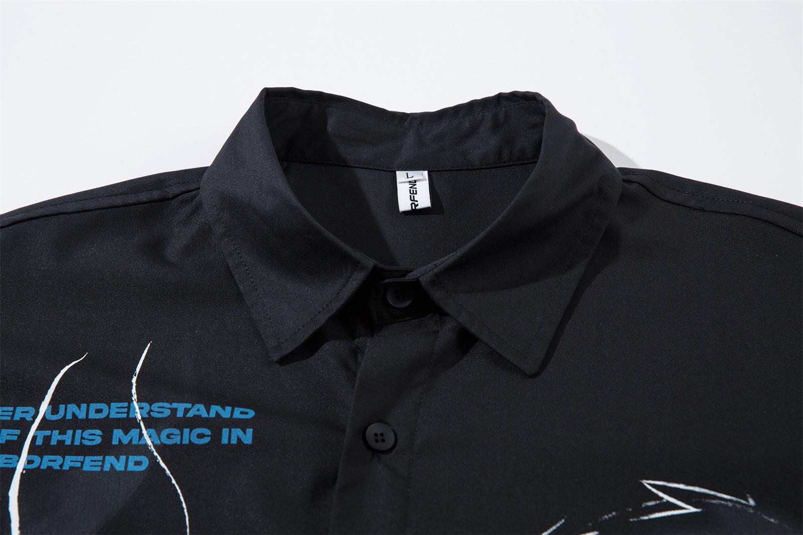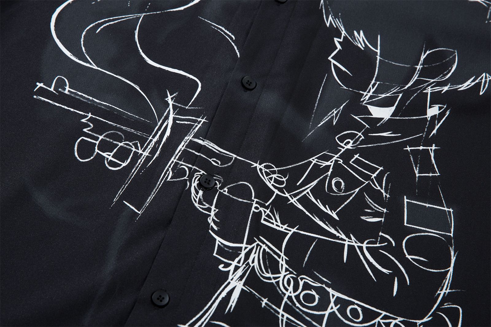 Camisa de manga corta con solapa y estampado de dibujos animados retro estilo americano para hombre y mujer, nueva camisa holgada de verano para parejas.