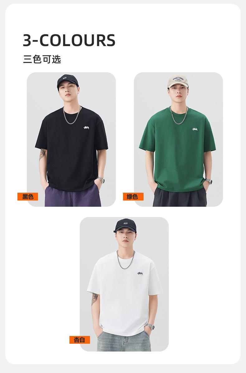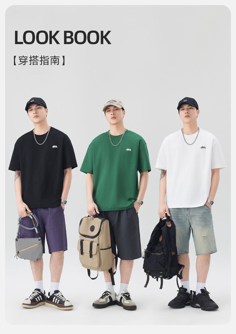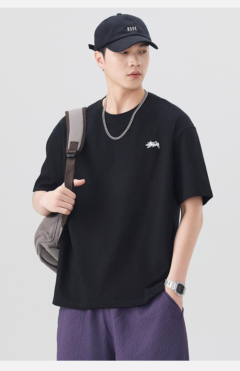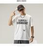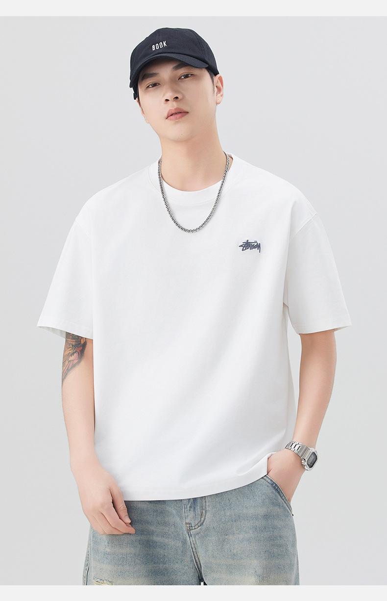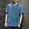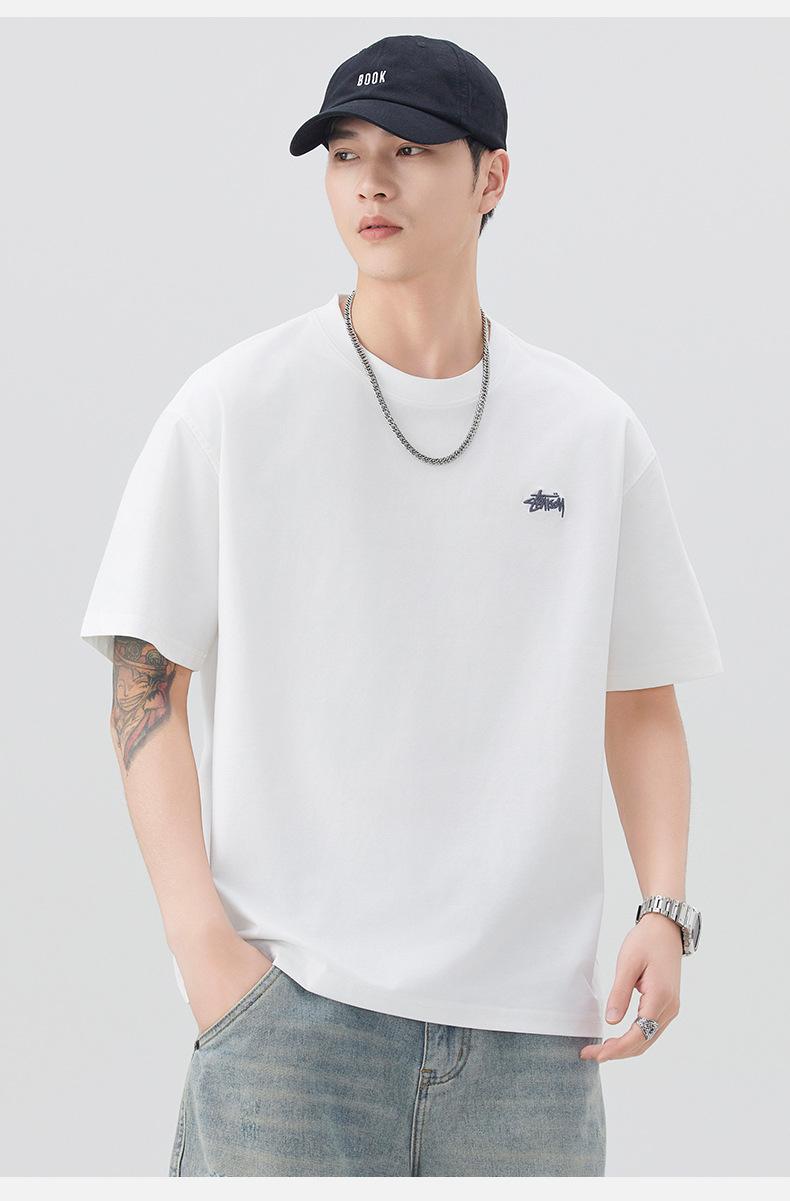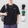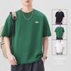 Verano nueva moda japonesa estampado 230g camiseta manga corta hombre holgada talla grande cuello redondo blanco media manga marea