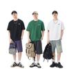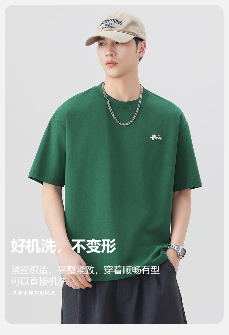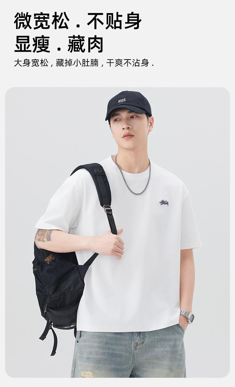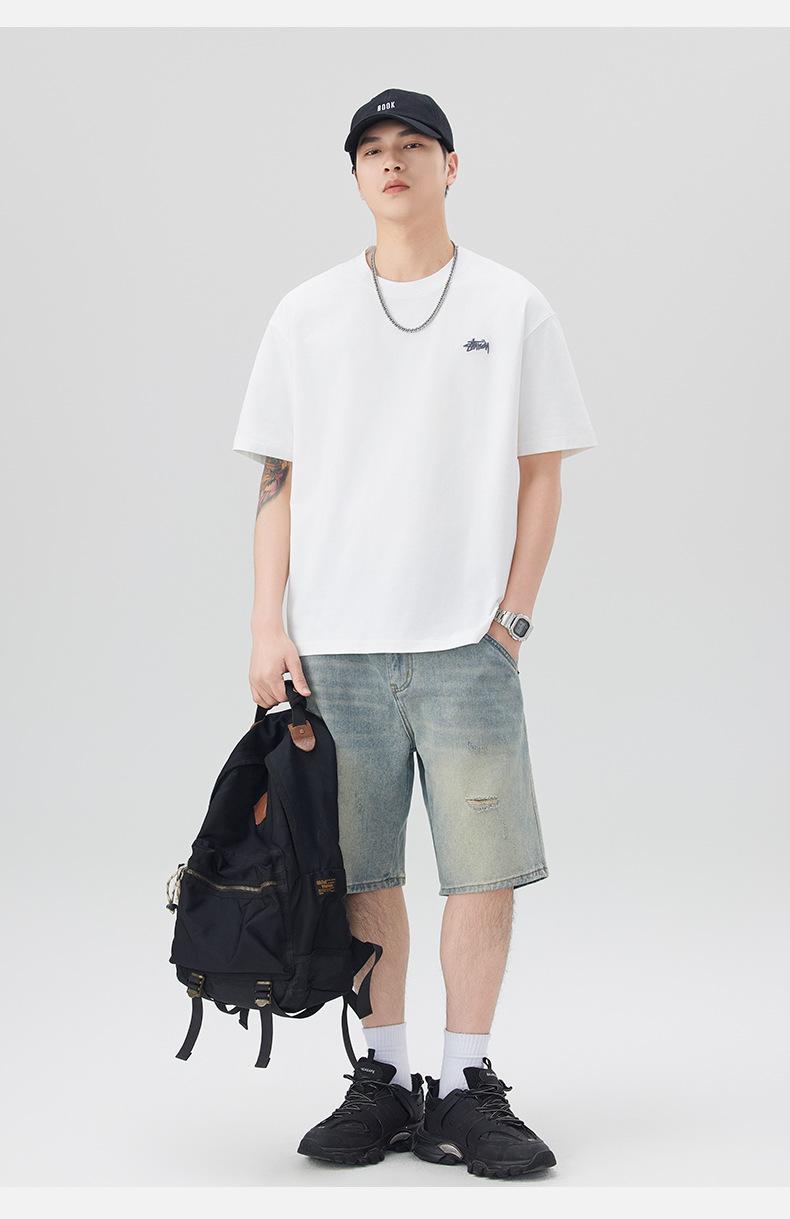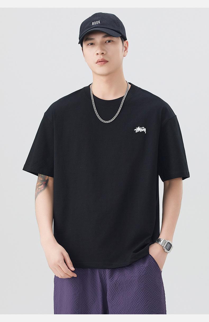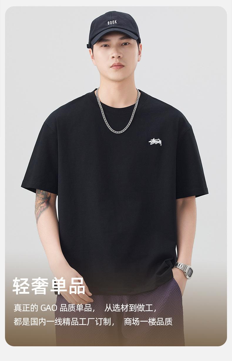 Verano nueva moda japonesa estampado 230g camiseta manga corta hombre holgada talla grande cuello redondo blanco media manga marea