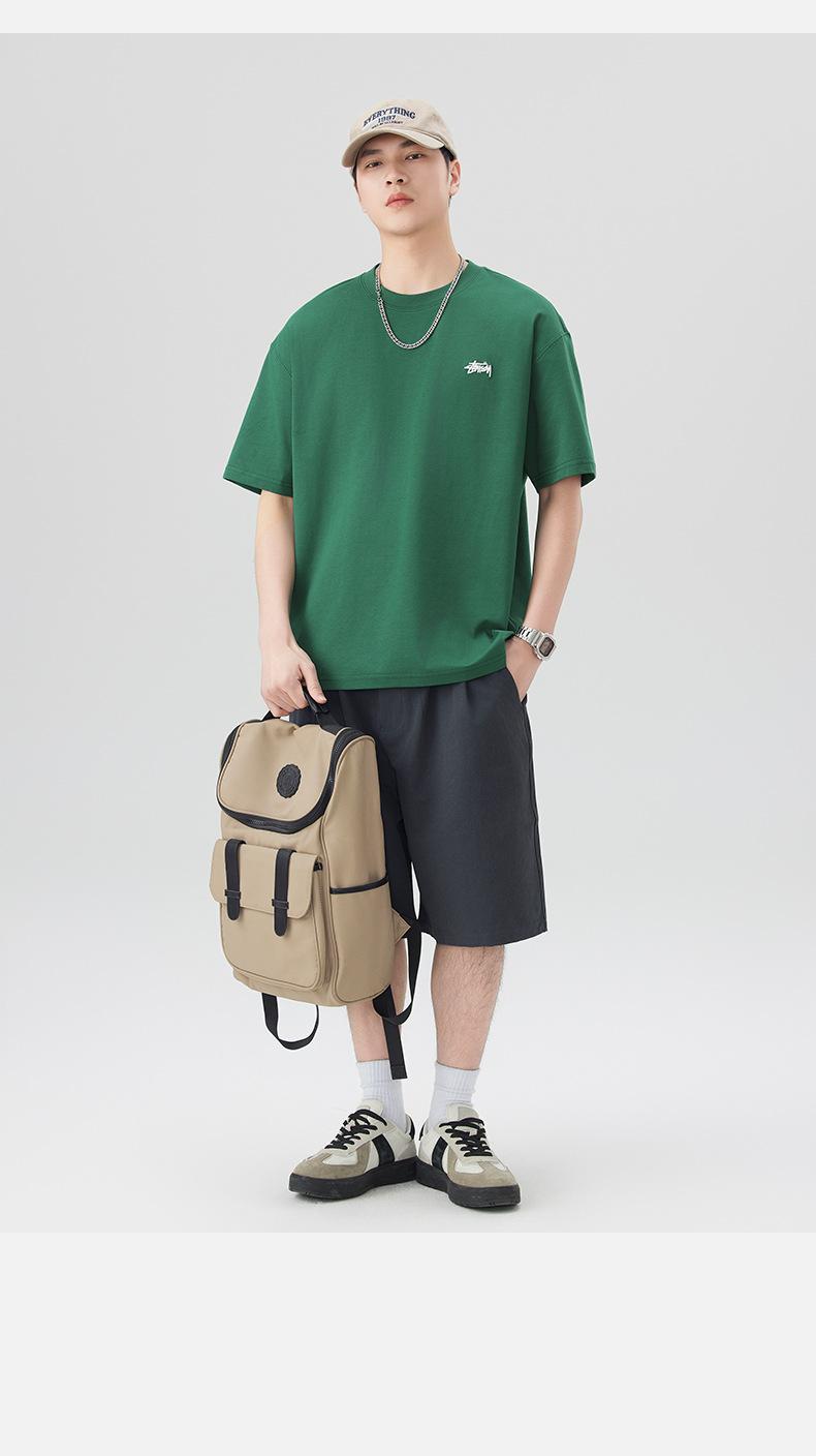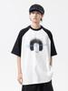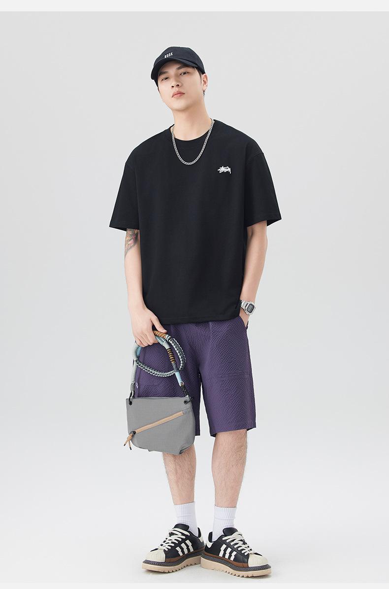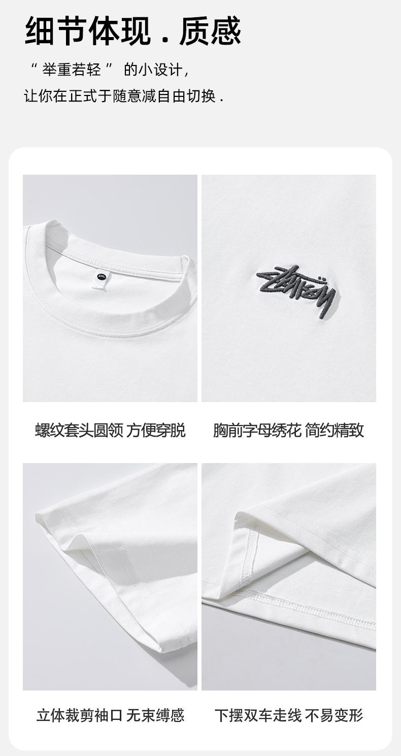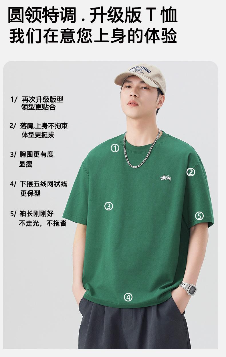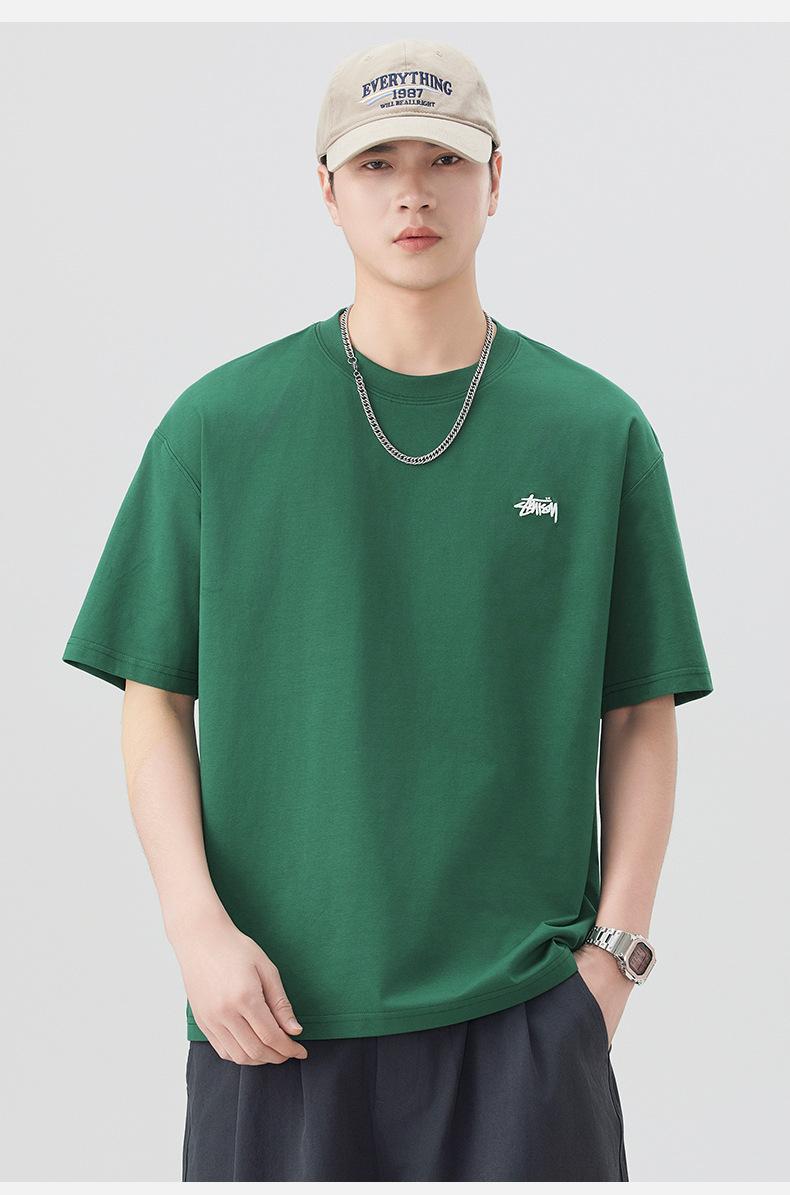 Verano nueva moda japonesa estampado 230g camiseta manga corta hombre holgada talla grande cuello redondo blanco media manga marea