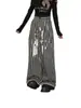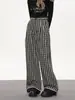 Pantalones casuales rectos a cuadros de tejido retro, nuevos, de marca moderna, diseño holgado, para todo tipo de deportes, negros.