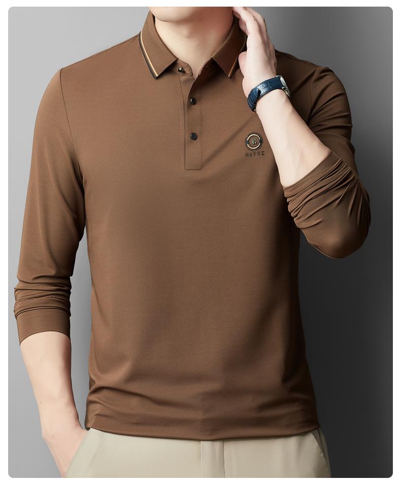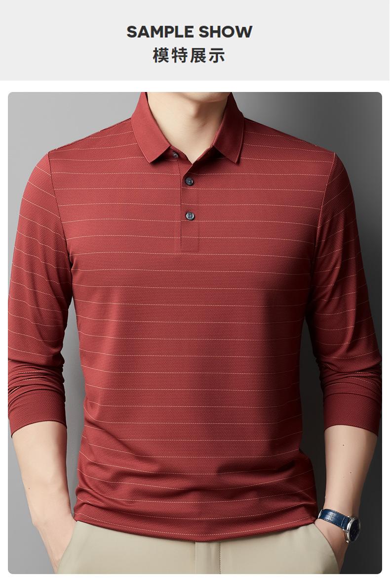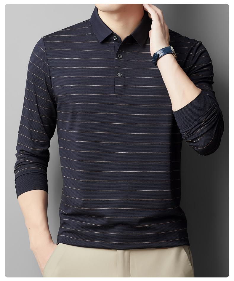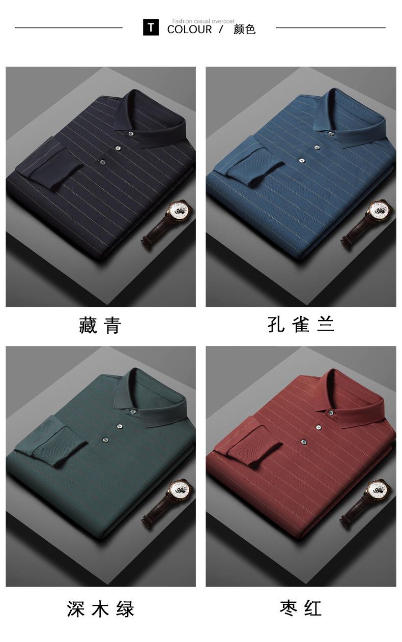 Compra Camiseta de manga larga a rayas para hombres de mediana edad y mayores, con solapa, primavera y otoño, nueva camisa polo informal holgada para papá para hombres al por mayor en Joom.pro