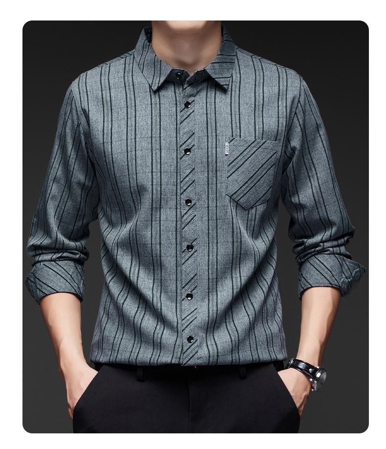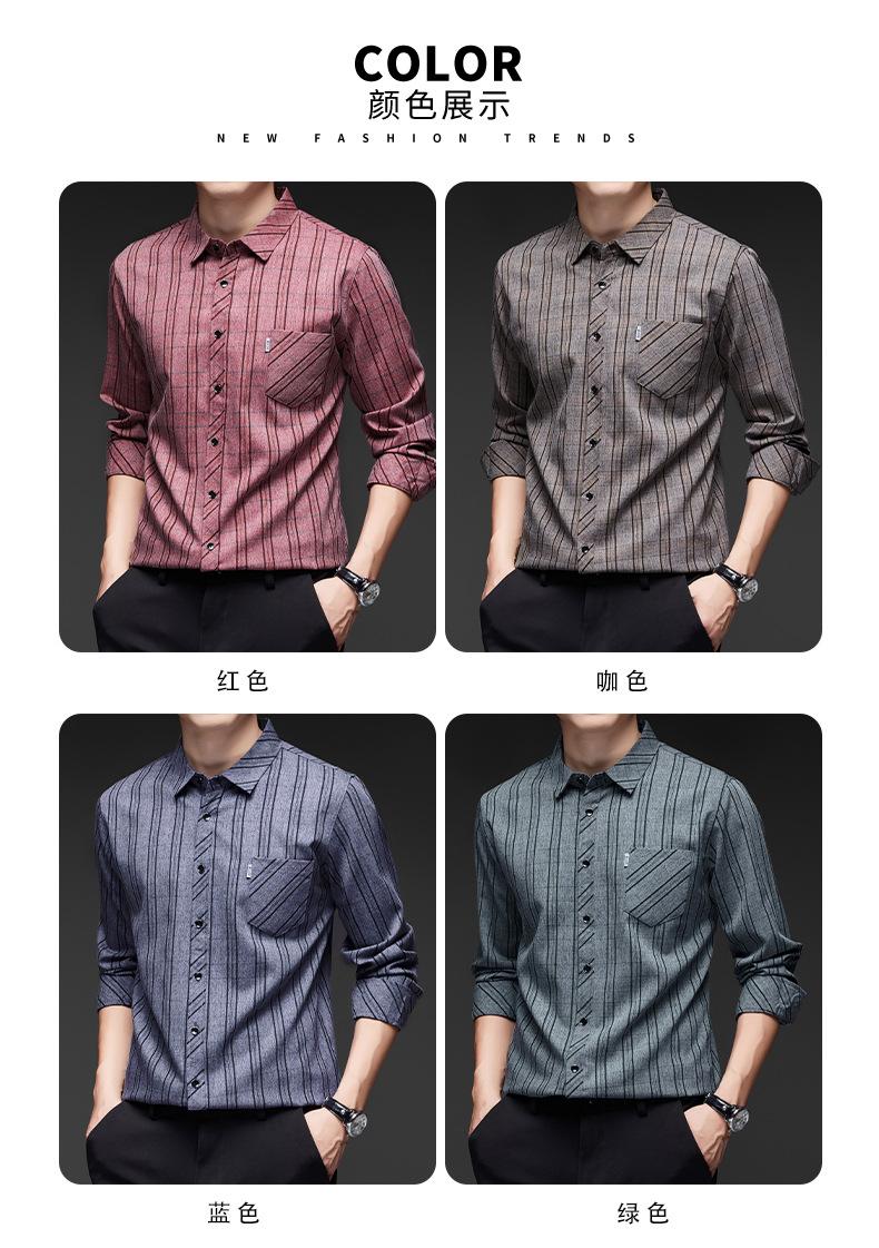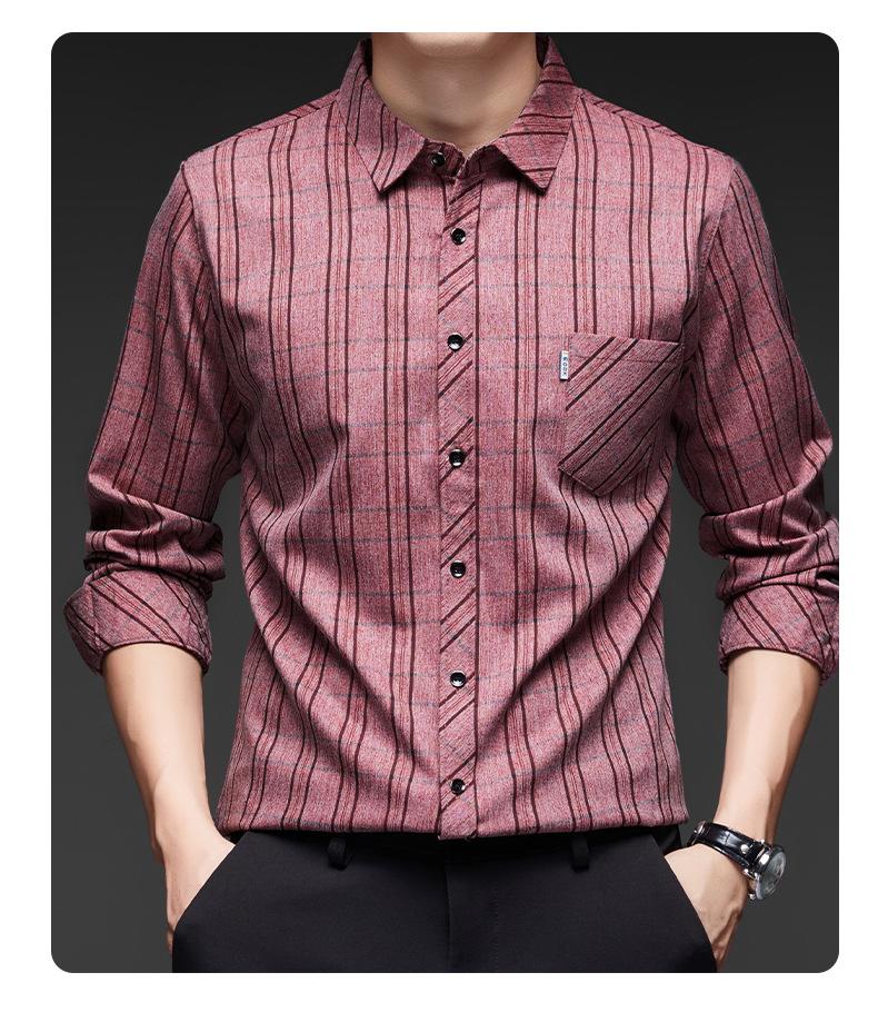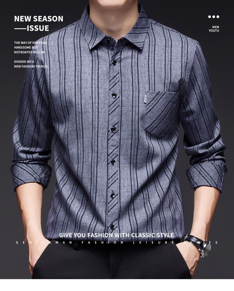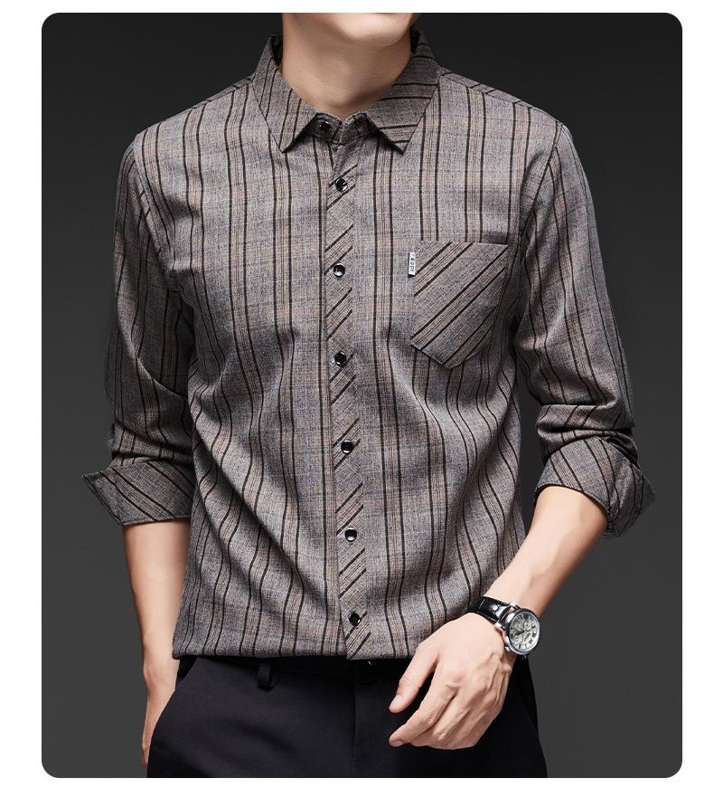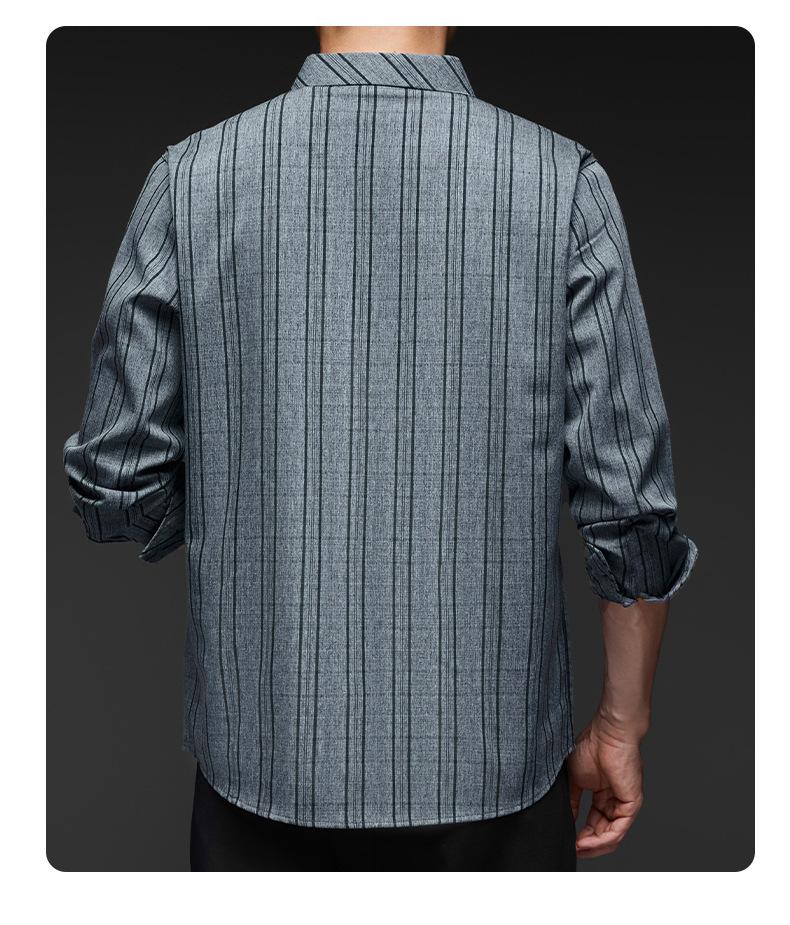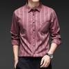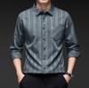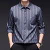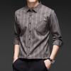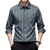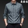 Camisa de hombre de seda morera de primavera y otoño 2024, nueva camisa informal de lino a rayas con bolsillo real y manga larga para mediana edad.