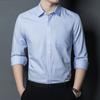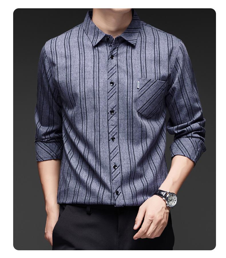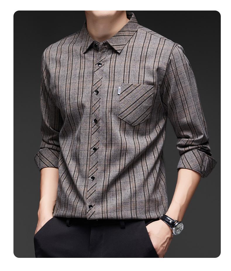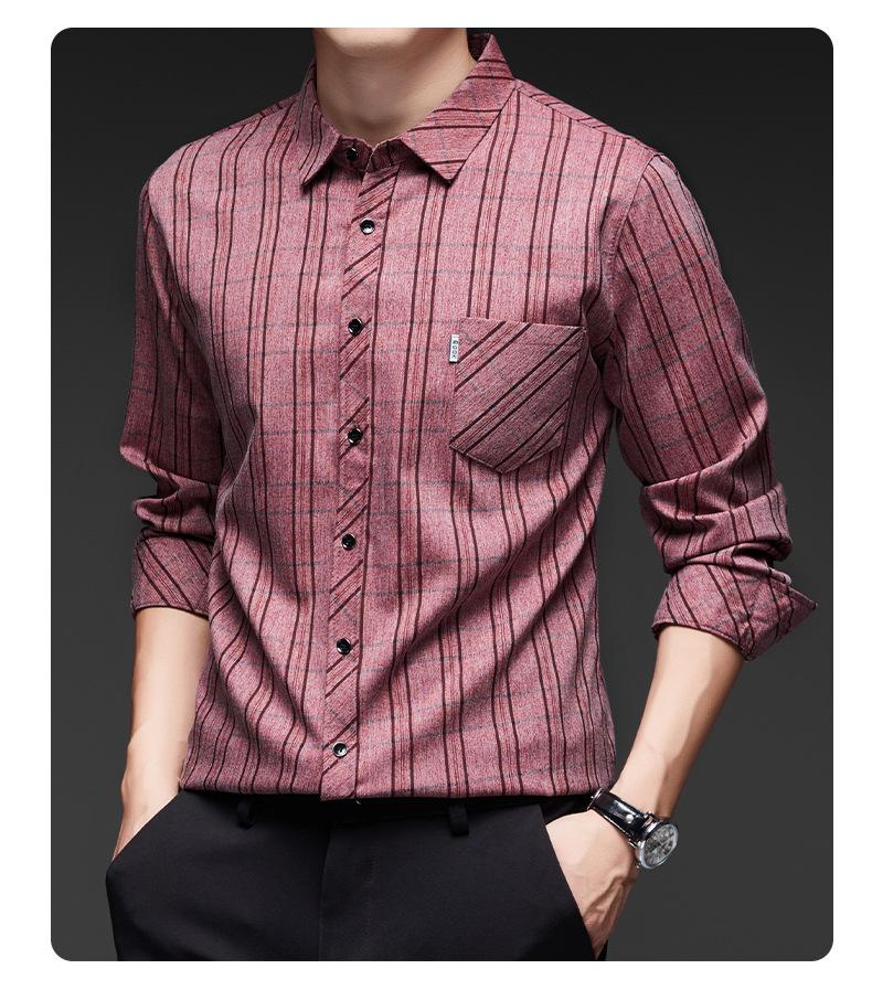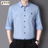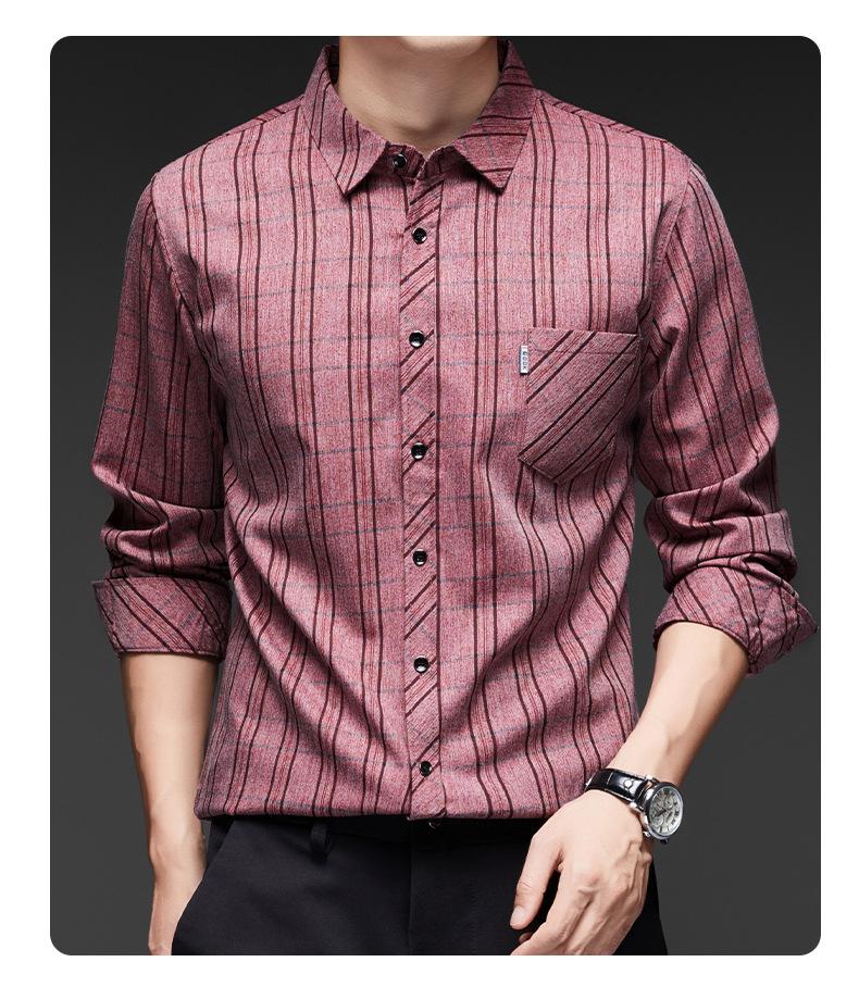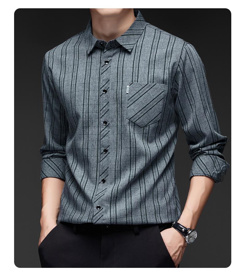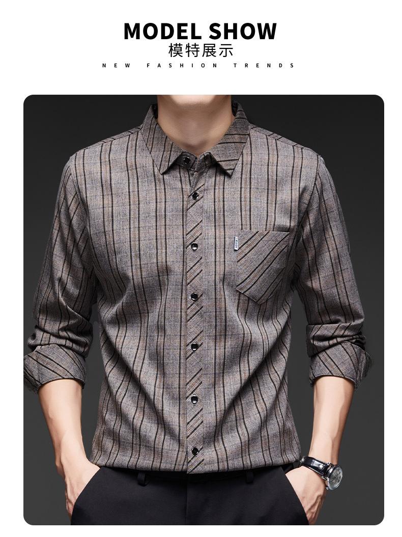 Camisa de hombre de seda morera de primavera y otoño 2024, nueva camisa informal de lino a rayas con bolsillo real y manga larga para mediana edad.