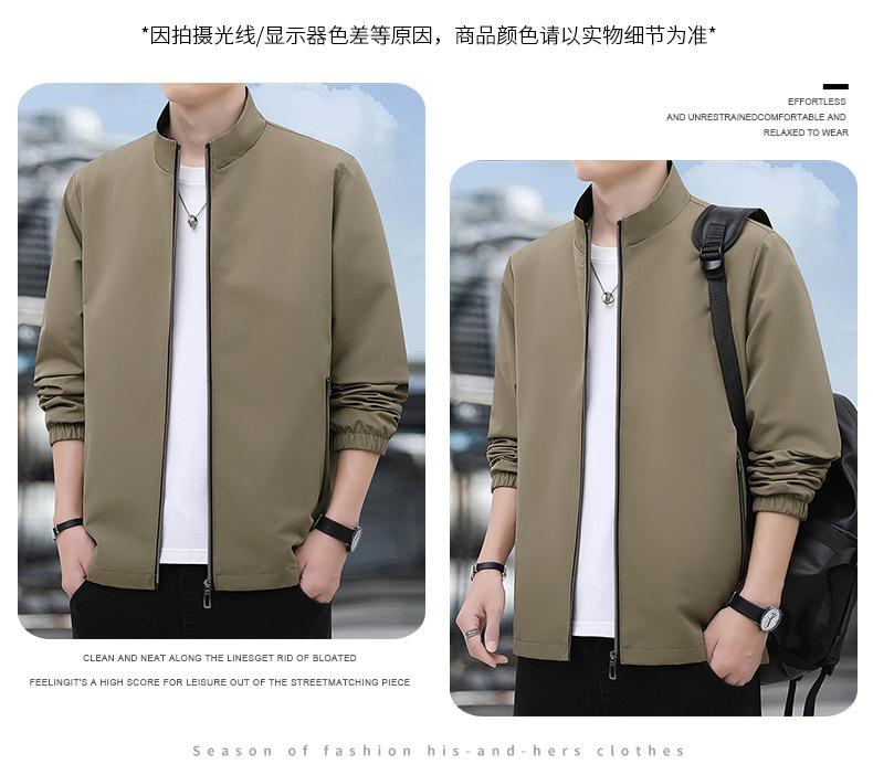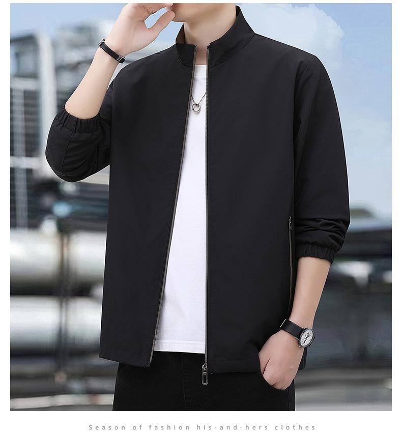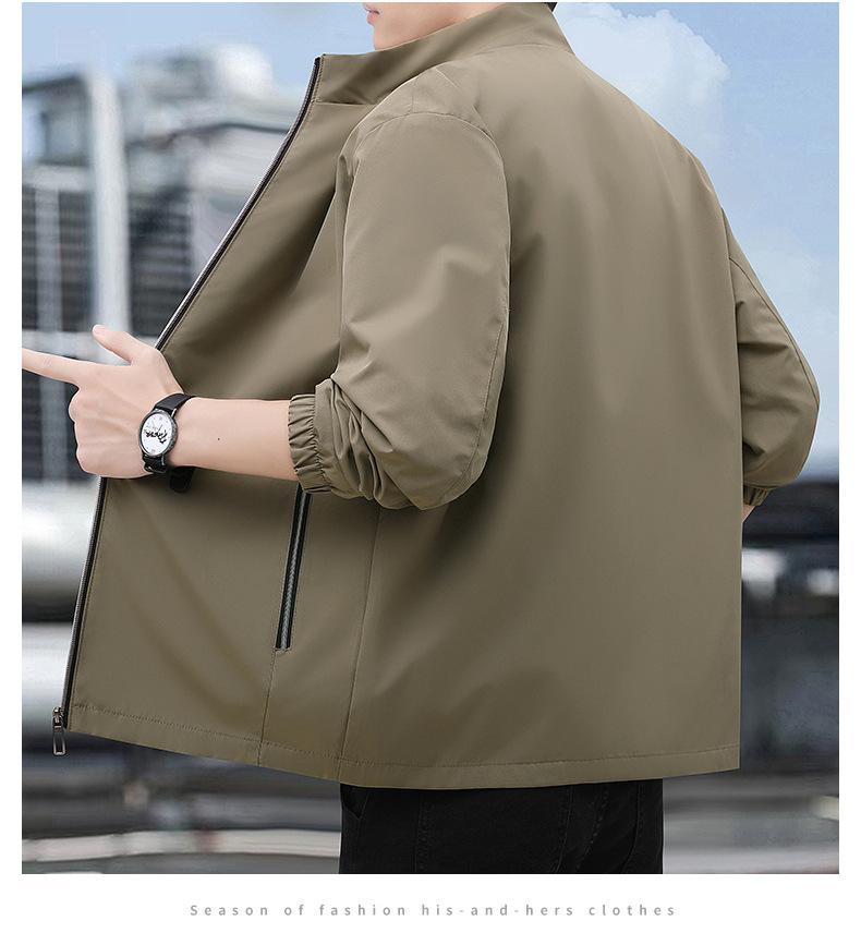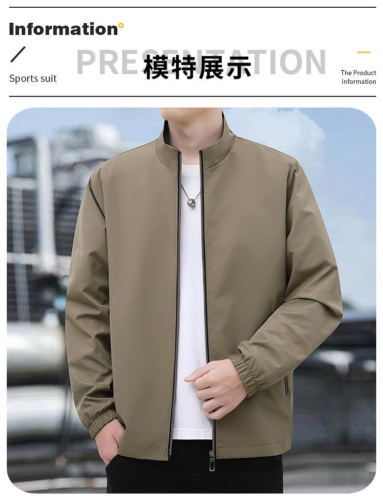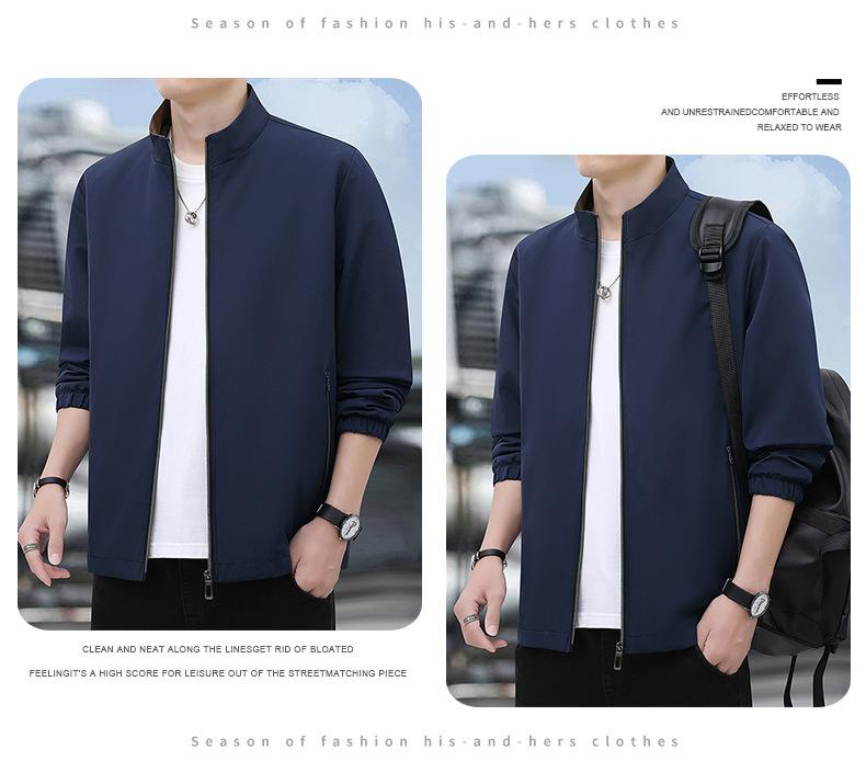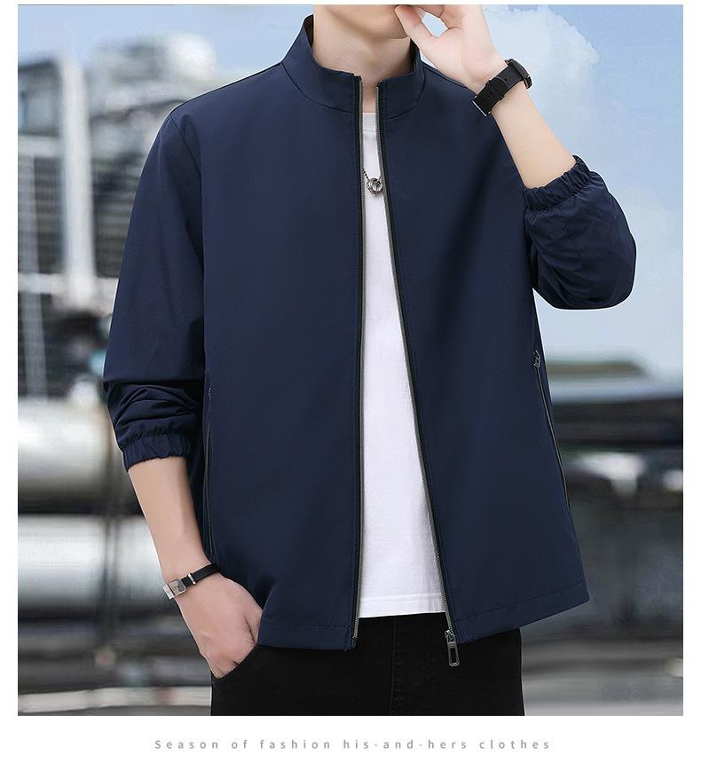 2025 Nueva Chaqueta Casual para Hombre de Color Sólido para Primavera y Otoño con Cuello Vertical, Chaqueta Casual Delgada para Papá de Negocios de Mediana Edad