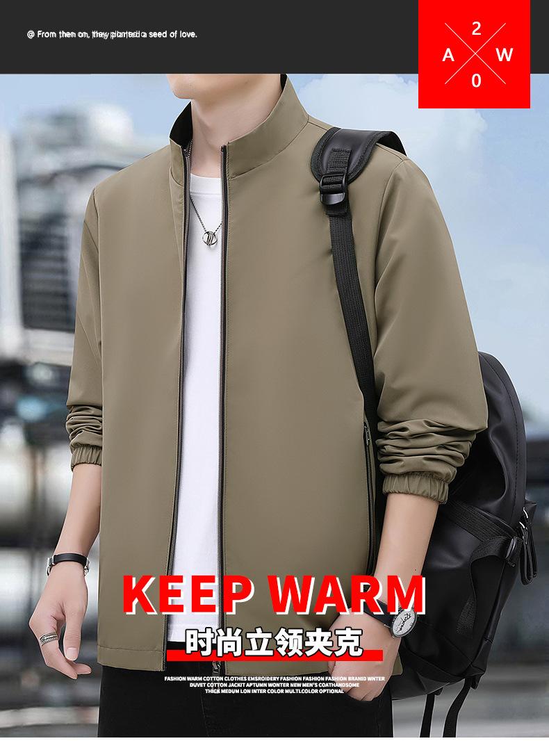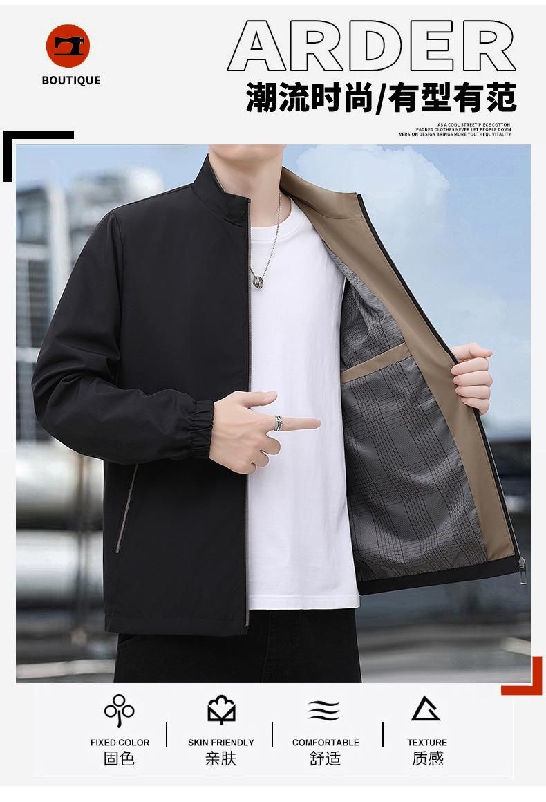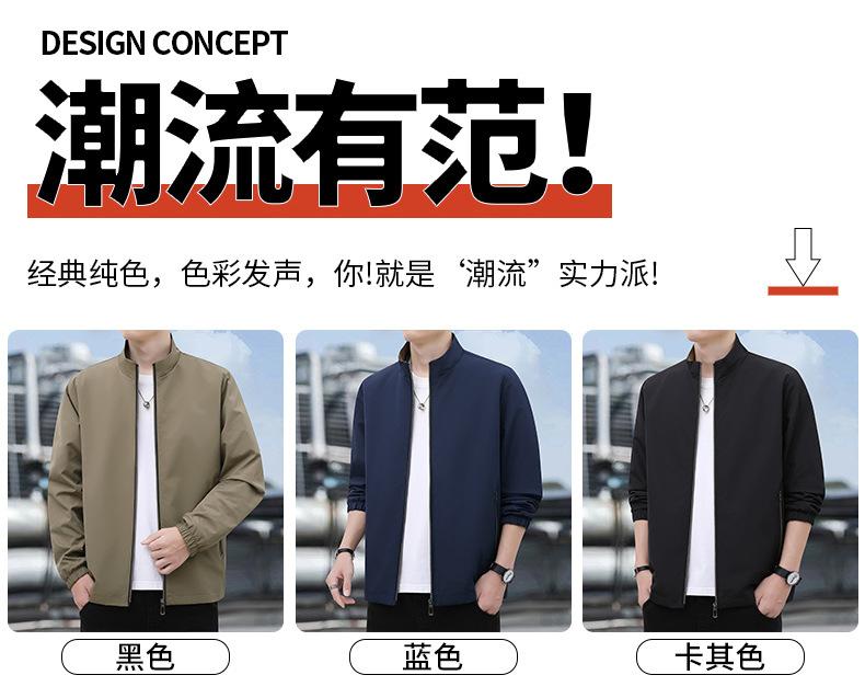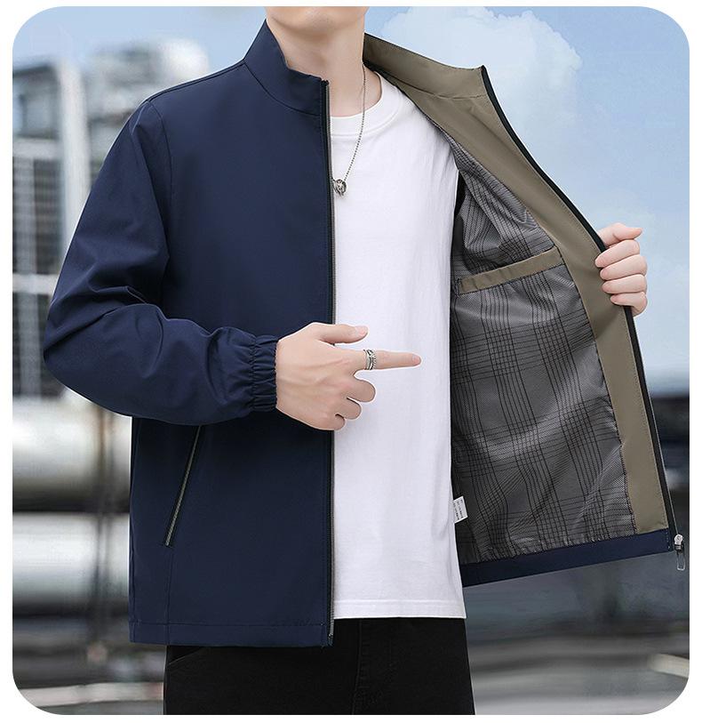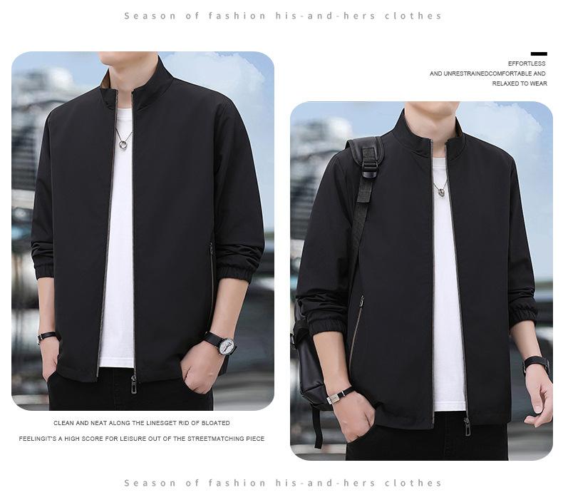 2025 Nueva Chaqueta Casual para Hombre de Color Sólido para Primavera y Otoño con Cuello Vertical, Chaqueta Casual Delgada para Papá de Negocios de Mediana Edad