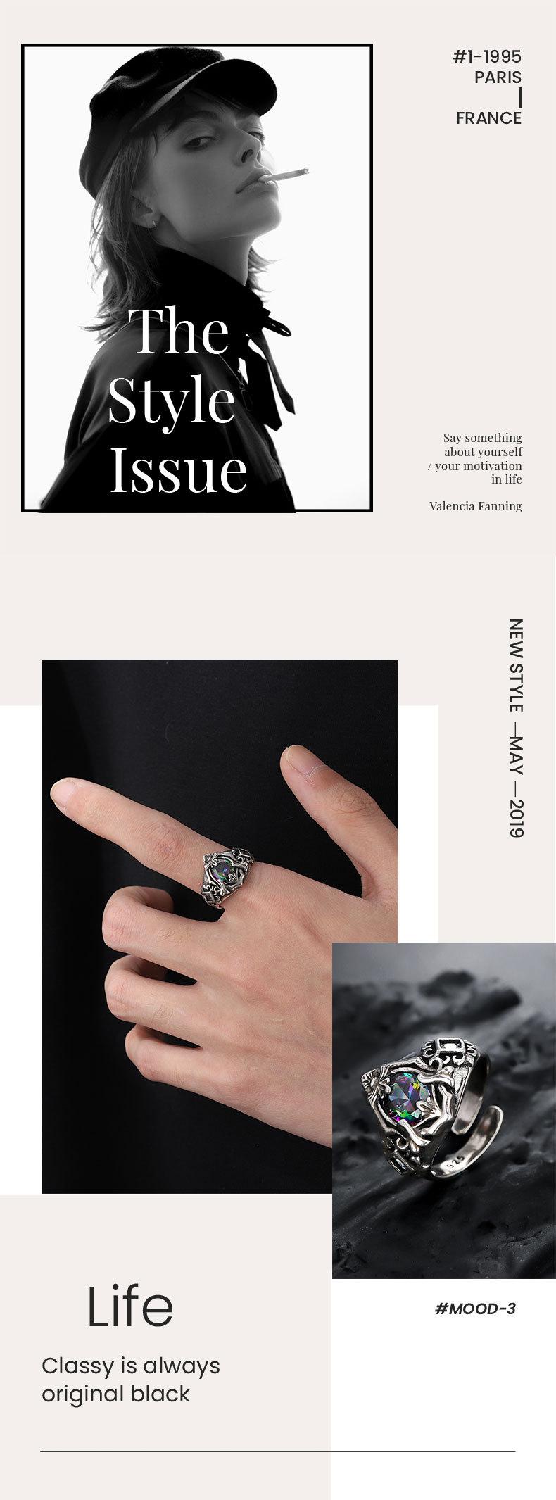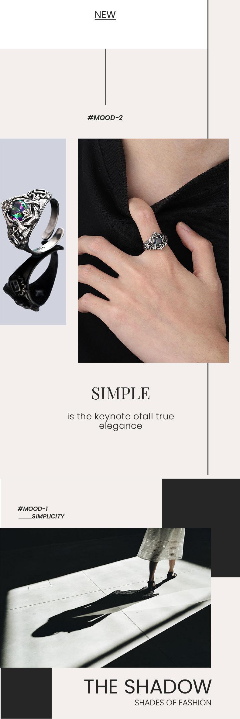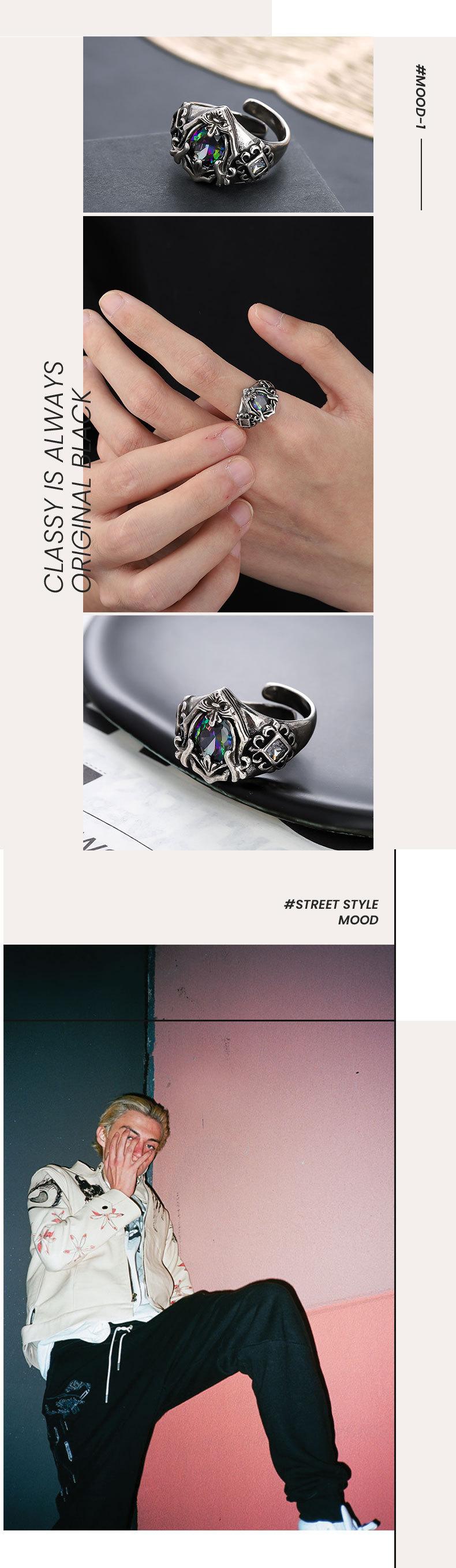 Anillo "Crucífero" para Hombre Abierto Ajustable No se Desvanece Diseño Retro Anillo de Piedra Colorida Joyería de Moda para Mujer