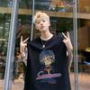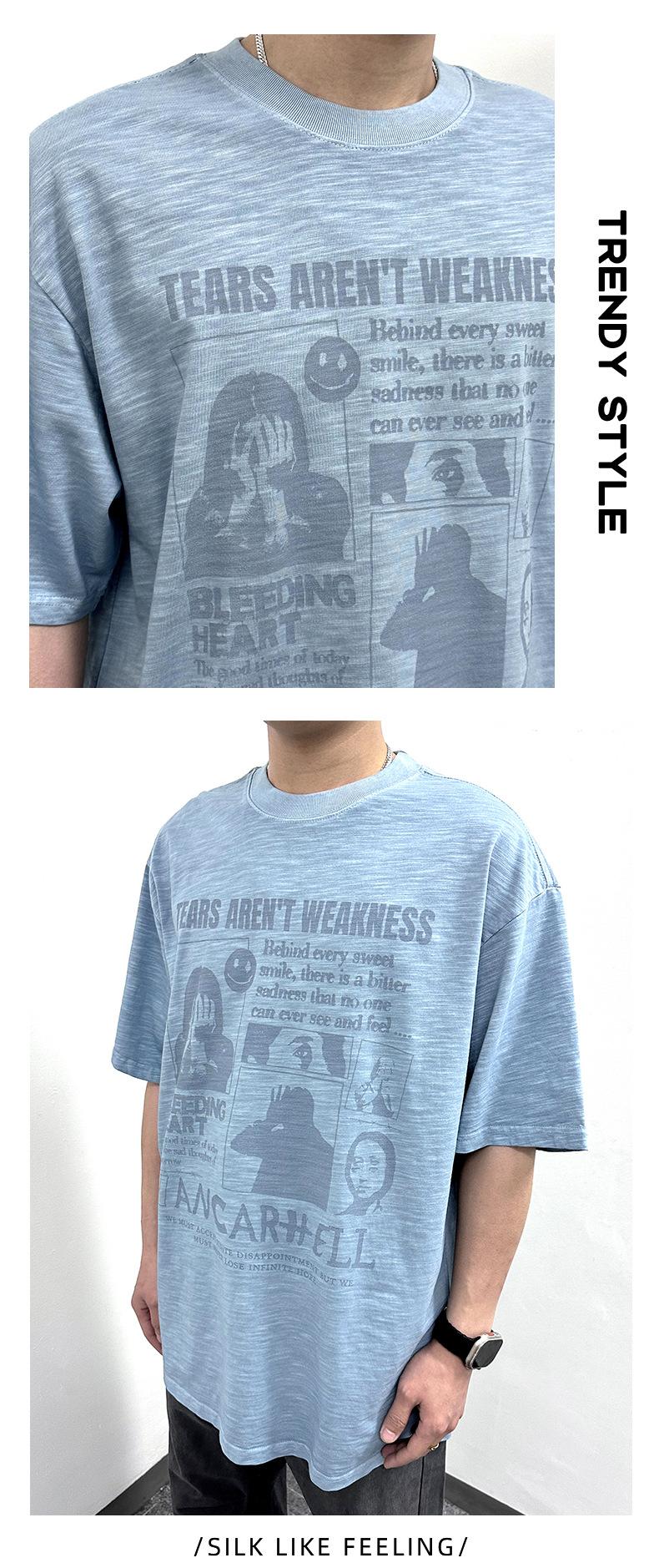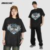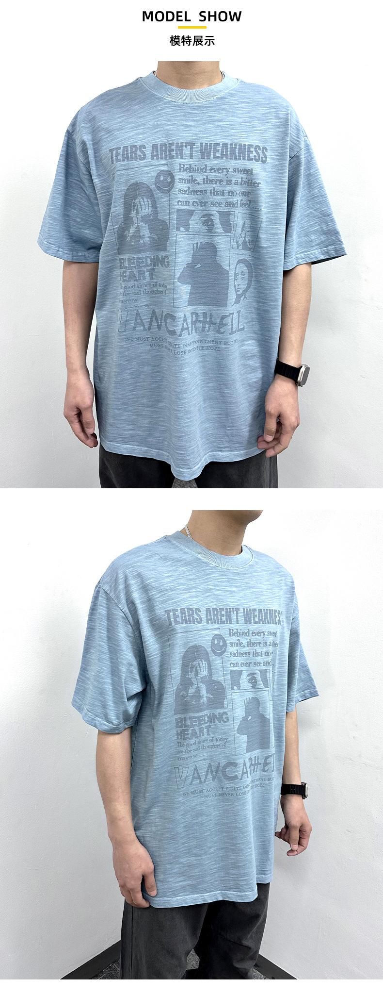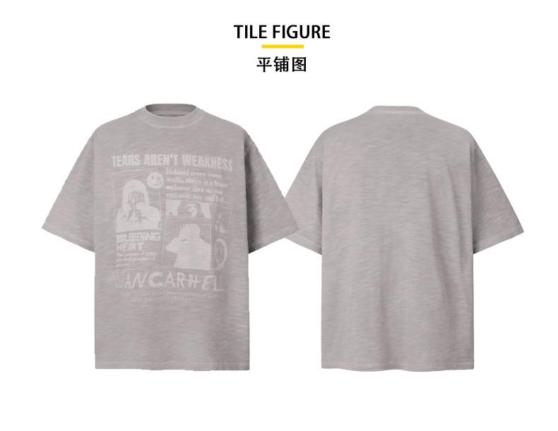 Camiseta vintage de estilo hip hop de verano, holgada, de manga corta, con cuello redondo y estampado nacional.