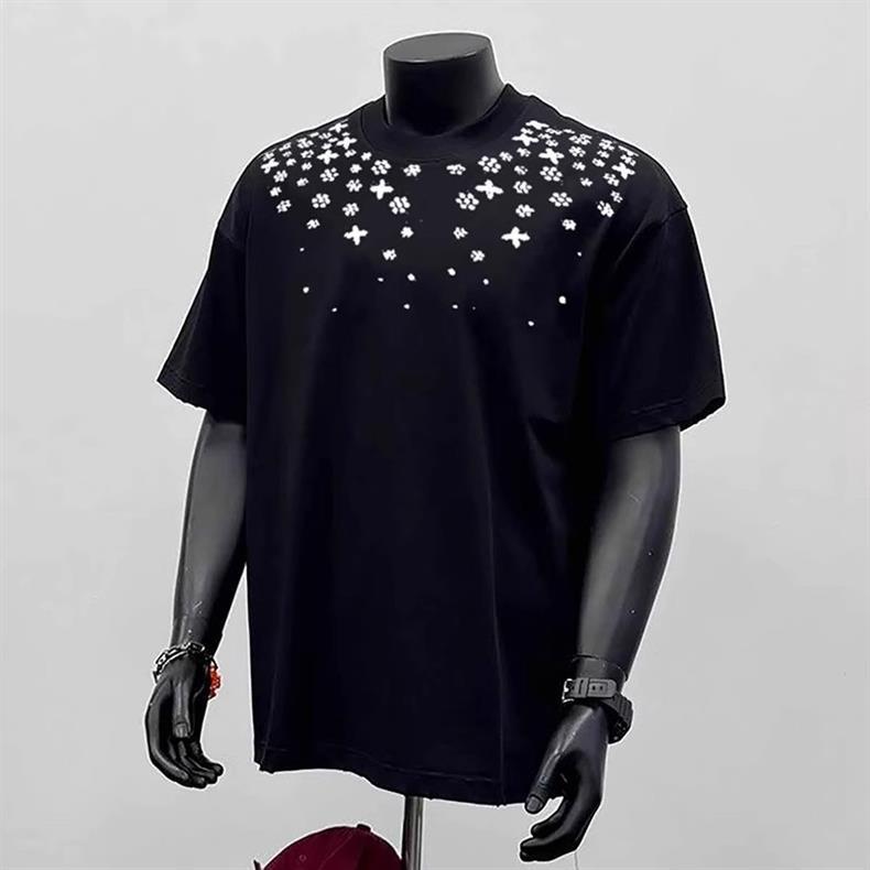 Camiseta de verano de manga corta para hombre, nueva marca de moda americana, camiseta de algodón grueso, holgada, de media manga.