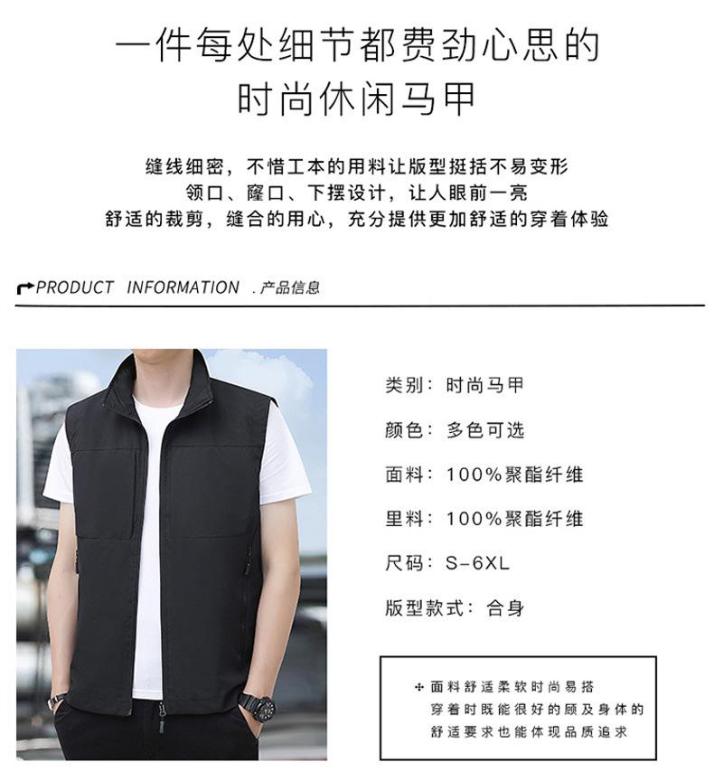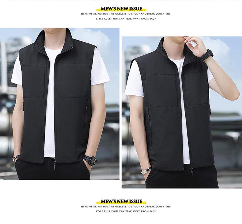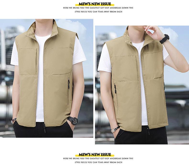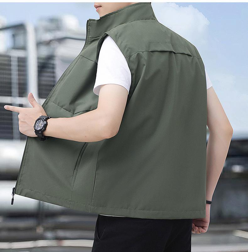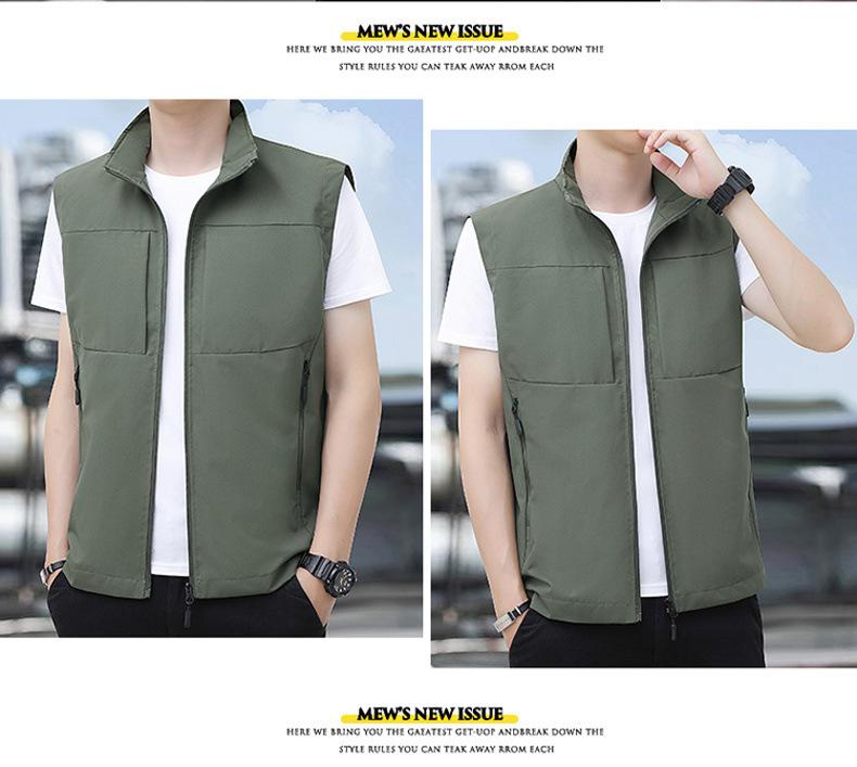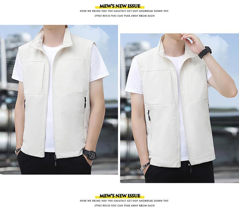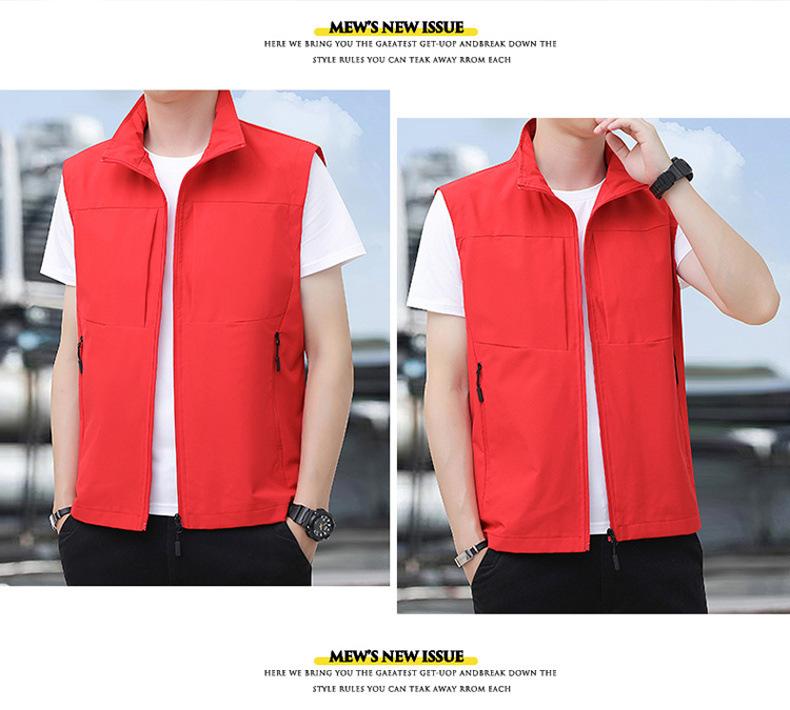 Chaleco Delgado de Primavera y Otoño para Hombre Casual Cuello Alto Chaleco Exterior Rojo Chaqueta sin Mangas Talla Grande Chaleco de Ropa de Trabajo