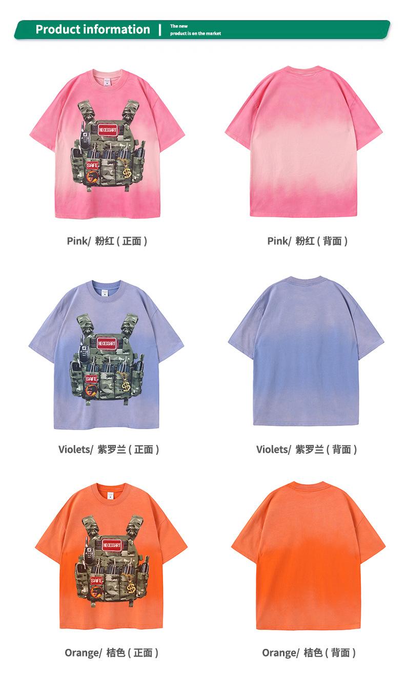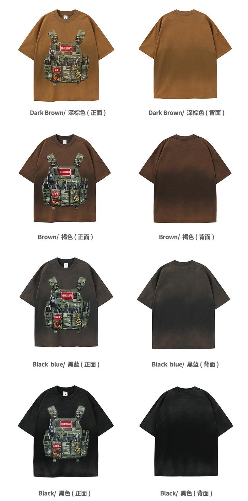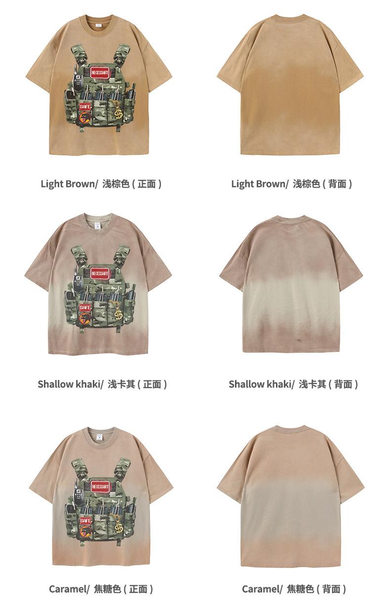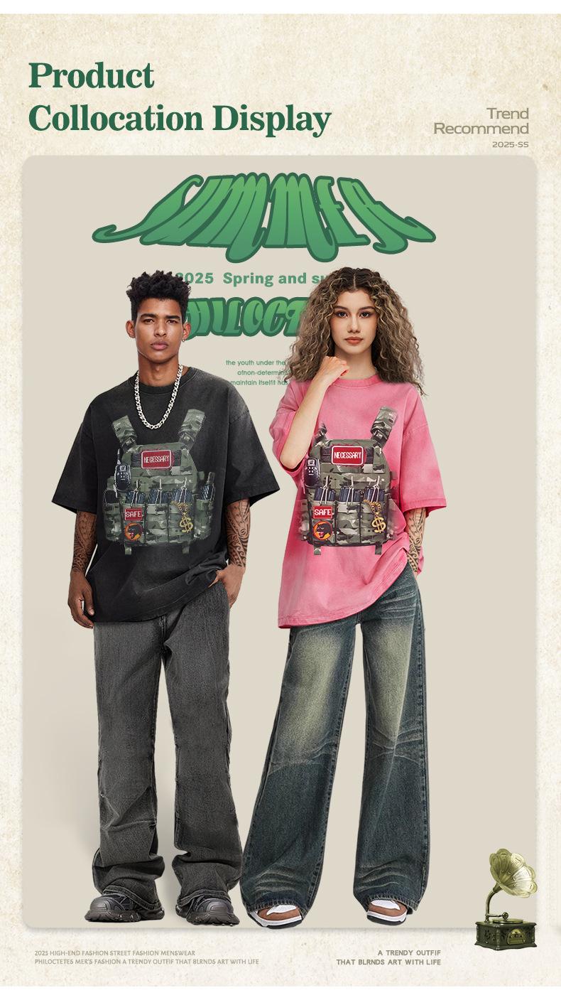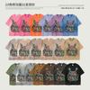 Camiseta Americana de Alta Calle Transfronteriza Personalizada con Estampado Algodón Pesado Lavado Desgastado Camiseta de Manga Corta para Hombre Retro Vintage