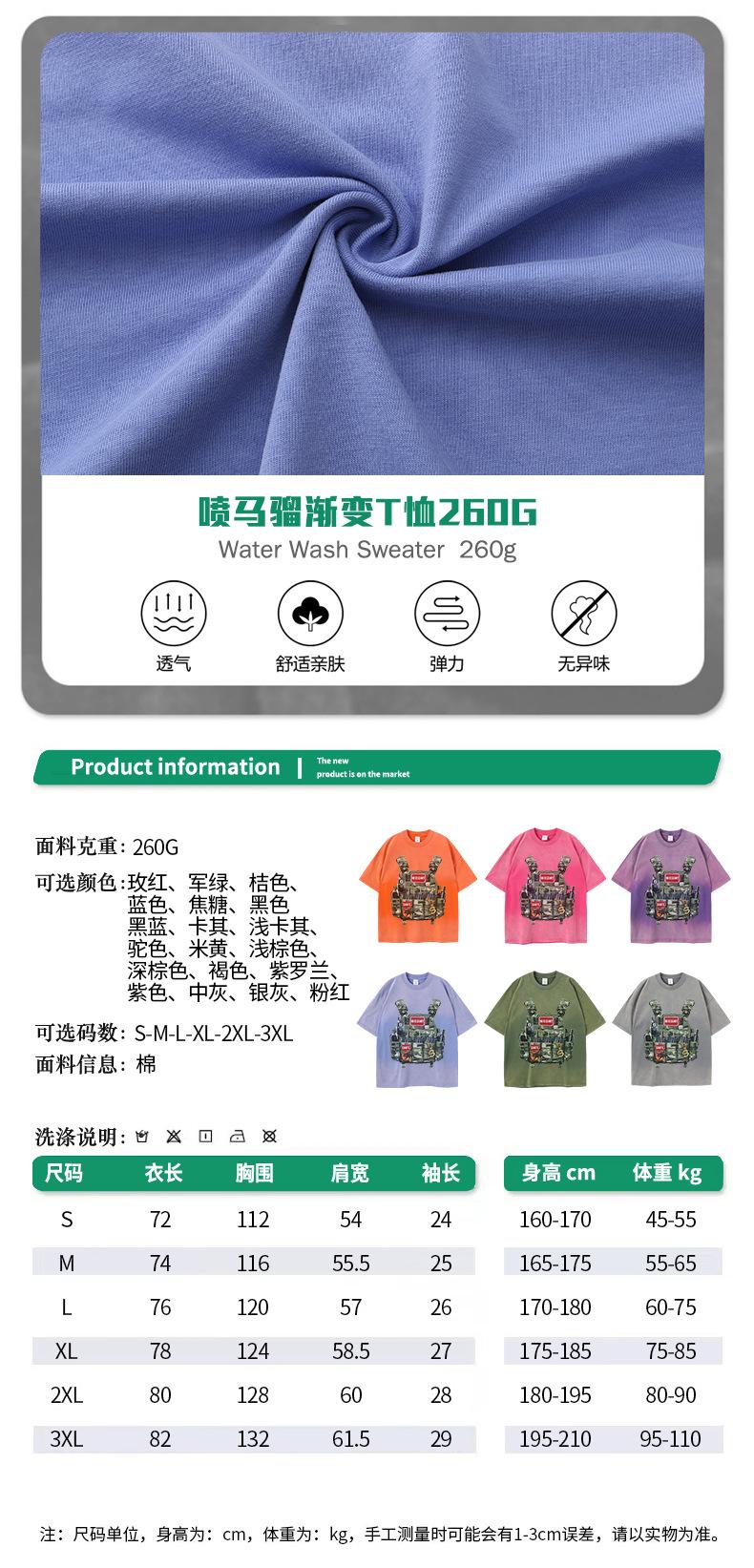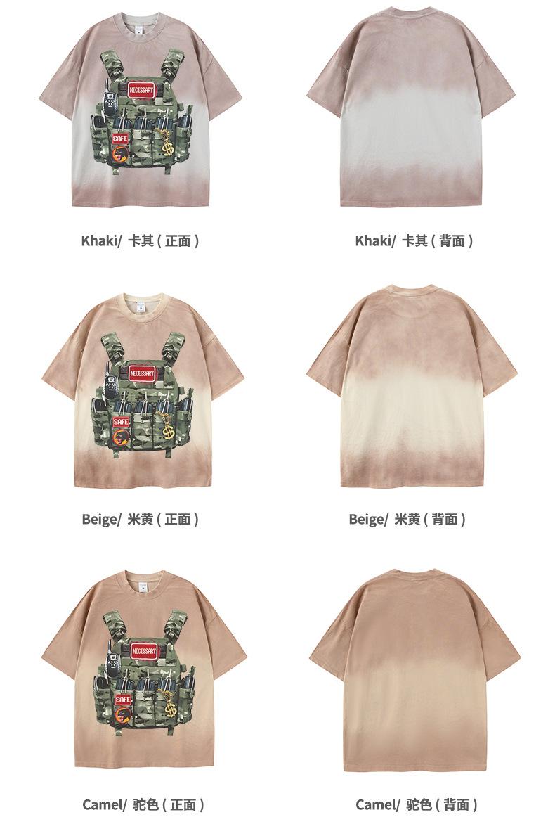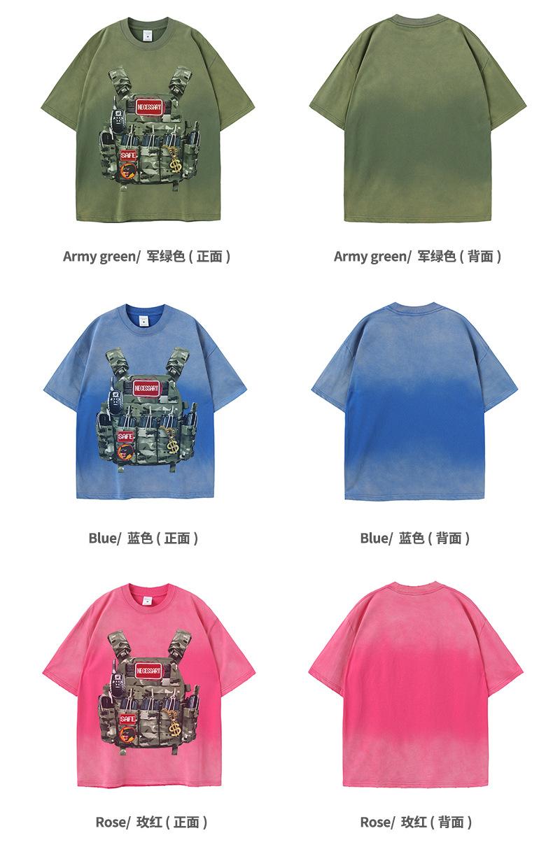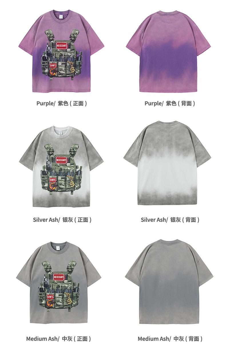 Camiseta Americana de Alta Calle Transfronteriza Personalizada con Estampado Algodón Pesado Lavado Desgastado Camiseta de Manga Corta para Hombre Retro Vintage