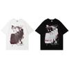 Camiseta de manga corta de algodón puro con estampado de retrato de nicho de High Street de marca de moda, holgada e informal para parejas, para hombres y mujeres.
