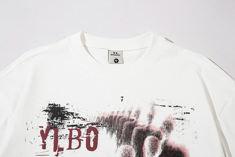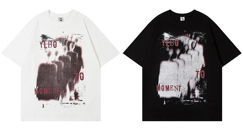 Compra Camiseta de manga corta de algodón puro con estampado de retrato de nicho de High Street de marca de moda, holgada e informal para parejas, para hombres y mujeres. al por mayor en Joom.pro