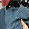 Nueva camiseta de manga corta de seda de hielo transfronteriza para hombre, cuello redondo, malla transpirable de verano, camiseta de media manga, ropa fina de alta gama para hombre