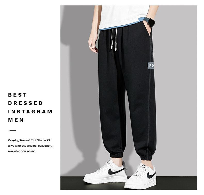 Compra Pantalones deportivos grises de primavera y otoño con costuras laterales para hombre, estilo Hong Kong, modernos, hasta el tobillo, tipo harlan, holgados, combinan con todo, casuales al por mayor en Joom.pro