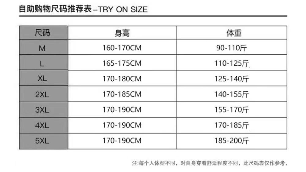 M, L, XL, 2XL, 3XL, 4XL, 5XL