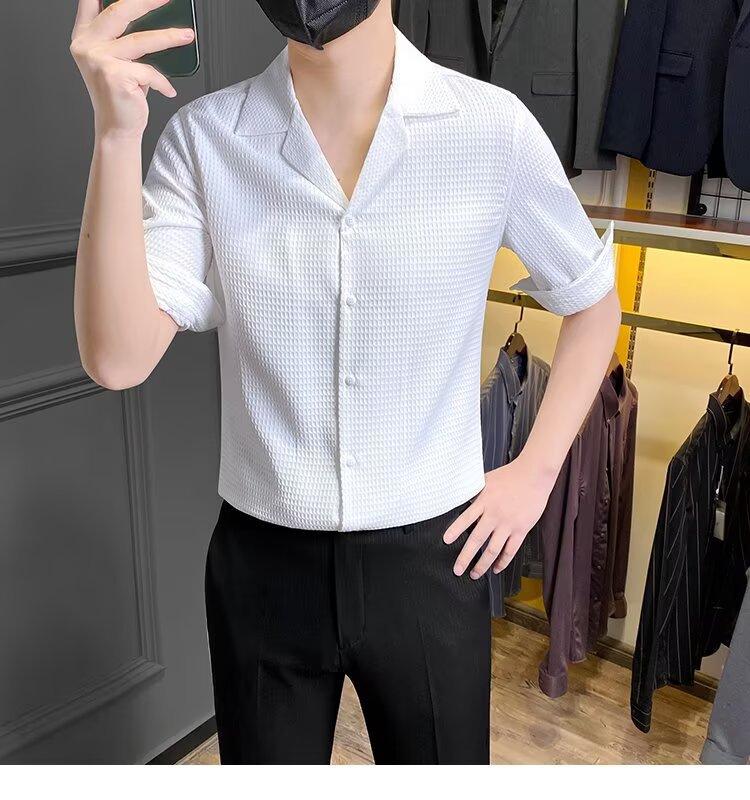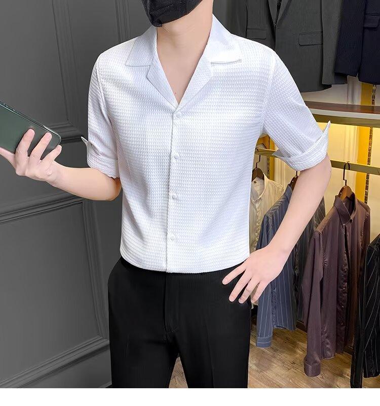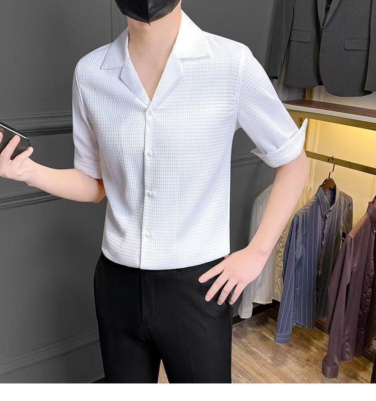Compra Camisa de Manga Corta para Hombre Primavera y Verano 2025 Estilo Coreano Nuevo Ajuste Slim Color Sólido Manga Siete Cuartos Top Casual Estilo Coreano al por mayor en Joom.pro