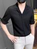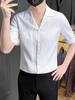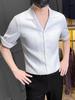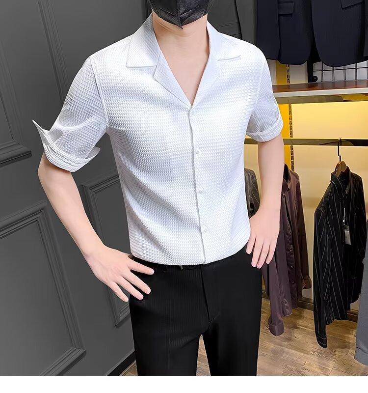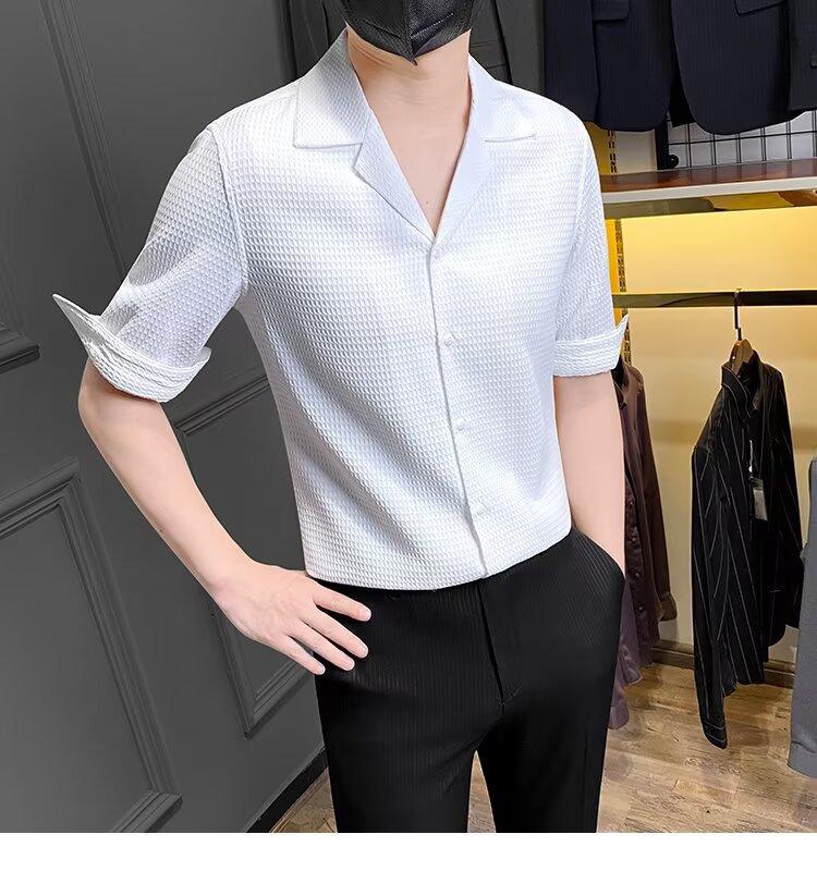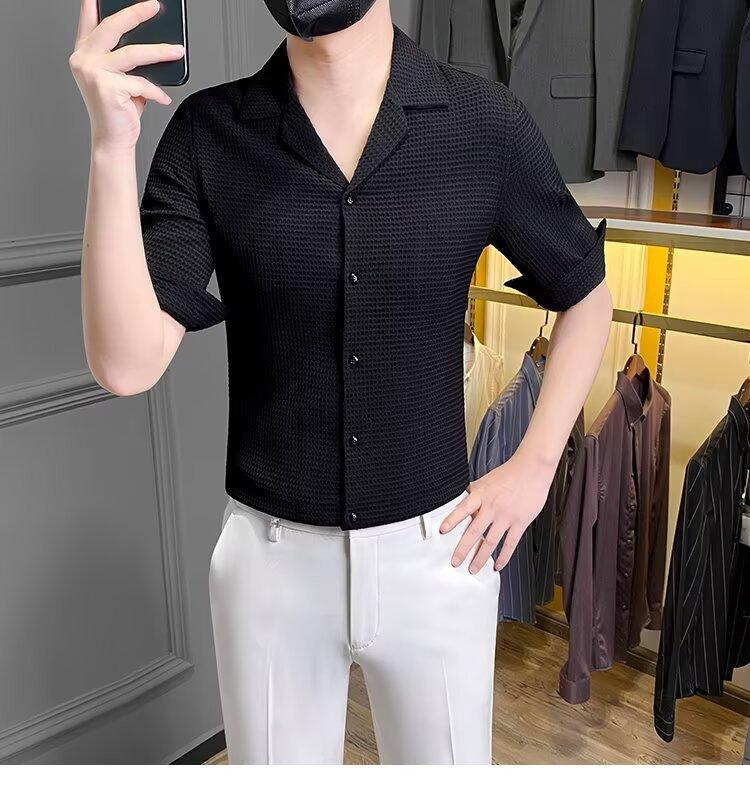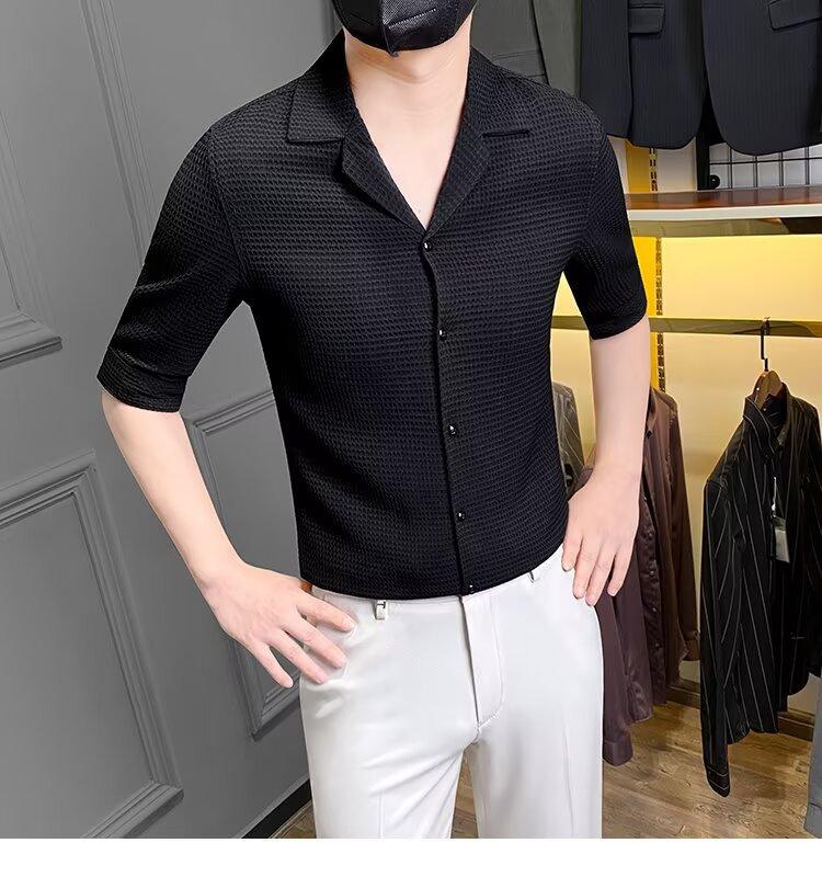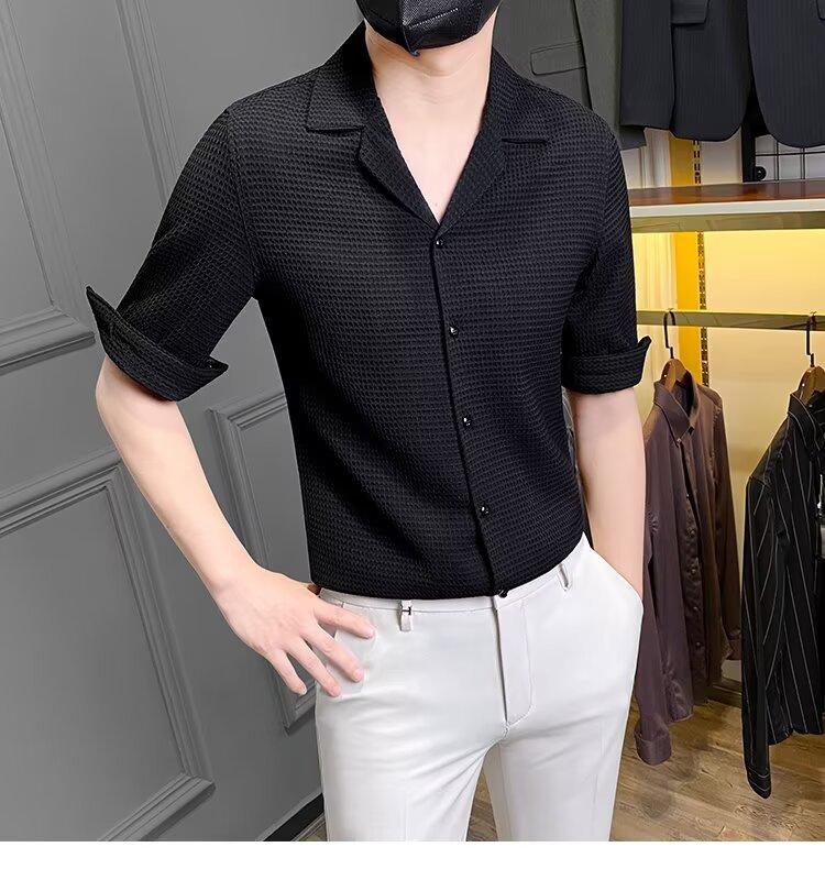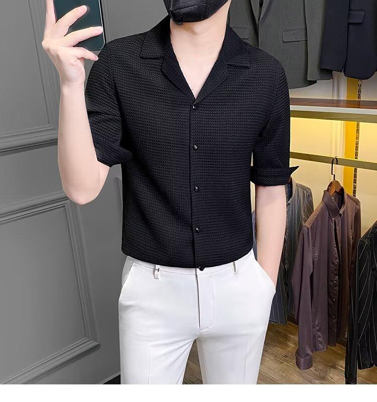 Camisa de Manga Corta para Hombre Primavera y Verano 2025 Estilo Coreano Nuevo Ajuste Slim Color Sólido Manga Siete Cuartos Top Casual Estilo Coreano