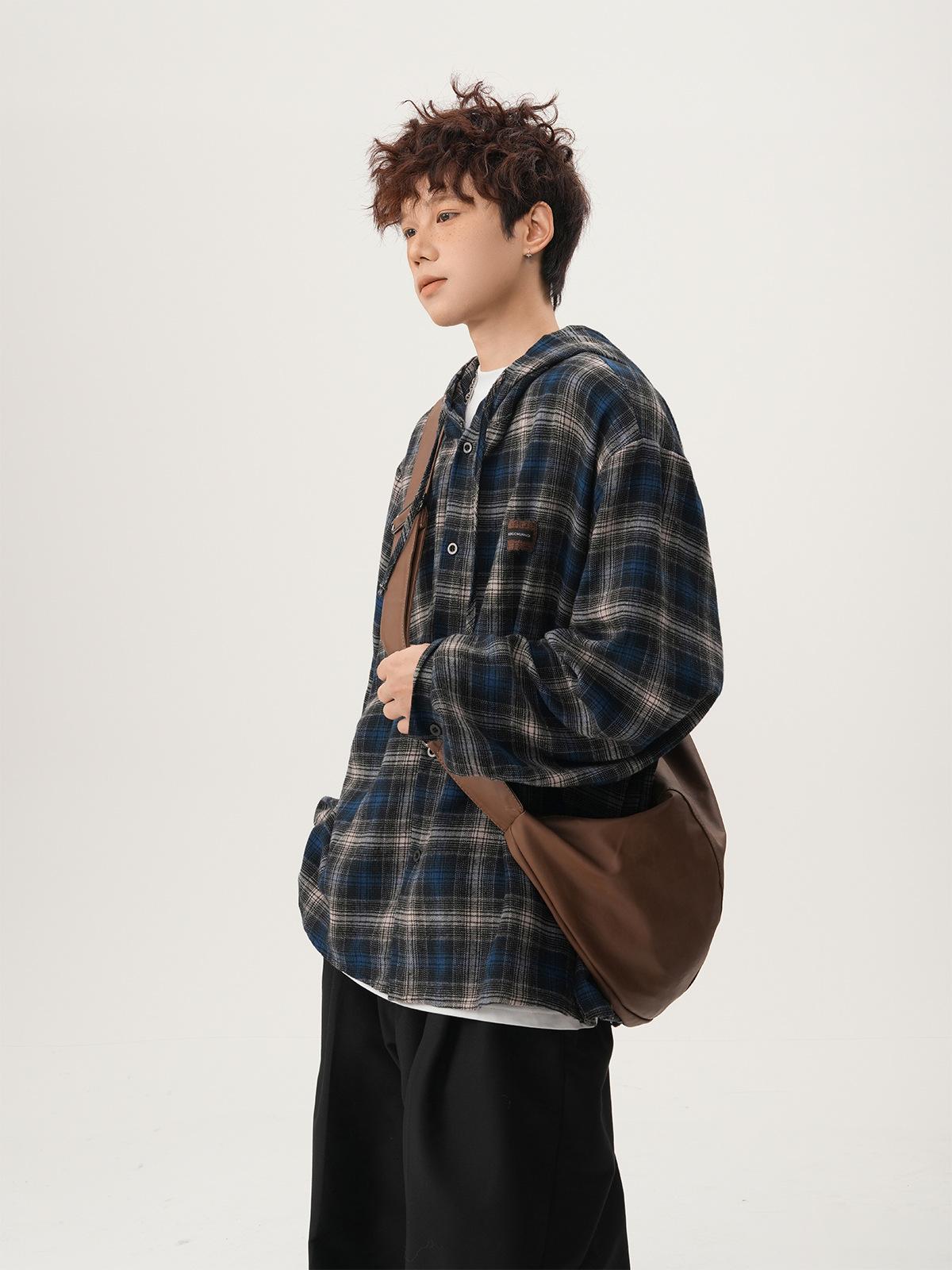 Camisa de manga larga para hombre, nueva moda de primavera 2025, informal, holgada y combinable, a cuadros, a la moda