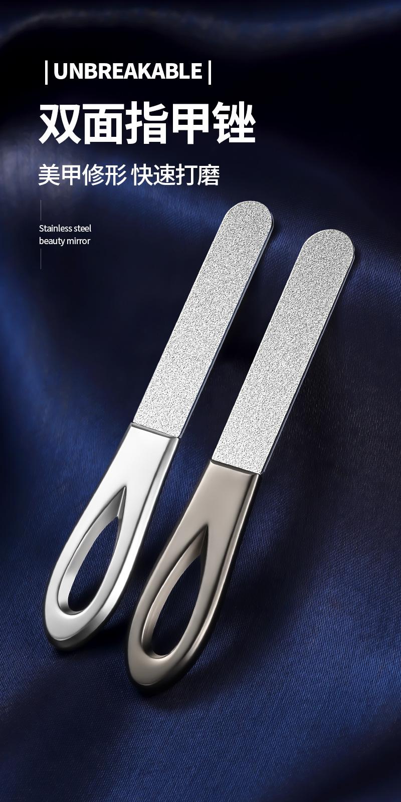 Lima nueva de gota para uñas de aleación de zinc de doble cara de acero inoxidable con arena plateada esmalte de uñas herramienta para uñas esmalte de uñas brillante transfronteriza