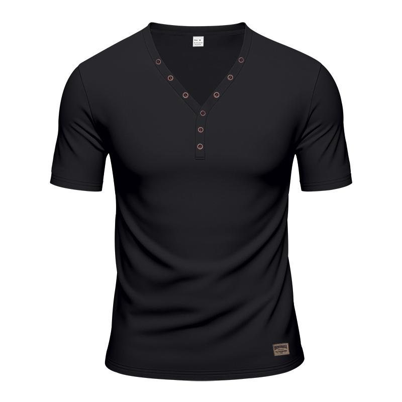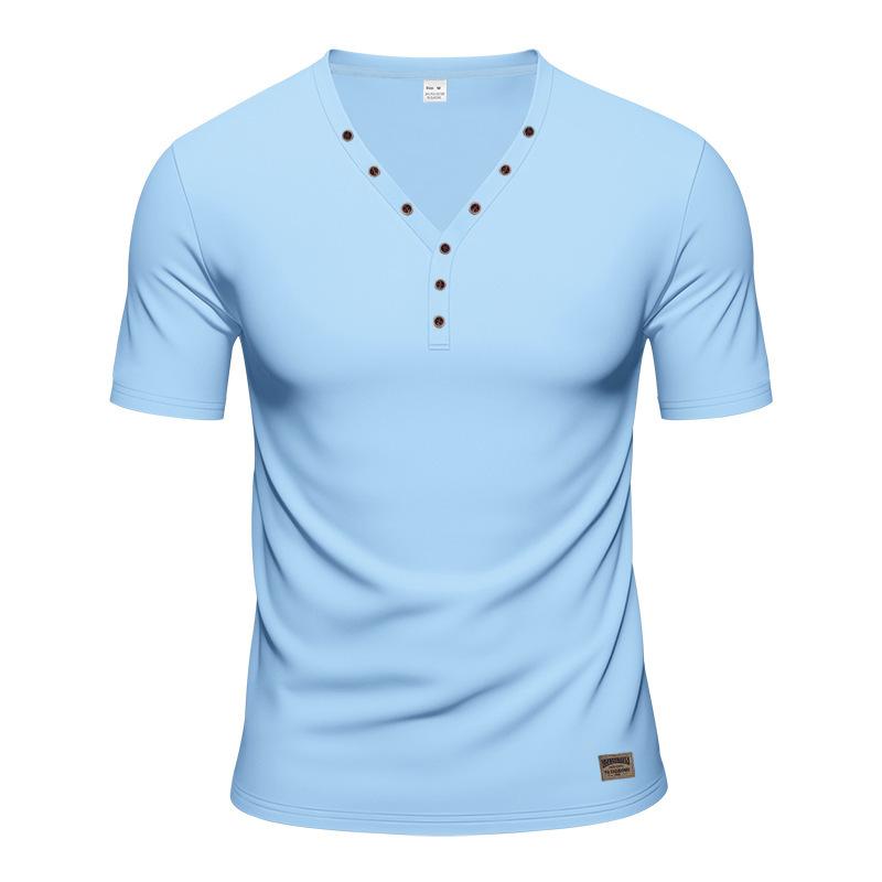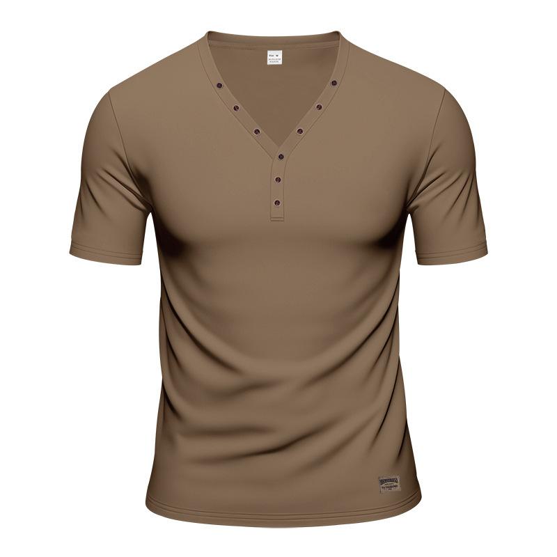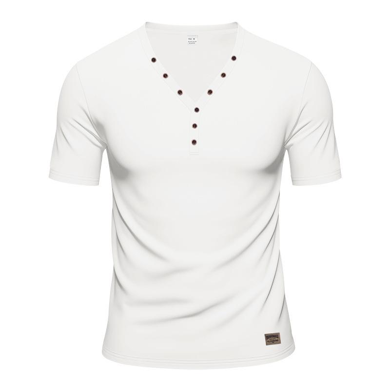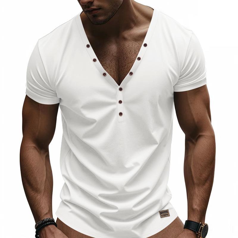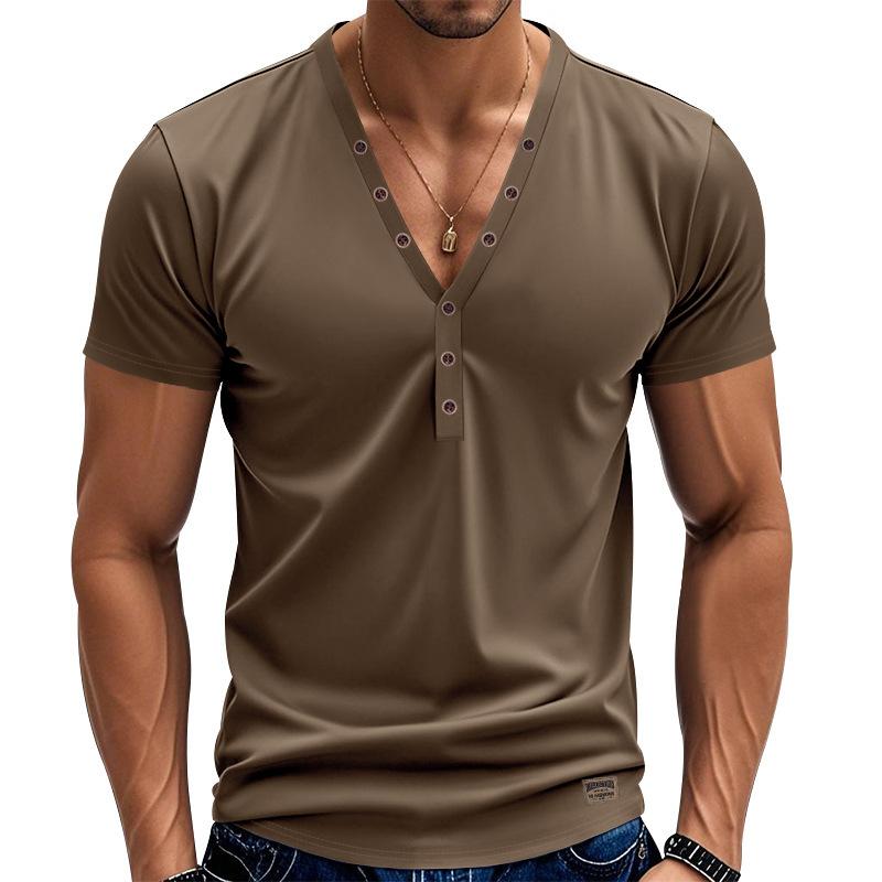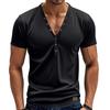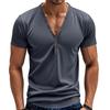 Estilo del producto: camiseta henley de manga corta con cuello en V para hombre de verano americano.