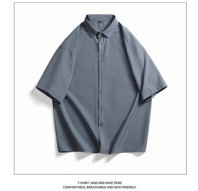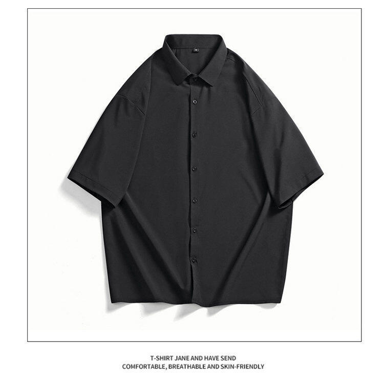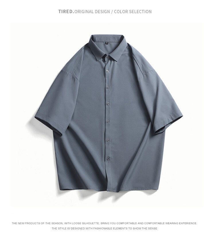 Verano 2025 Comercio Exterior Nueva Camisa Casual Holgada de Manga Corta para Hombre de Color Sólido para Hombre talla grande Solapa Camisa de Manga Larga