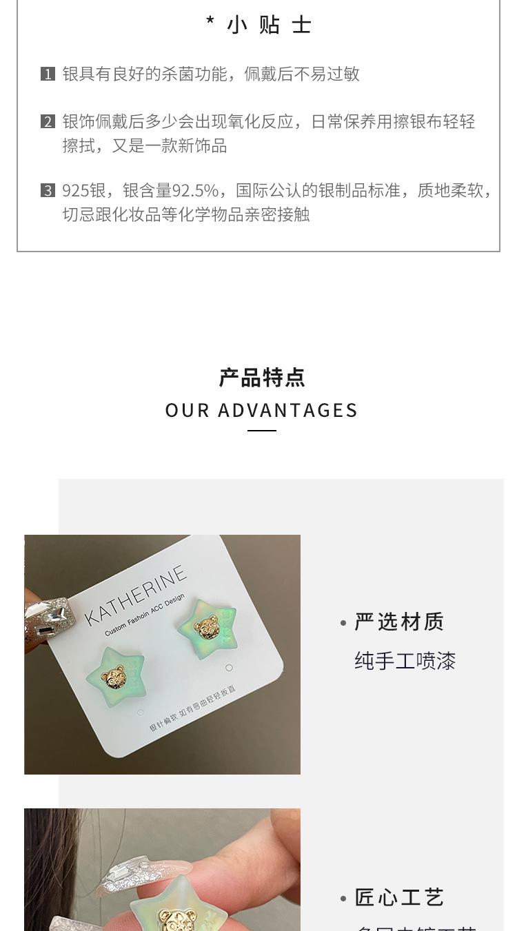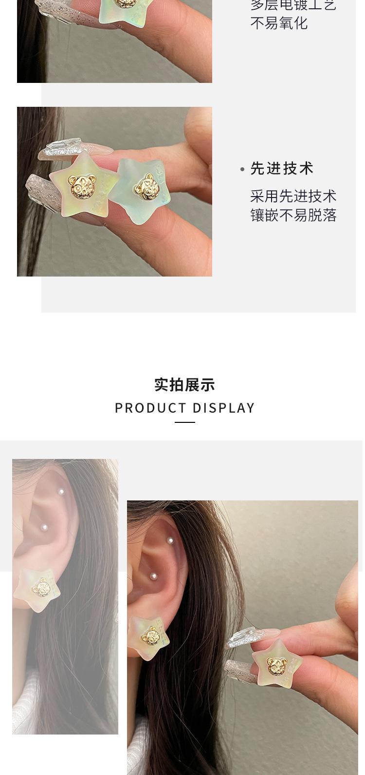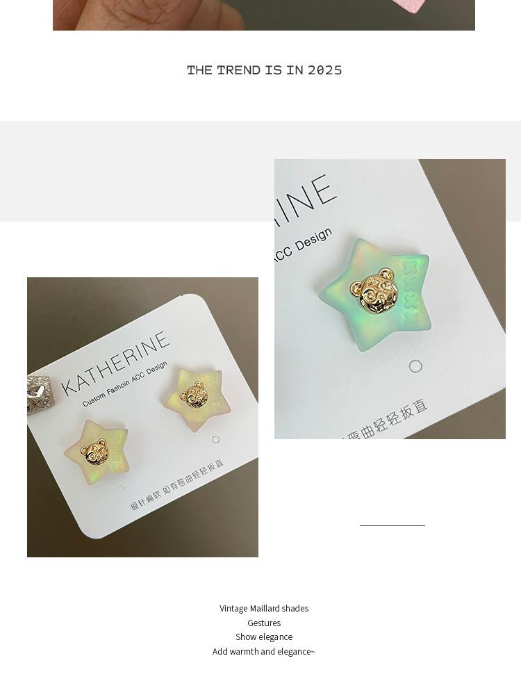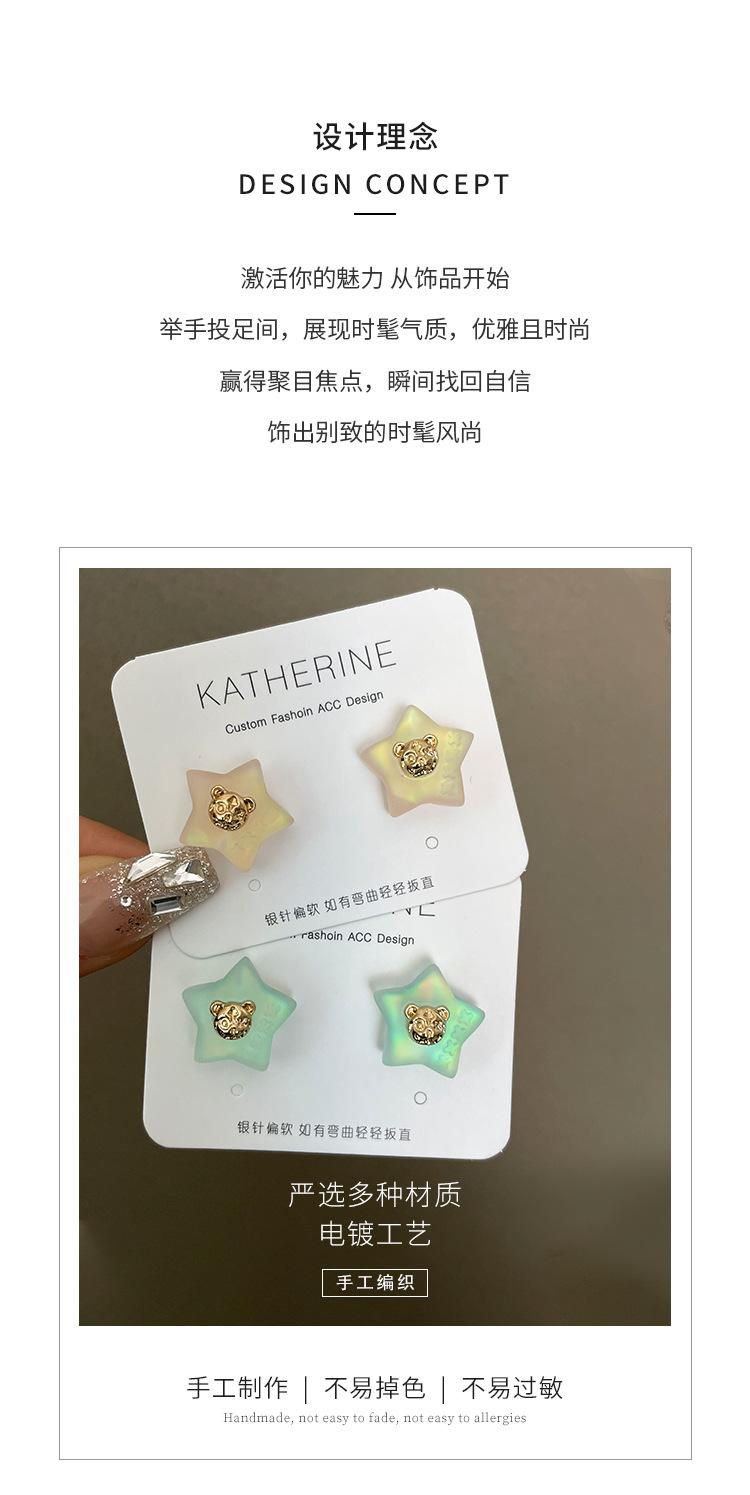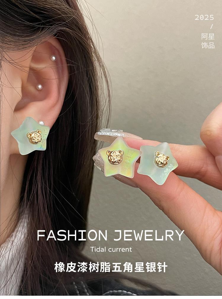 Sentido de Diseño de Lujo Ligero Pintura de Goma Resina Estrella de Cinco Puntas Aguja de Plata Nueva Moda Pendientes Dulces Exquisitos Pendientes Simples para Mujer
