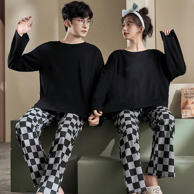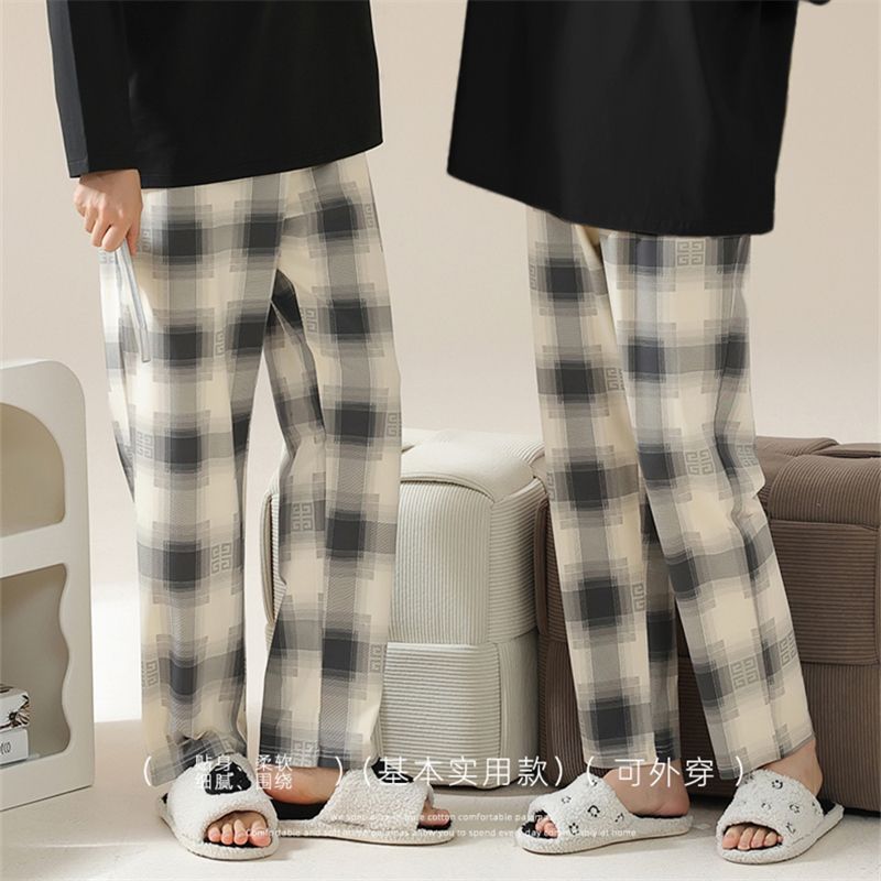 Pijamas para Pareja, Pantalones para Caminar, Pijama de Algodón Imitación a Cuadros para Hombre y Mujer, Estilo Unisex, Simple, Casual, Pantalones para Casa de Alta Gama