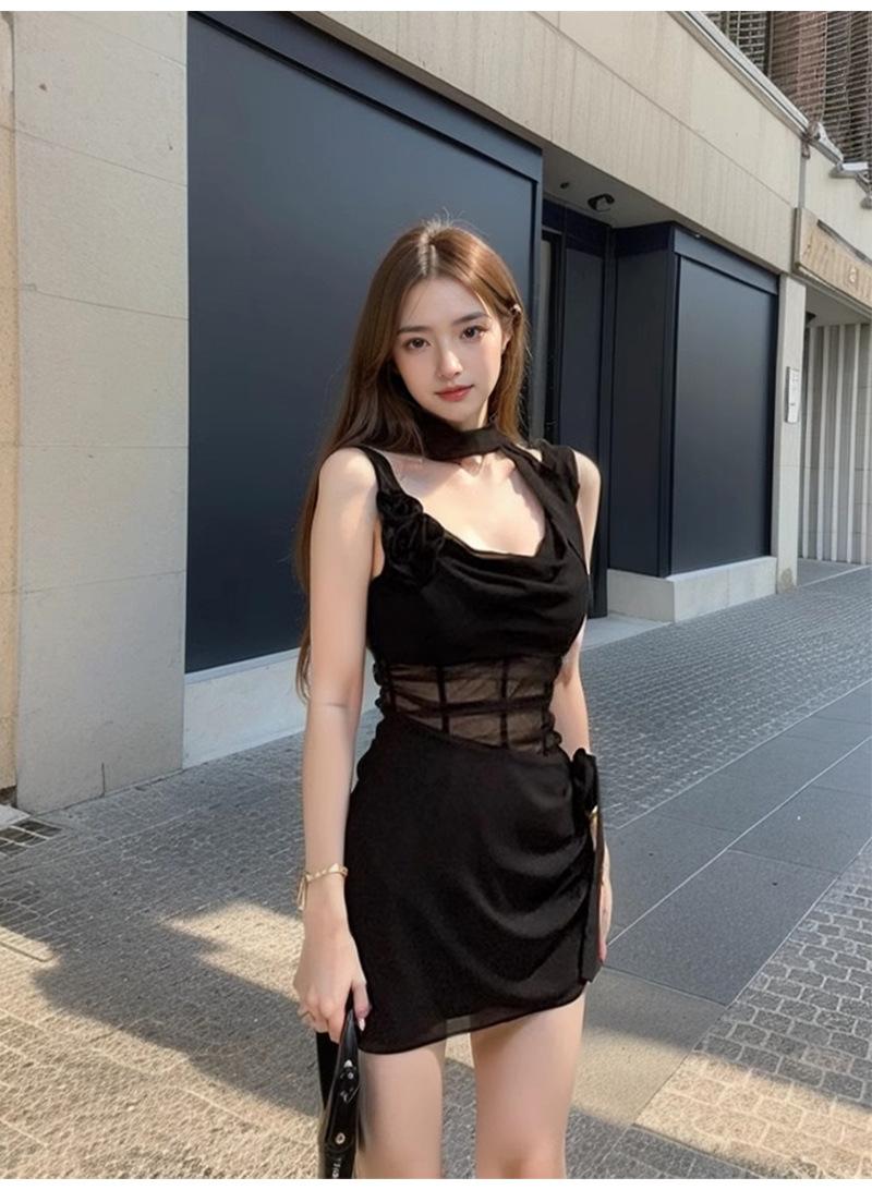 Vestido de gasa de cintura alta ajustado de color sólido para mujer, ropa de verano 2025, estilo europeo y americano