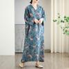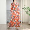 Foto real del nuevo estilo de principios de primavera de 2025, estilo festivo, viaje, cuello en V, retro, falda larga que cubre la carne, vestido de algodón y lino para mujer