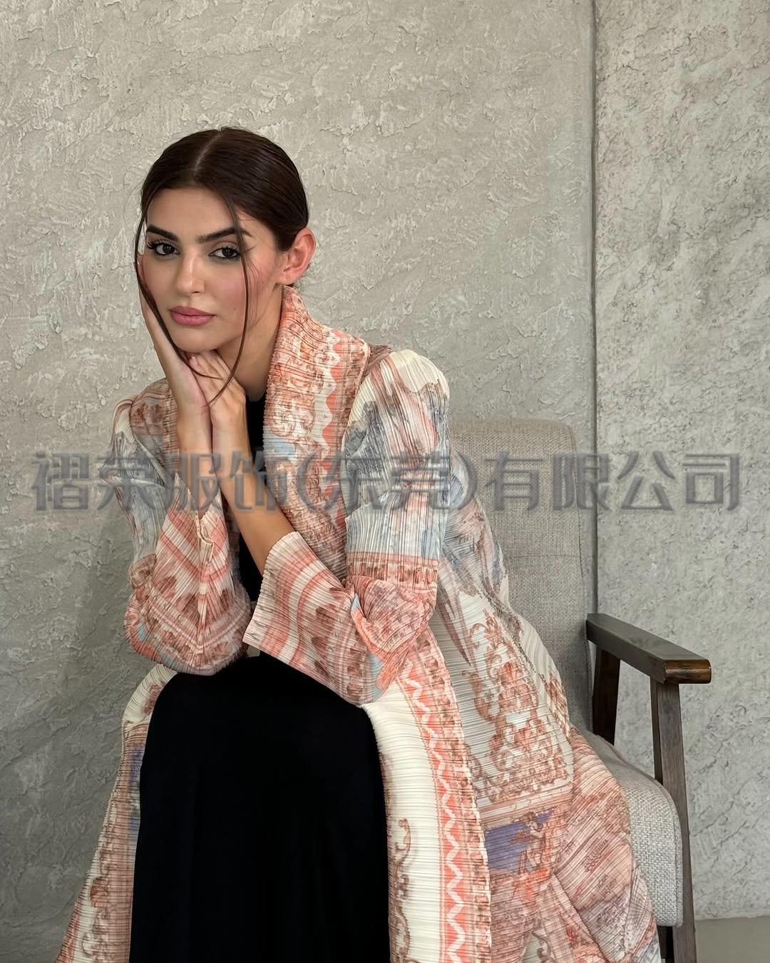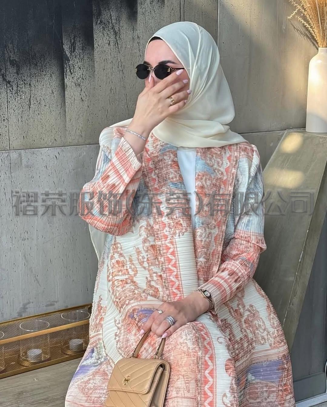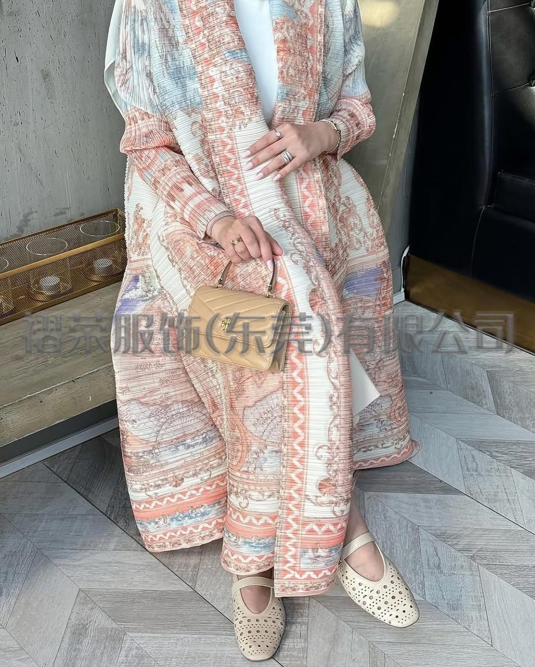 Bata de Oriente Medio para Mujer Cárdigan Estampado Plisado Miyake Abrigo Largo Bata Árabe talla grande Abaya