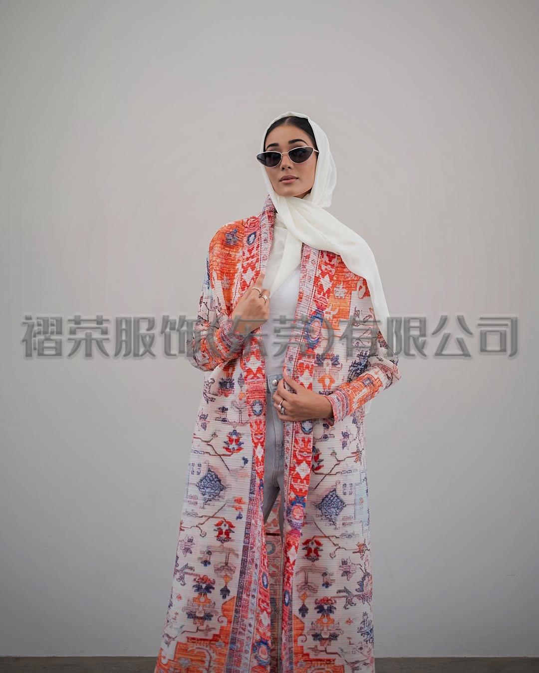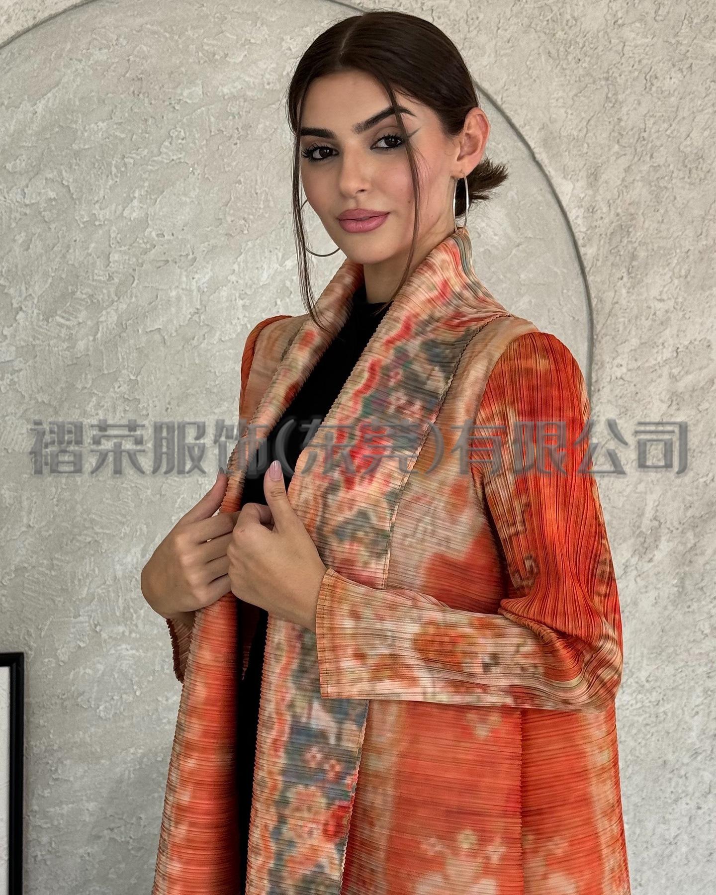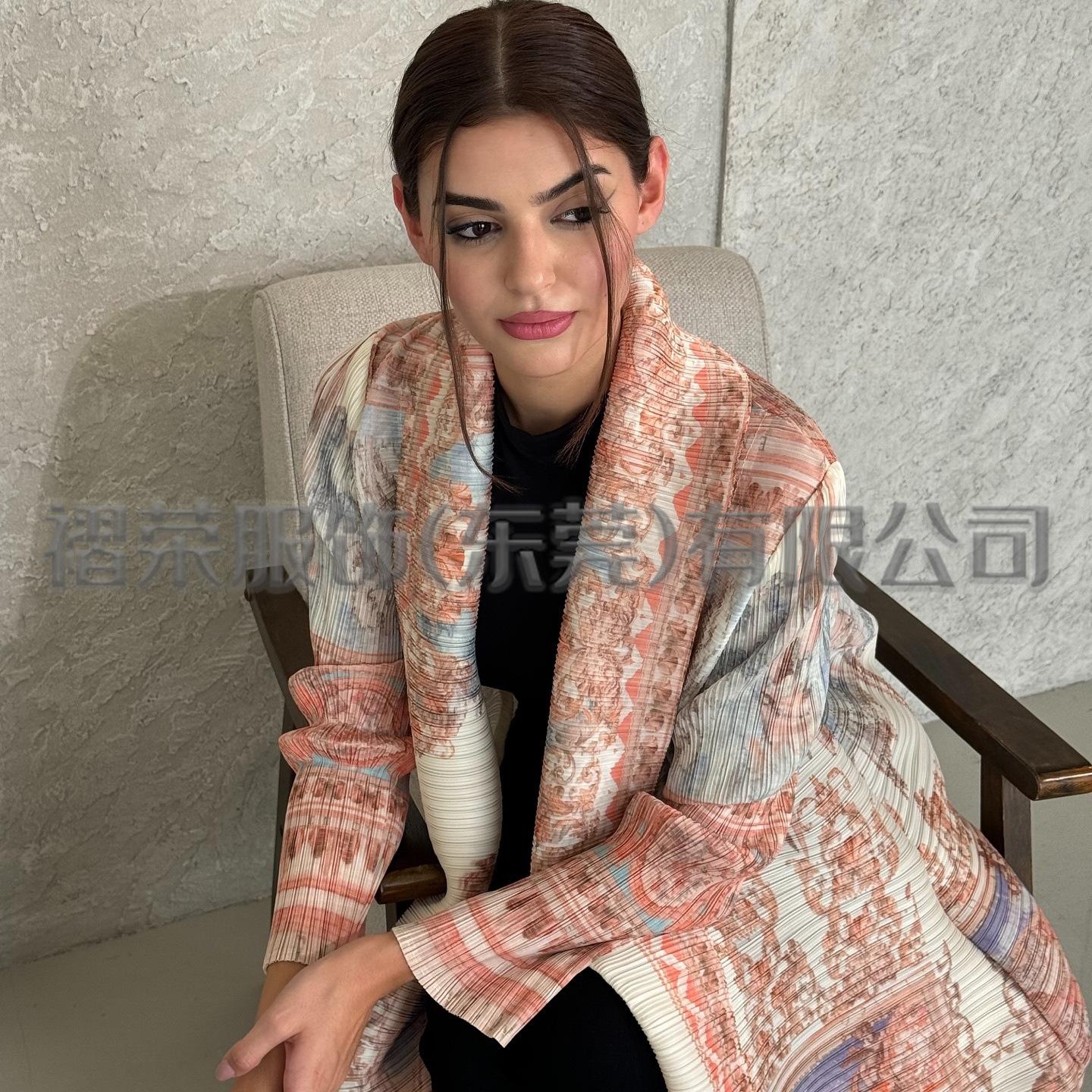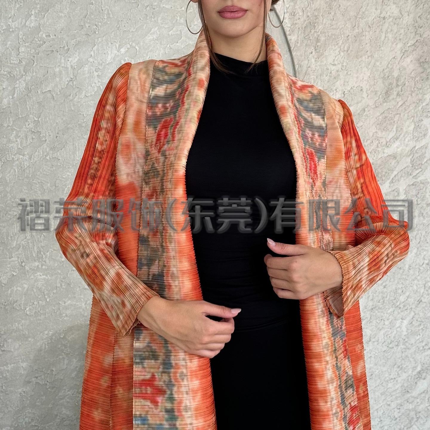 Bata de Oriente Medio para Mujer Cárdigan Estampado Plisado Miyake Abrigo Largo Bata Árabe talla grande Abaya