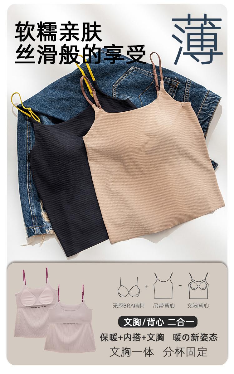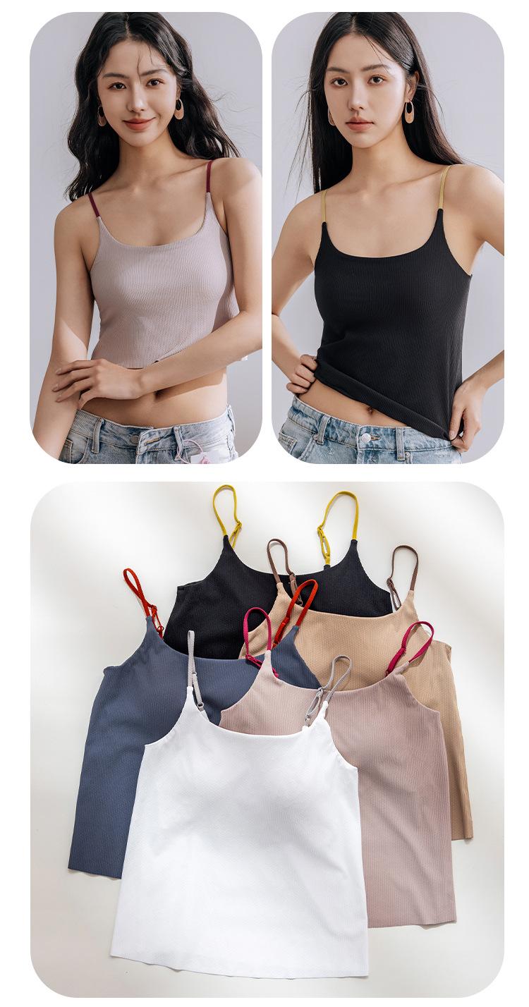 Camisola de primavera y verano con tirantes en contraste, moderna y combinable, para mujer, ajustada, adelgazante, cómoda, sin marcas, con tirantes en la espalda.