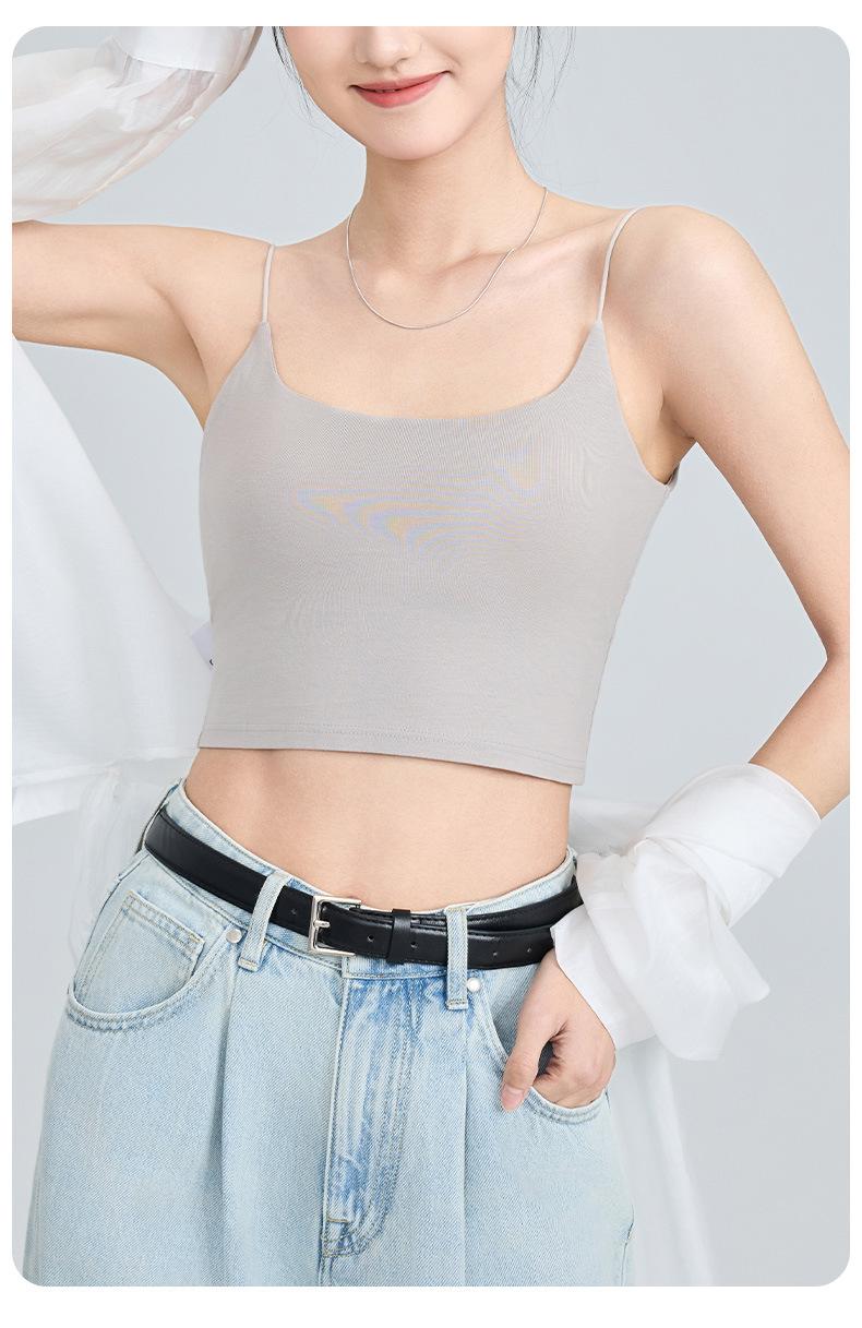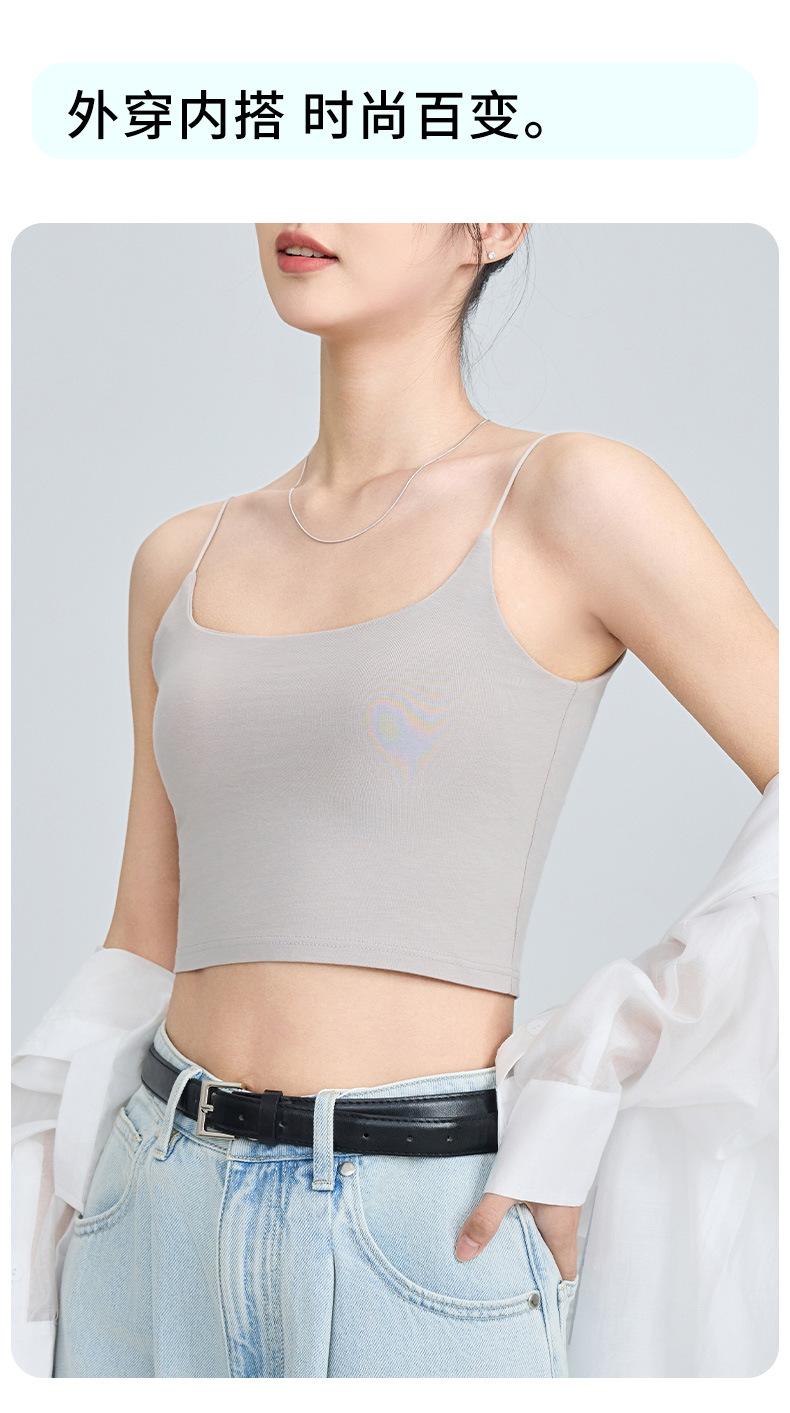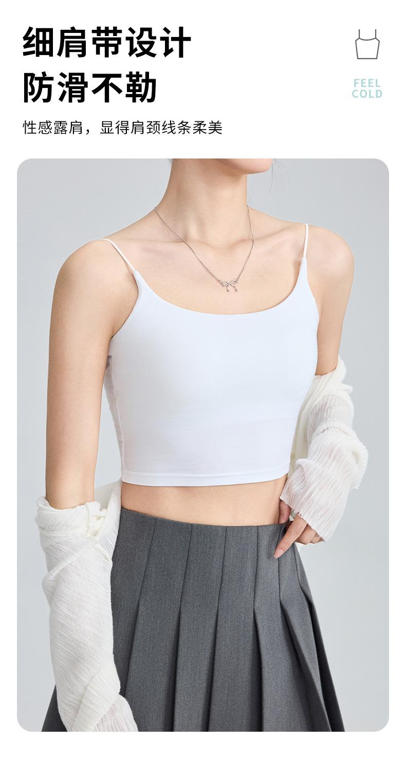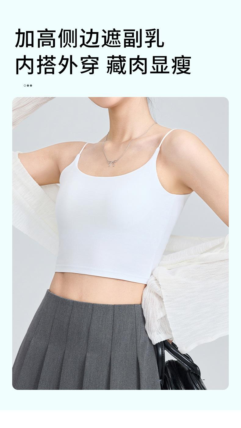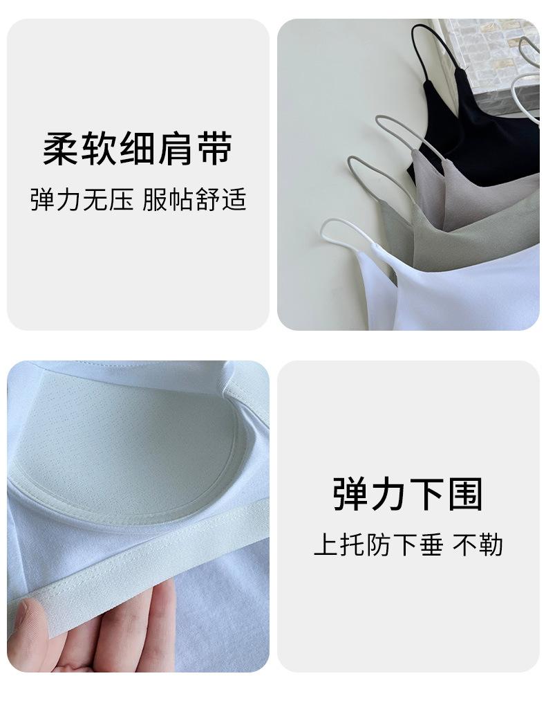Viene con Camisola con Almohadilla en el Pecho para Mujer 2025 Nuevo Verano Ropa Exterior Antideslizante Tirante Fino Pecho Lateral Top Sin Costuras