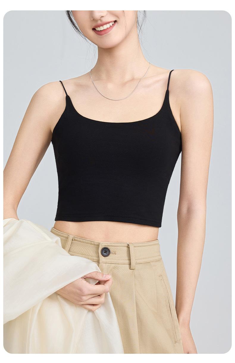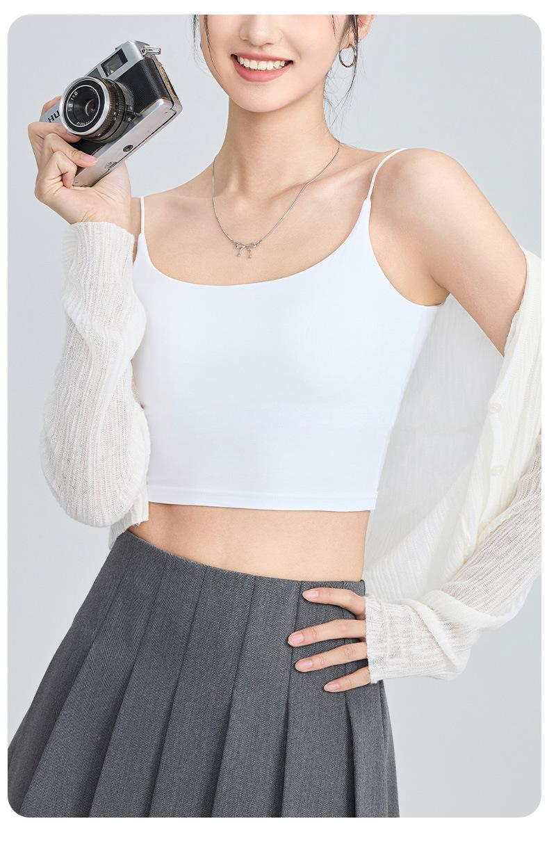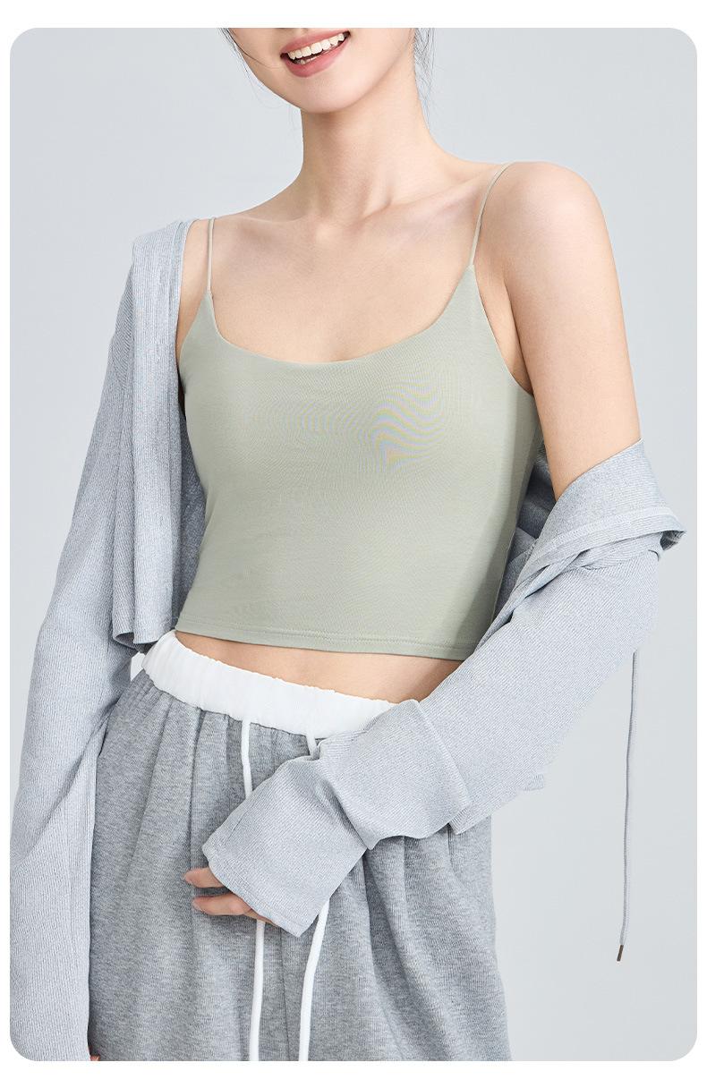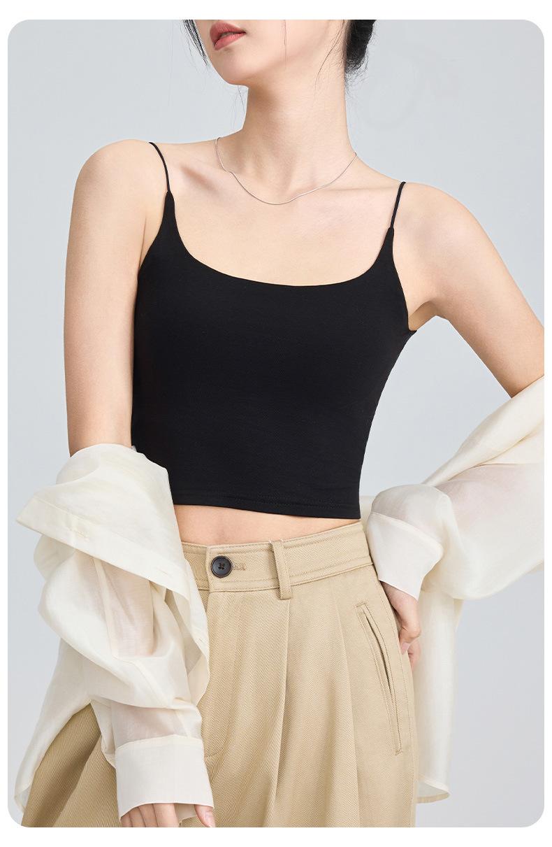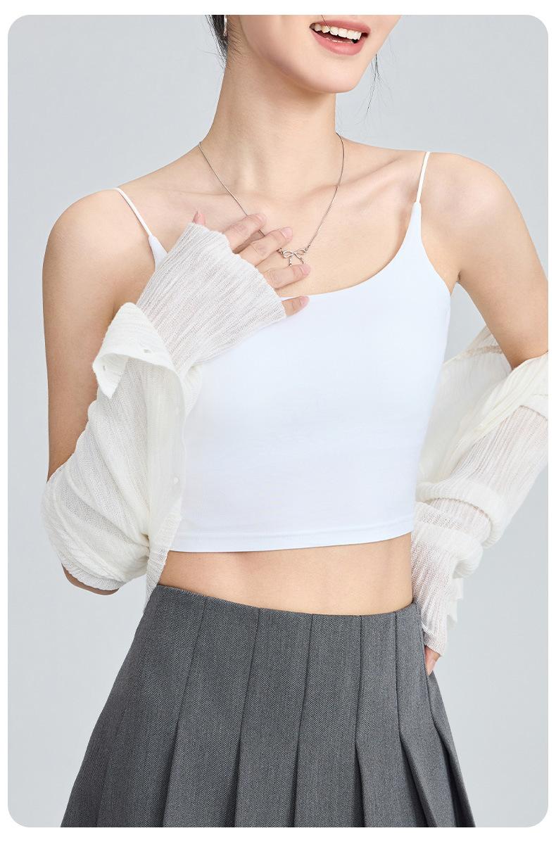 Viene con Camisola con Almohadilla en el Pecho para Mujer 2025 Nuevo Verano Ropa Exterior Antideslizante Tirante Fino Pecho Lateral Top Sin Costuras