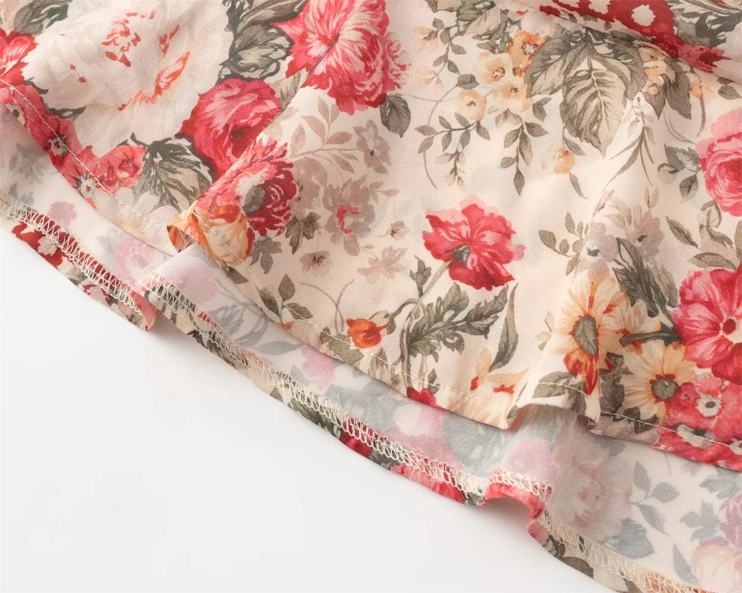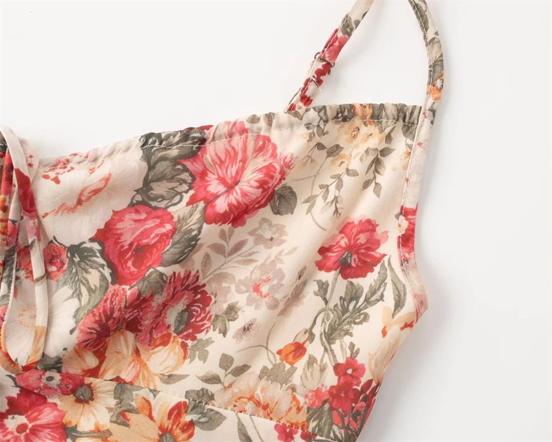 Vestido de verano para niñas con cuello en V, elegante y ajustado, con tirantes y estampado francés de vacaciones junto al mar