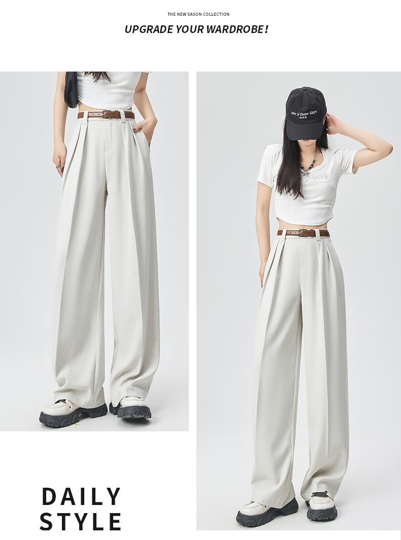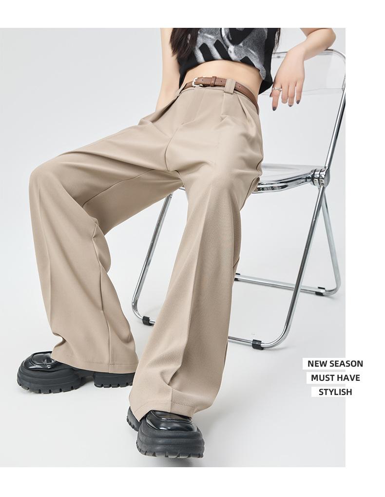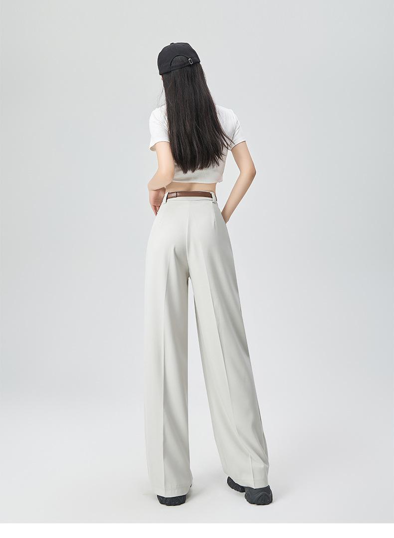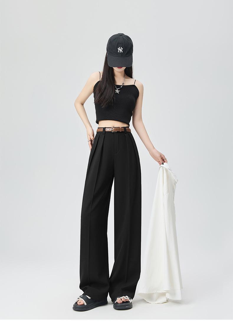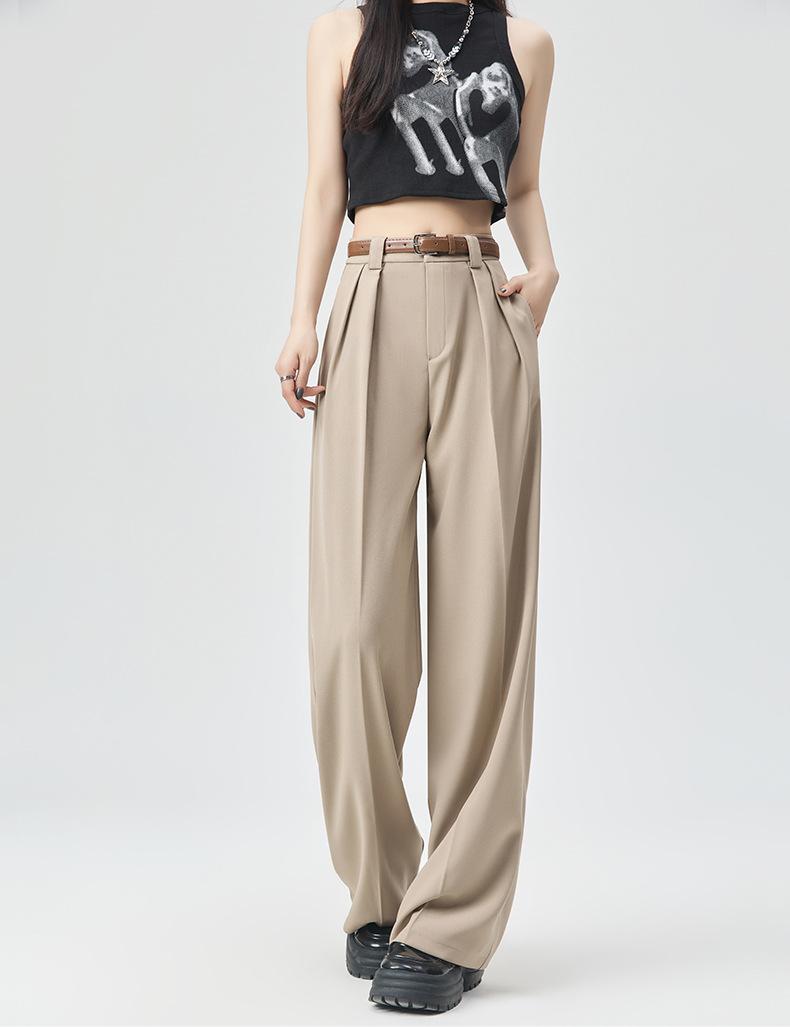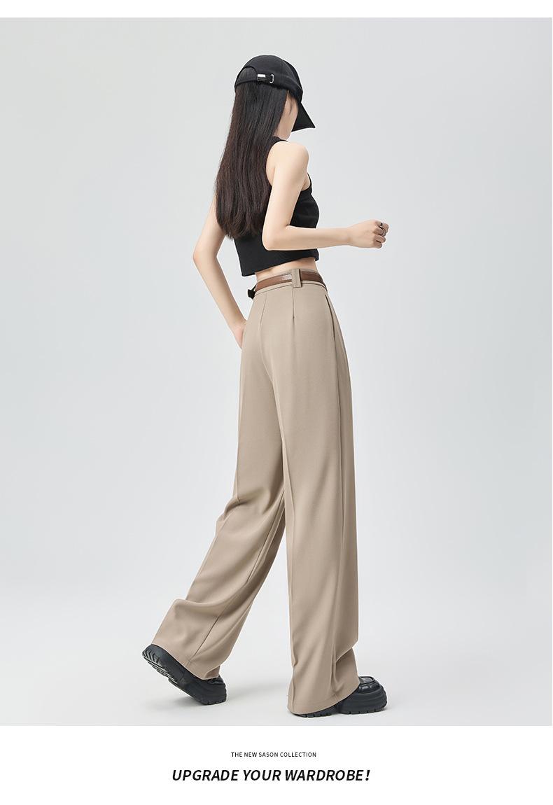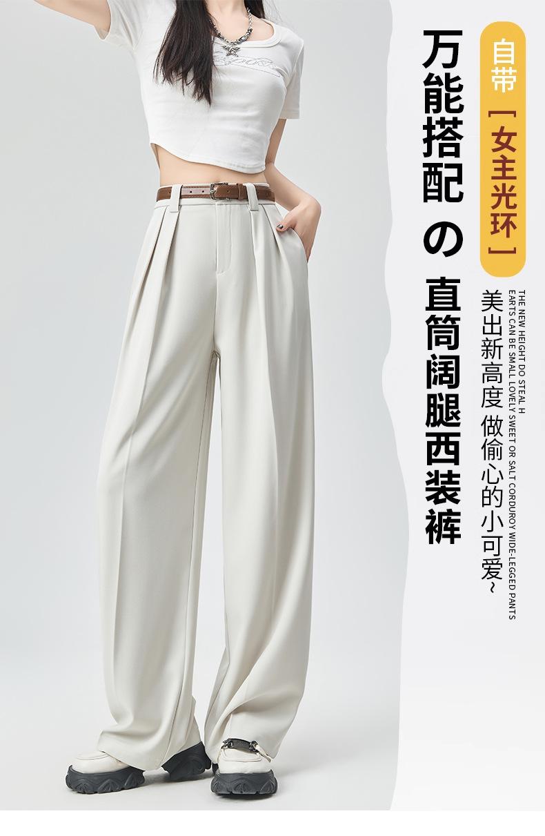 Pantalones de Pierna Ancha de Cintura Alta para Mujer, Primavera y Verano Drapeado Recto Casual Ajustado Largo hasta el Piso Elegante Sencillo Pantalones de Traje