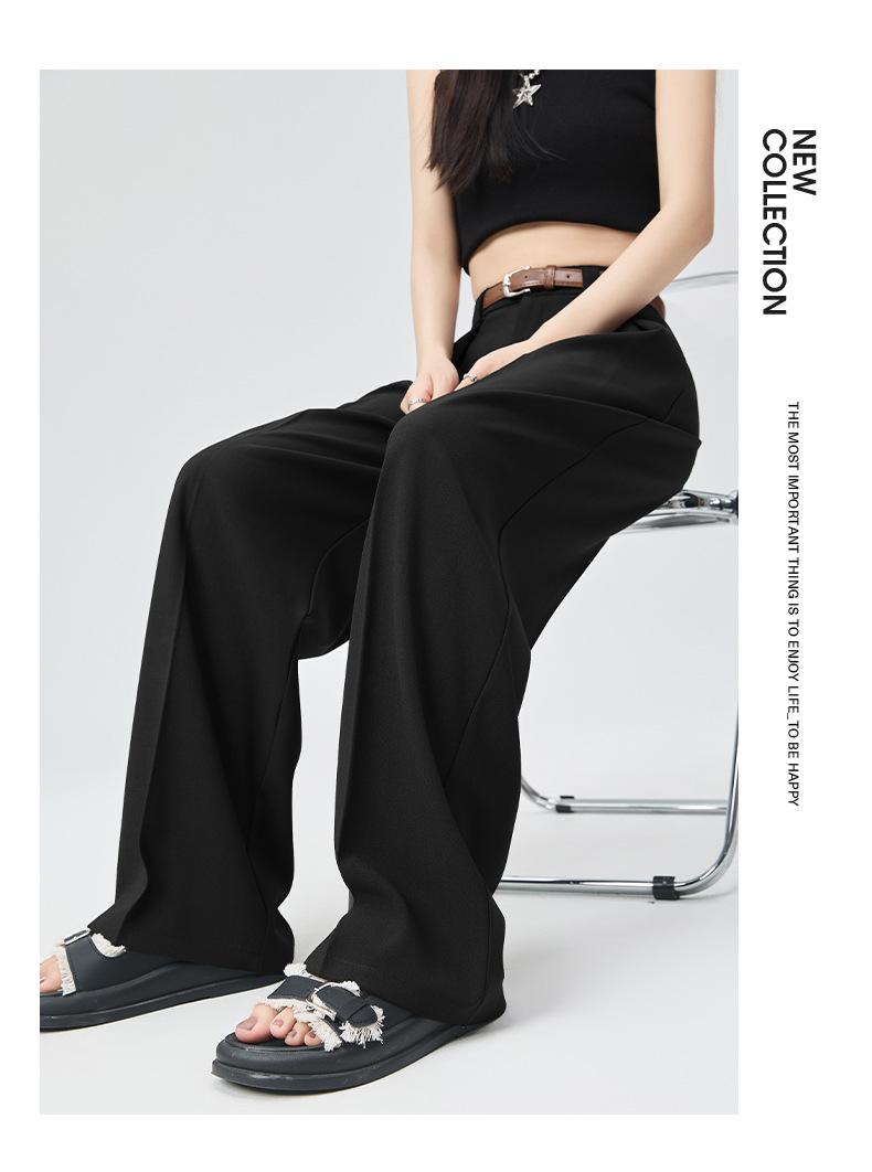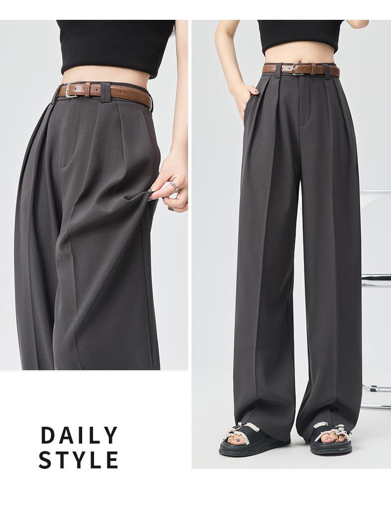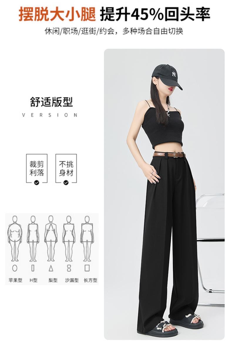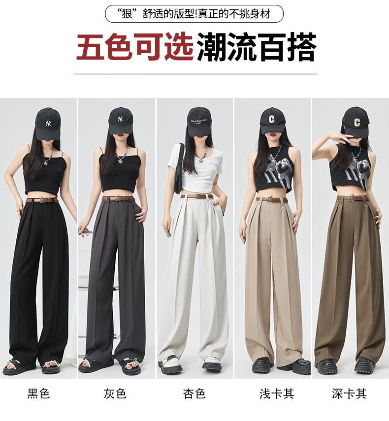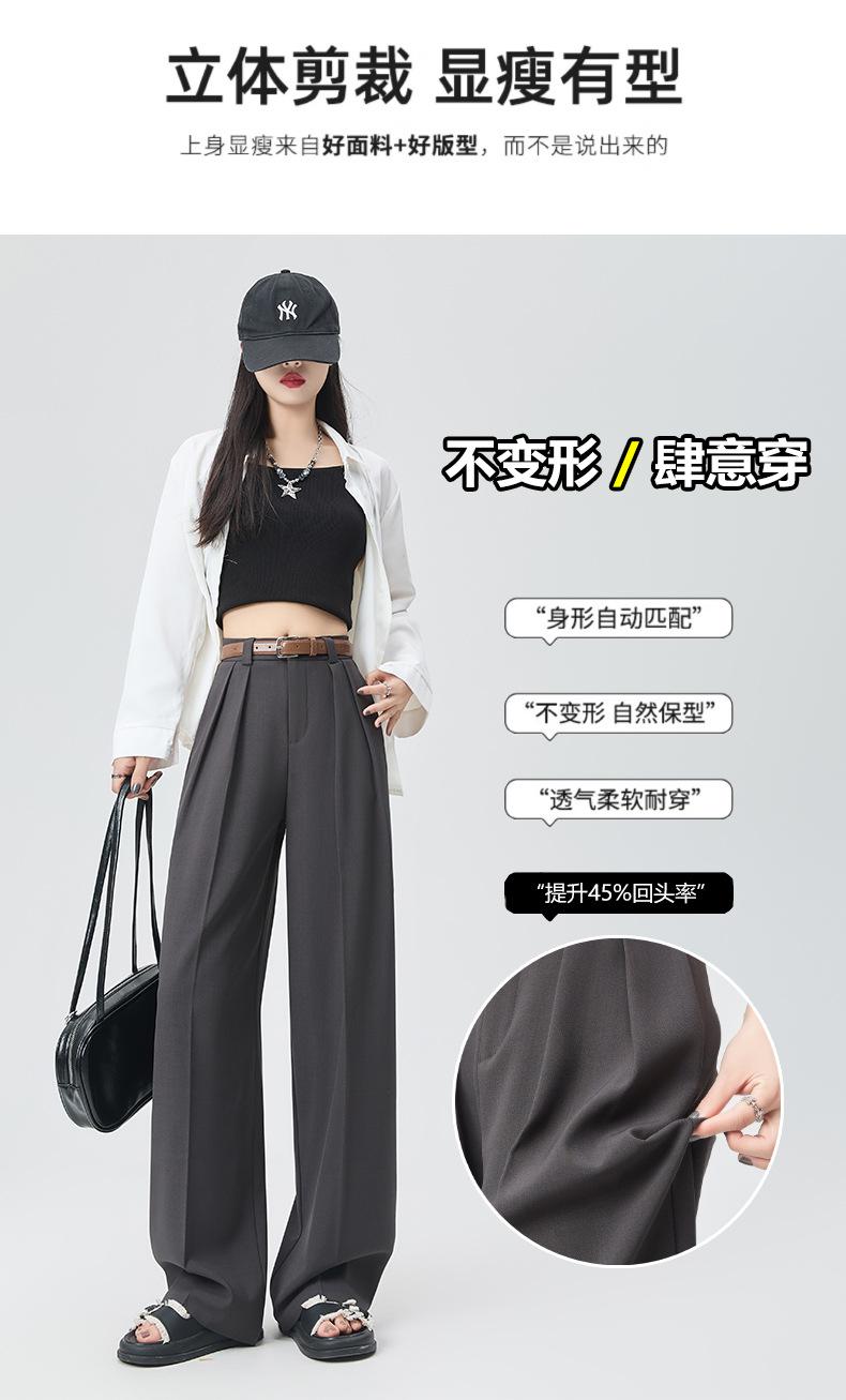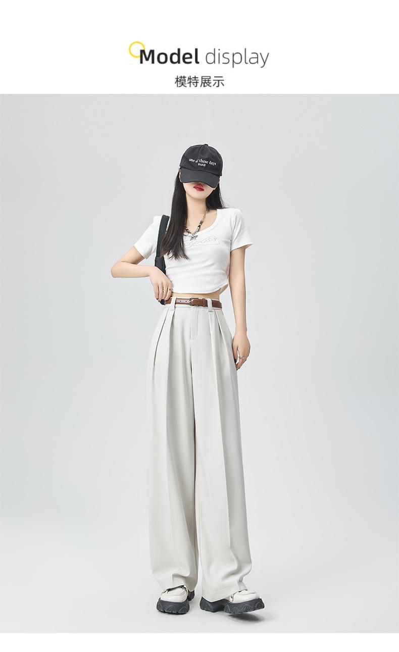 Pantalones de Pierna Ancha de Cintura Alta para Mujer, Primavera y Verano Drapeado Recto Casual Ajustado Largo hasta el Piso Elegante Sencillo Pantalones de Traje